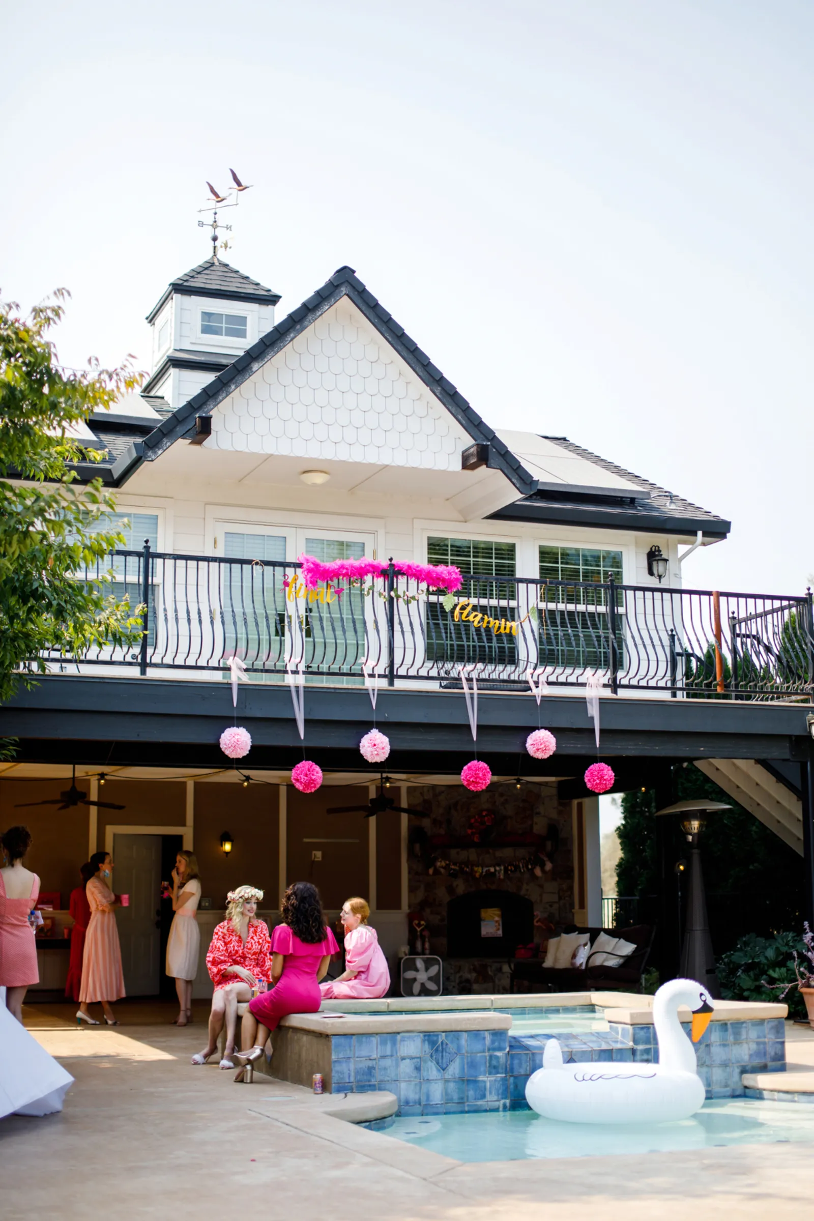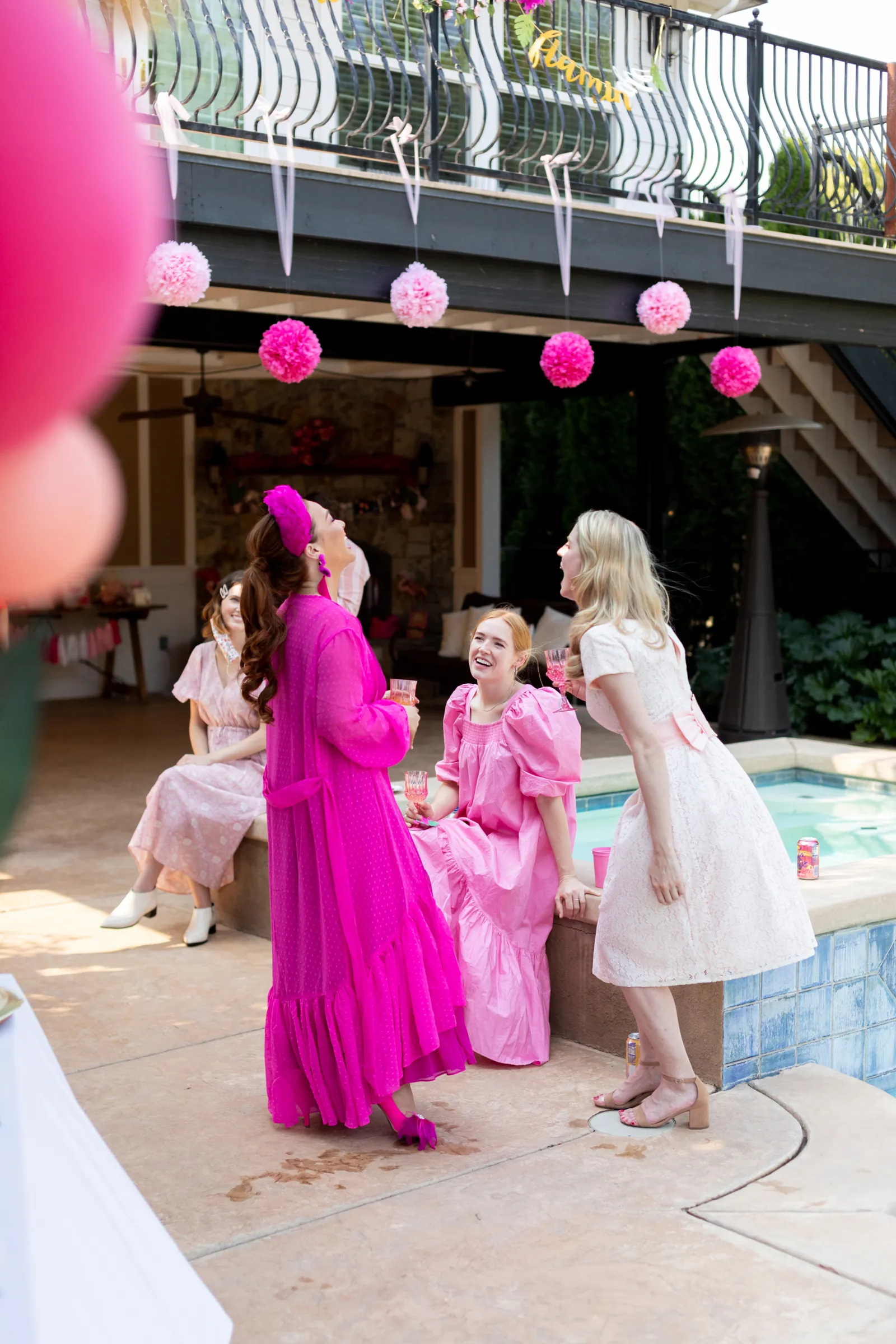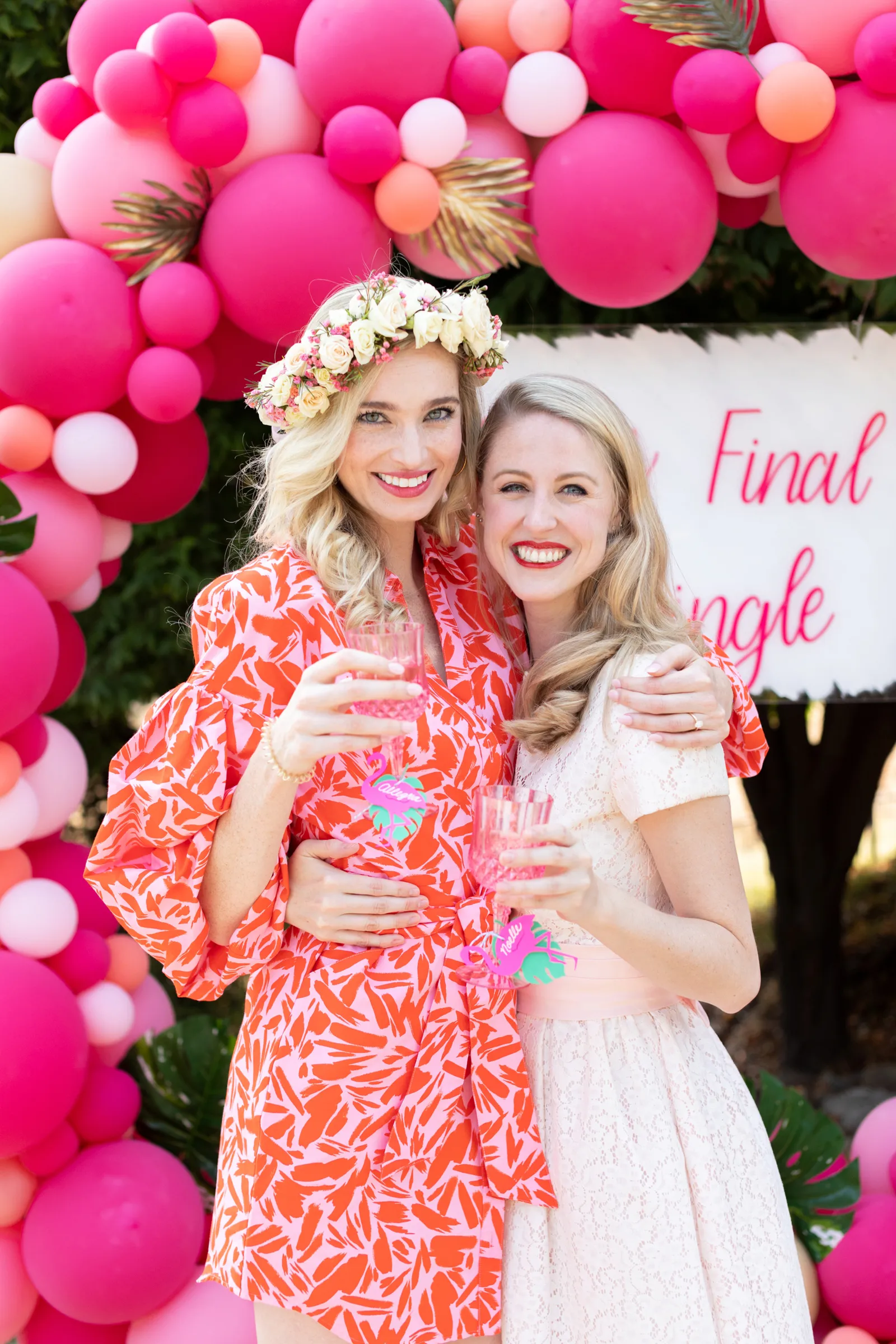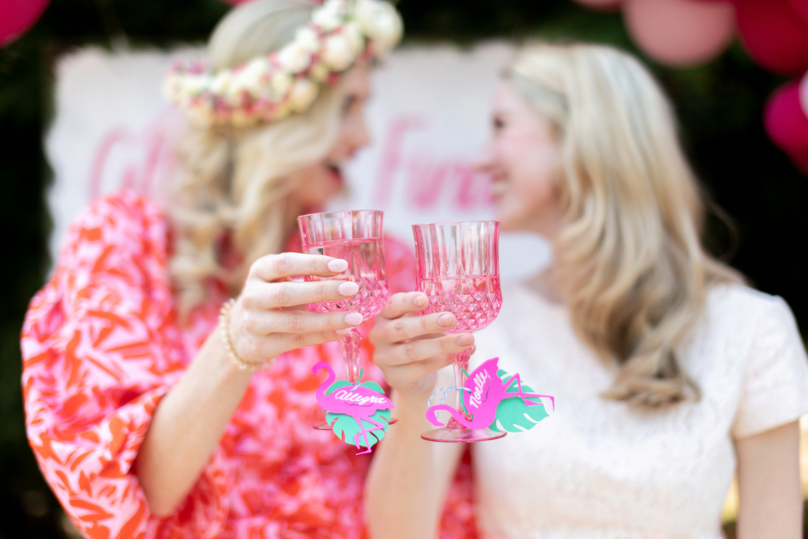 “Balloons, bubbly, poolside burlesque classes and so much pink! That was the inspiration behind this Final Flamingle Bachelorette shoot. I wanted to completely embrace the playfulness before the wedding romance. When I style any event I want to feel seen and feel present. I am certain we achieved that here.” -Christyl, Christyl Clear Events
