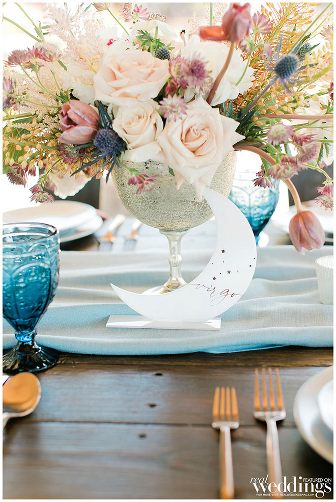 This shoot had a few levels of inspiration for me. My company, Epic Thyme Events & Design, specializes in boho chic weddings and it is not often that I work with colors like soft pinks and baby blues. I mostly work with earthy tones such as dark burgundy, deep greens and browns. Therefore I wanted to show myself that this adventurer style can also work in a spring color palette. During this time, I started to notice that I was living this boho style not only in my company but in my life. My posts started talking about astrological aspects and aligning with our horoscopes. So one night while I was drifting to sleep I thought, I want to create a wedding theme that aligns with astrology! The table numbers will be the zodiac signs, the save-the-dates will be star-finders, the desserts will show the phases of the moon and the bride will have vibes of a powerful angel! I wanted to make sure I used colors that portrayed the feeling of light and airy and would also take me outside my comfort zone. All this inspiration led me to design this shoot and I hope you enjoy it!