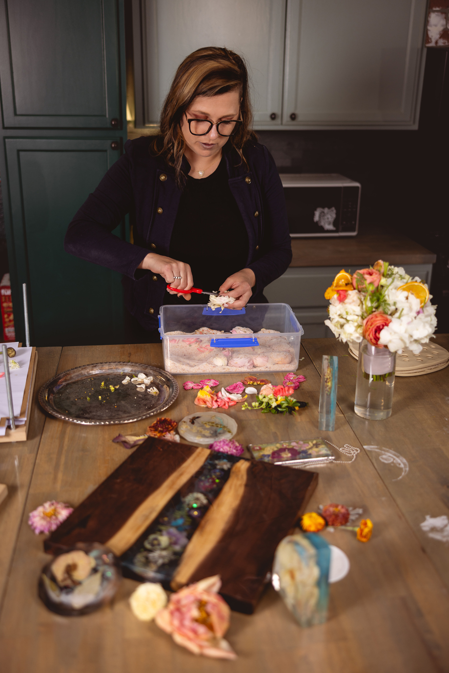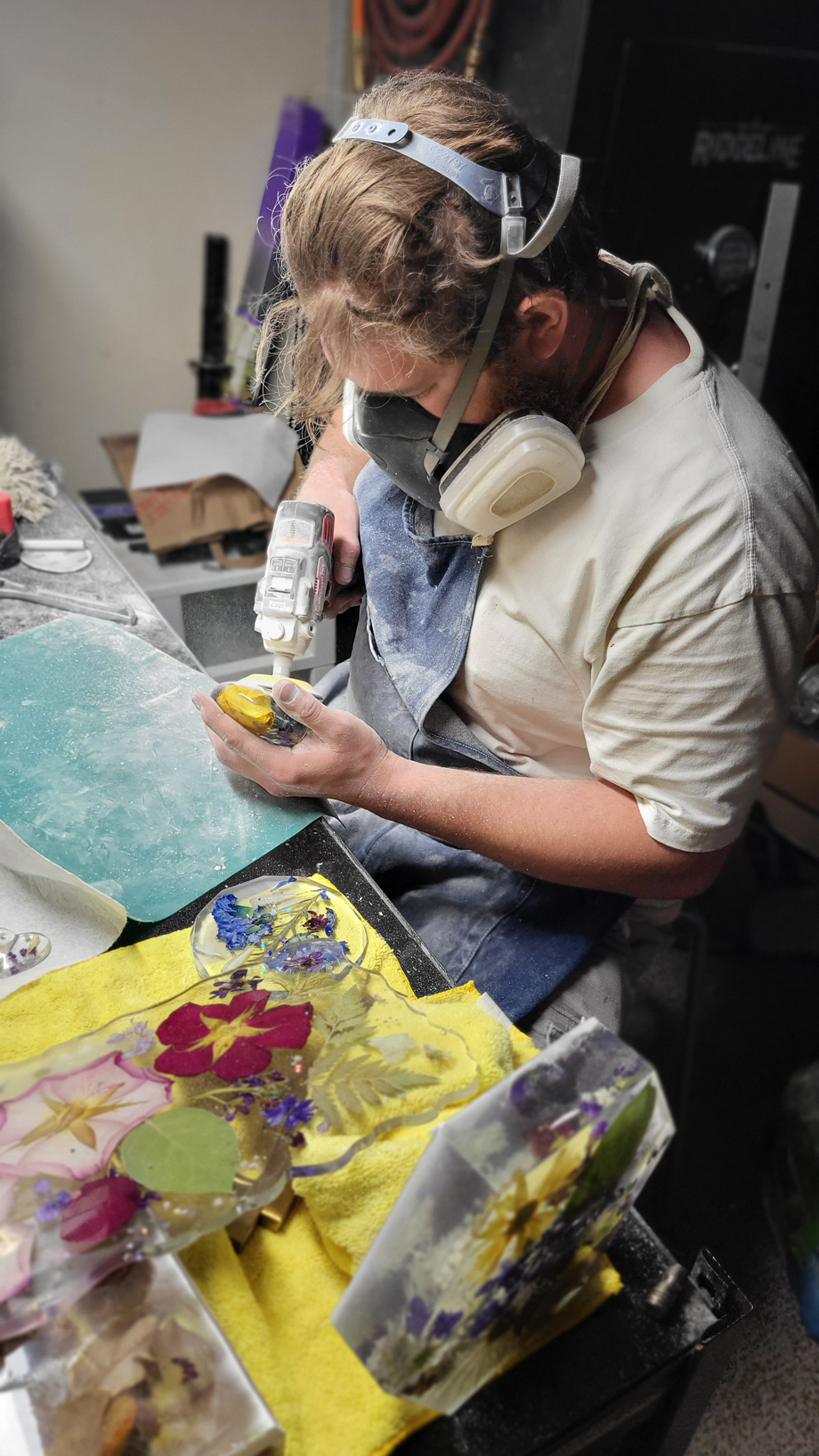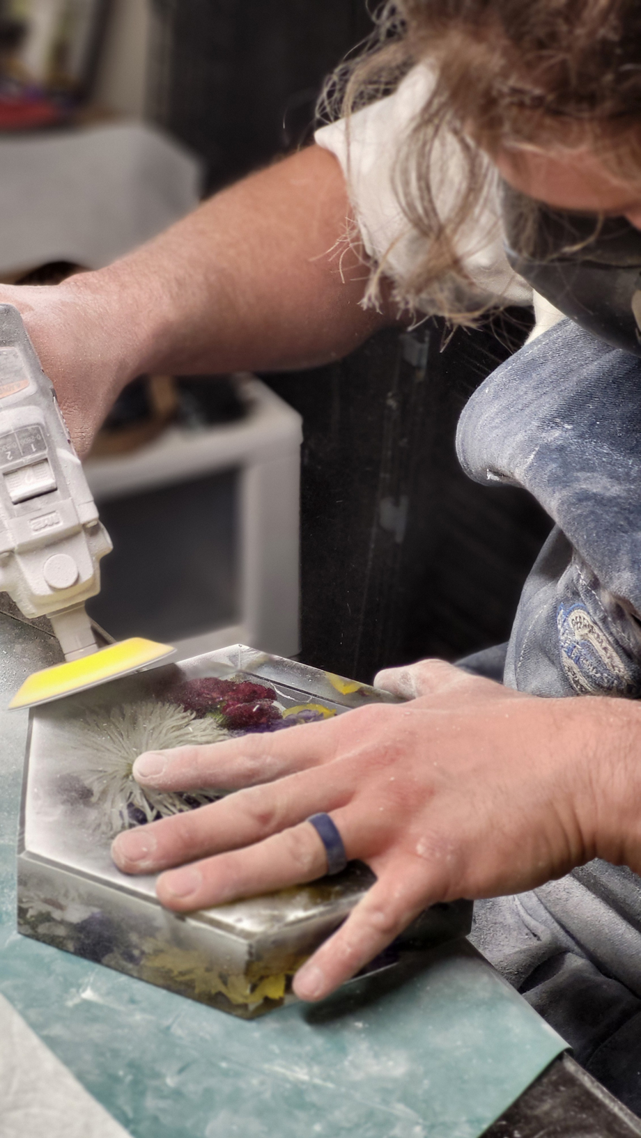 After the final pour, the resin piece is left to harden. After sitting a week in the mold I am able to take the resin piece out revealing any spots that might need more attention. I pass the items off to my husband, Phil, who does all of the final touches and polishing in our shop.