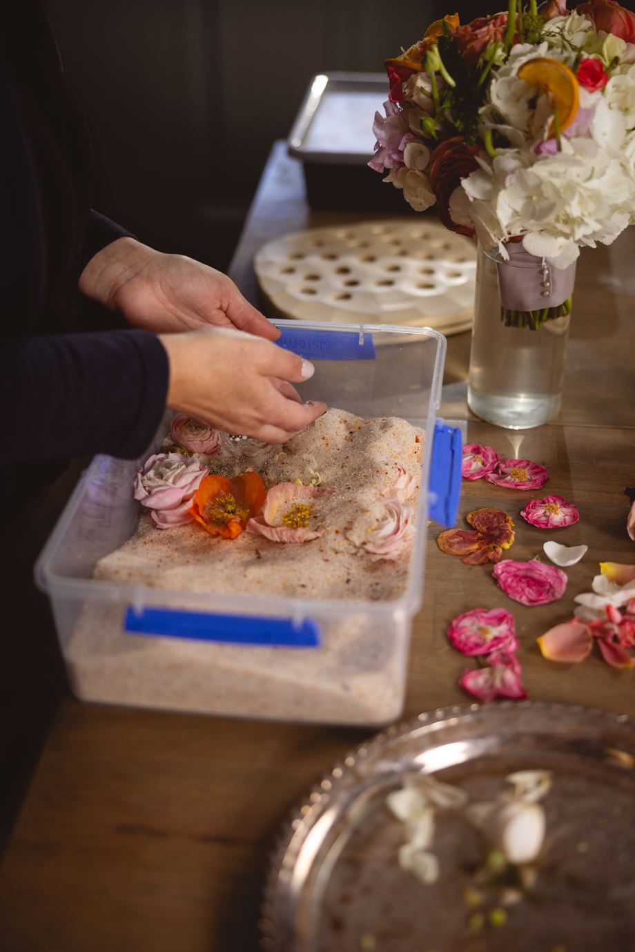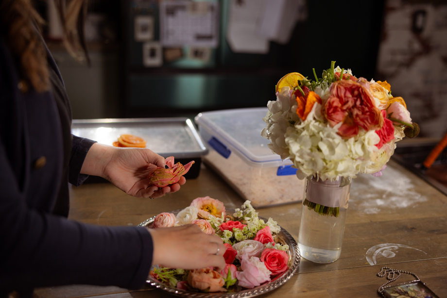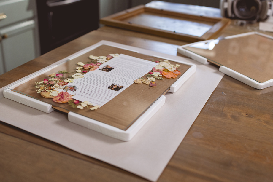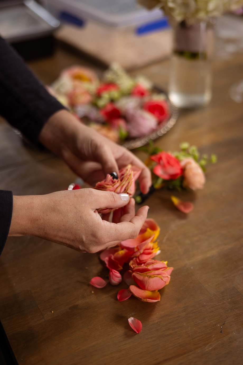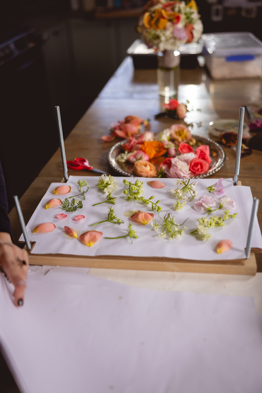 When I first started created designs from the “Let’s Do Brunch” styled shoot, it was at first to show the process in real time, but then I leaned into it a little more. It became a challenge of how many things could I make from one singular bouquet and boutonniere? From the rose petals that had fallen off to the larger full blossoms I was able to create 10 beautiful and meaningful keepsakes.