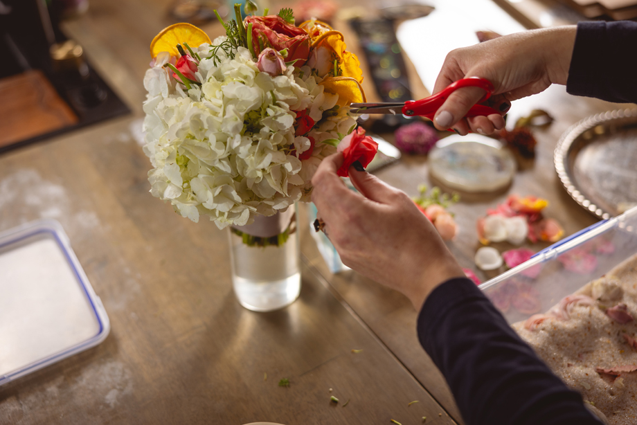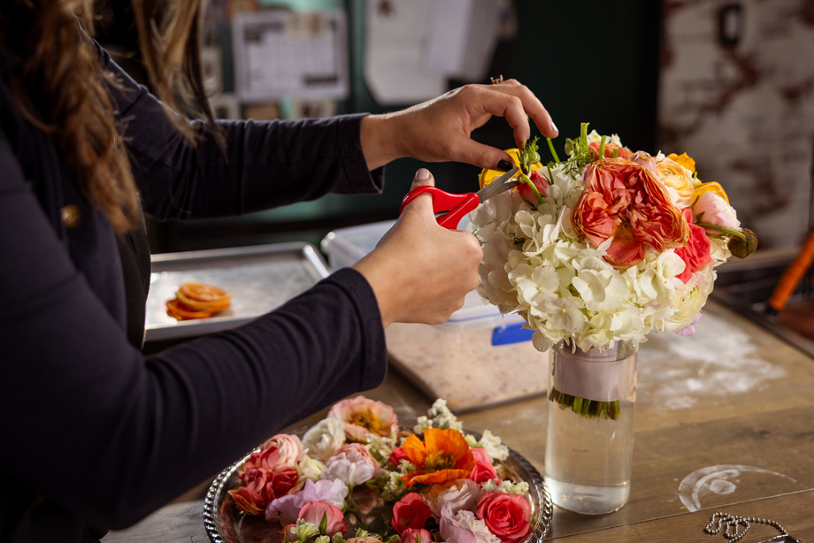 Once a bouquet is received, if it is not already in water, I will cut the stems and place it in water. This rehydrates everything and gets the blossoms the happiest they could be.