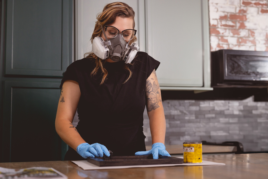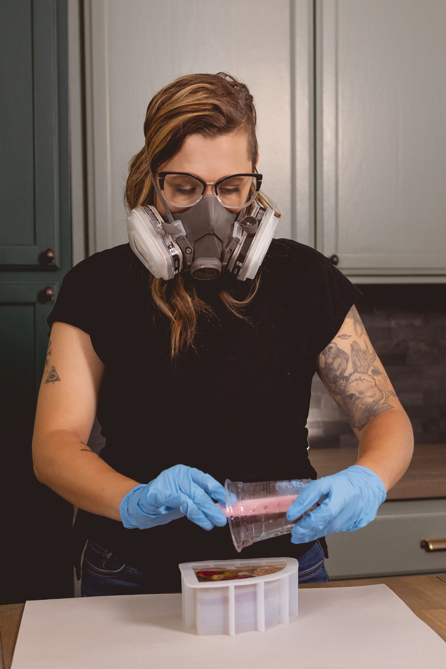 After sanding I clean the top with a baby wipe to get off resin dust.