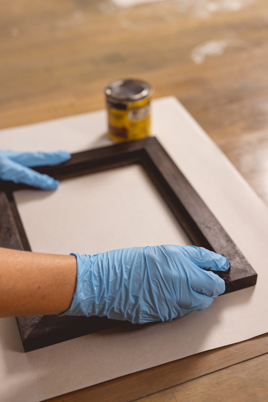 After the frames are complete in the wood shop I stain them to match the client’s offer. Right now we offer three finishes: Black, Espresso, and Rustic.