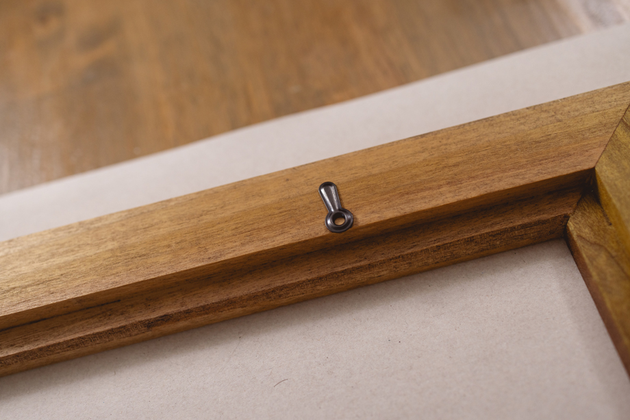 The hardware is placed and screwed in. The only thing left is to put the finished pressed design in.
