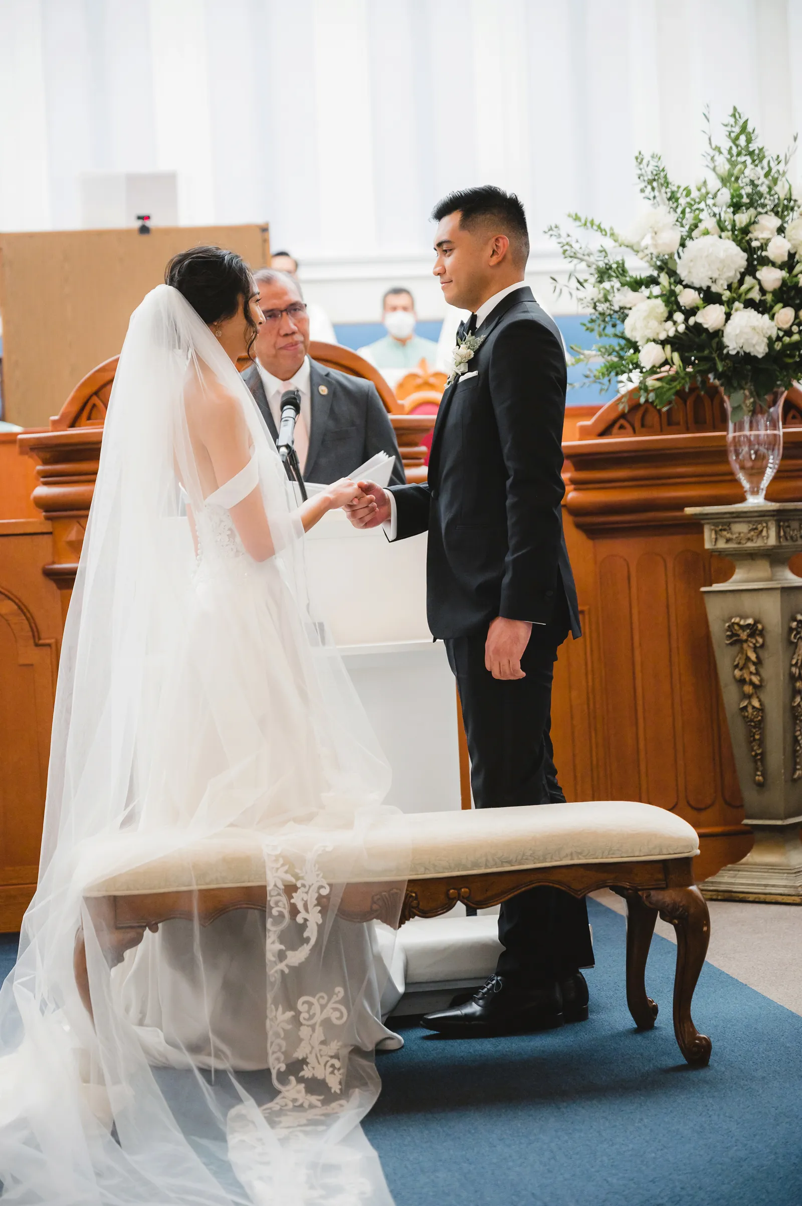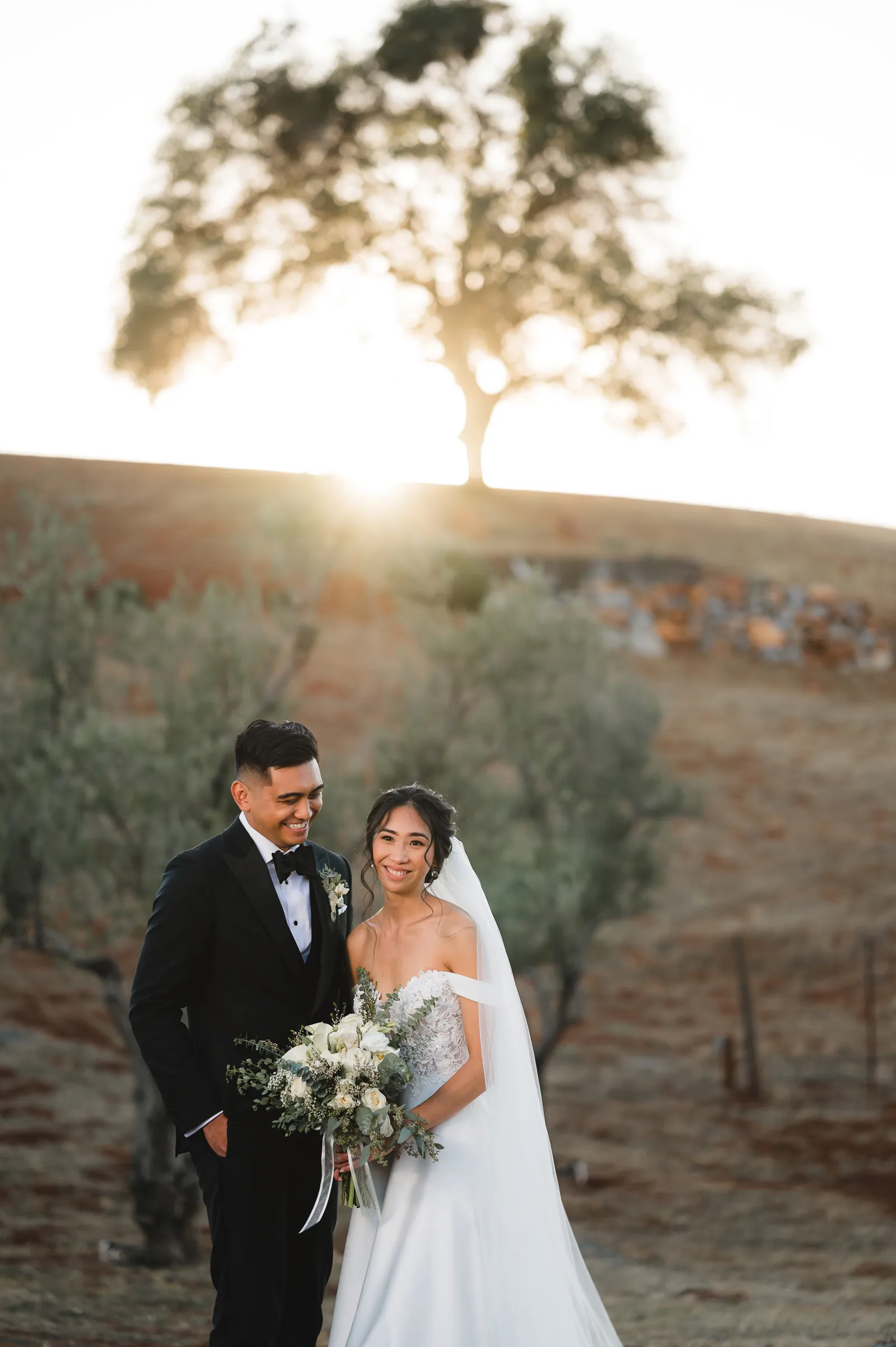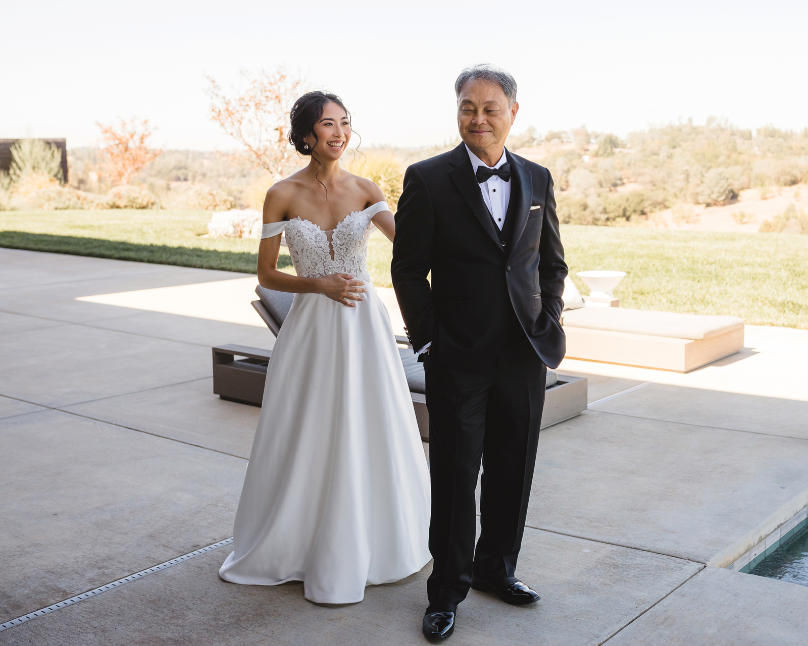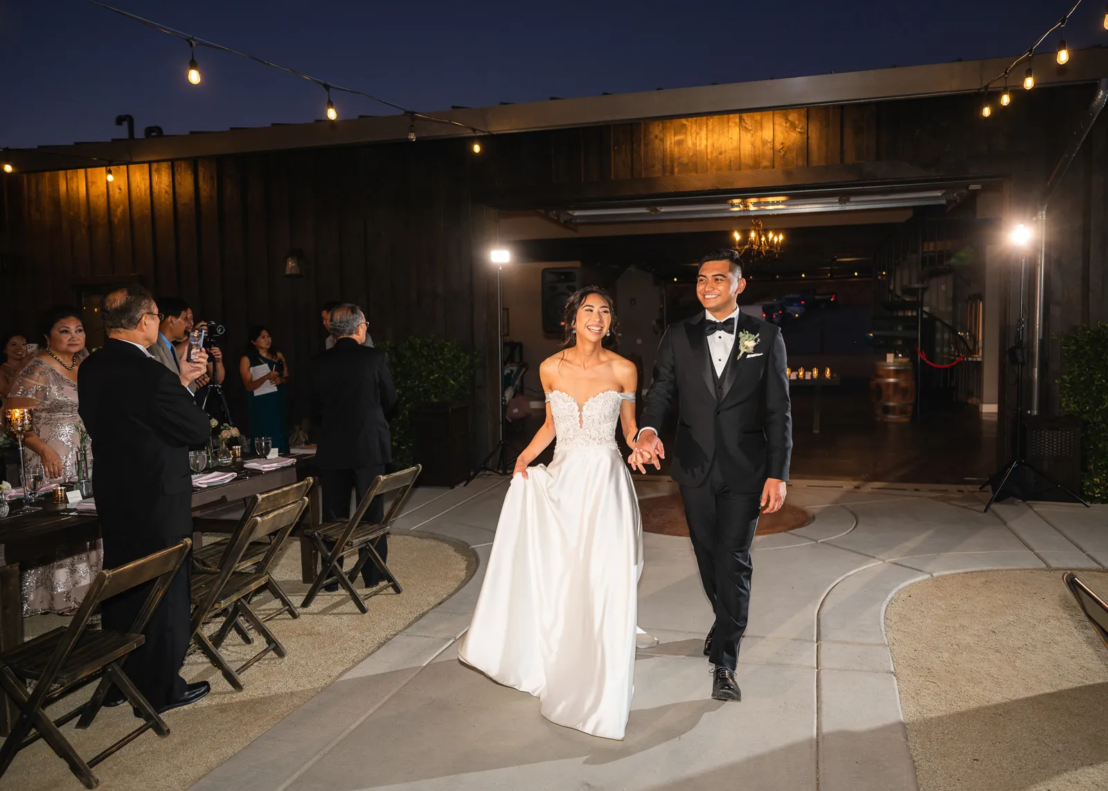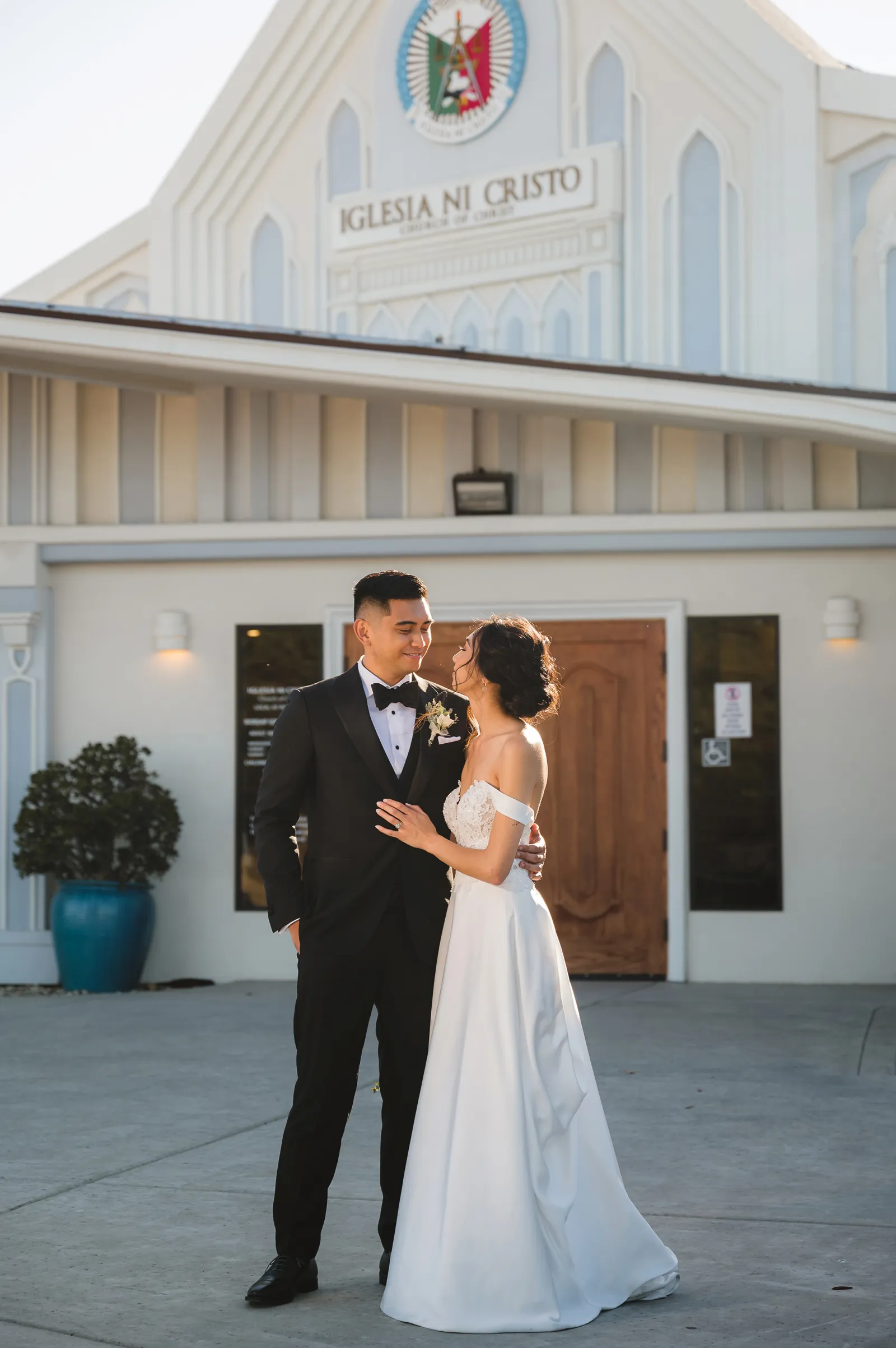 We were both at a community event, and Madeline was the stage host. She took a quick 5-minute bite for dinner. She was literally stuffing her face when a man came out from the crowd and said, “Hi” with a huge smile. She looked up, said “Hi!” and left to jump back up on stage. That stranger was Leandro. It’s not his usual character to walk up to pretty girls and say hi, but something gave him the urge to do it anyway. A month later, a mutual friend asked Madeline to reach out to “some guy” on social media so she could include him in future events. That “some guy” was Leandro. We messaged every once in a while, saw each other here and there, and a few months later hung out at get-togethers with mutual friends. We ended up bonding over hikes, star gazing, painting, and dock crabbing. Next thing we knew, we “fell in friends”. Just seven days before Madeline was moving to another state, we ended up having a talk and realized we’ve developed feelings for each other. But we both decided to give each other time to figure out what we wanted to do, and we can talk about it at the end of the week. Leandro had a rule to not do long distance relationships. But he didn’t need the whole week to decide that he wanted to be involved with Madeline. The next day, he told her that he wanted to give it a try. We dated for less than a week, then Madeline moved. Even though we were in different states, we stayed exclusive, and Leandro eventually moved too – near Madeline. After a few months in the relationship, Leandro told her that he was the stranger who walked out from the crowd to say hello. She can’t believe she doesn’t remember when she first met the love of her life! [For the proposal], it was a Friday night, and Madeline’s family was getting together for a family photo shoot for her mom’s birthday. When she arrived, she started working on a project that she had to redo and submit that night. Madeline’s sister went to get her from the other room for the family photos. Madeline follow her out to a silent house (that’s because she was being led to the backyard where their dad’s hand-built gazebo was covered with curtain lights, wisteria, and flowers). It wasn’t a family photo shoot at all, but a surprise proposal. Leandro planned an amazing and beautiful proposal with the help of Madeline’s family. Her sisters came up with a cover story that it was for their mom’s birthday photos, and her brother-in-law had one camera angle while another was set up for a different angle. Her whole family was in on it. Madeline, shocked and frozen in place, saw Leandro in a suit, all handsome, and cold after secretly waiting outside on a cold November night for over an hour! But he warmed up when he saw her appear from the two French doors. Leandro’s big and happy smile made Madeline’s heart skip. He waved her over and she stepped out. She had on a black cocktail dress, undone hair (“It was supposed to be mom’s moment, not mine!”) and tan rubber flip-flops on! That’s what happens when you get surprised! [For the wedding planning], we shared ideas and really wanted to make it a day for both of us. Neither of us had specific ideas coming into our engagement, but we discussed all of the details and agreed on everything. We both stayed involved from beginning to end, and at the end of the day, we had a great time celebrating our wedding day with the closest of family and friends in our specific L&M style.