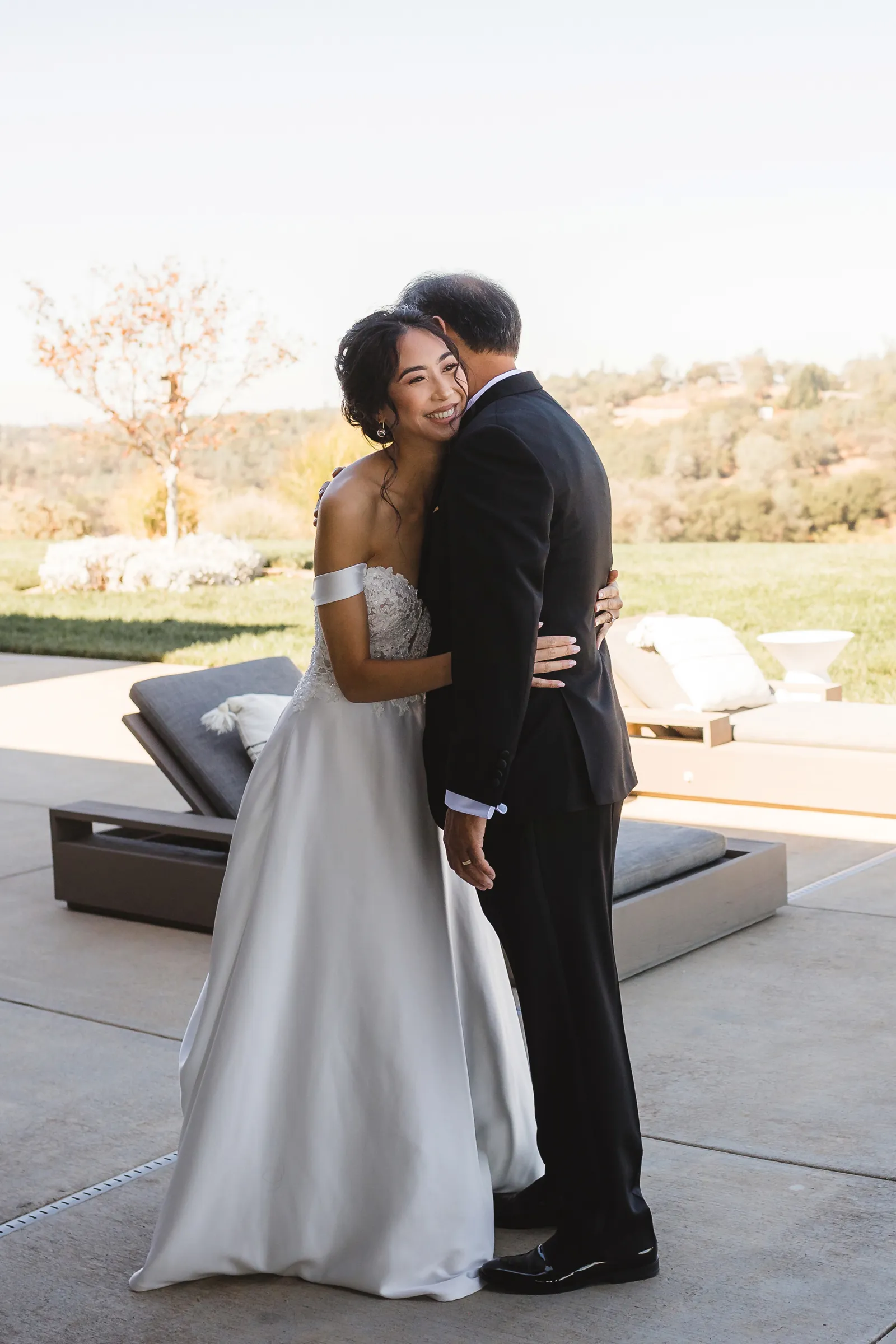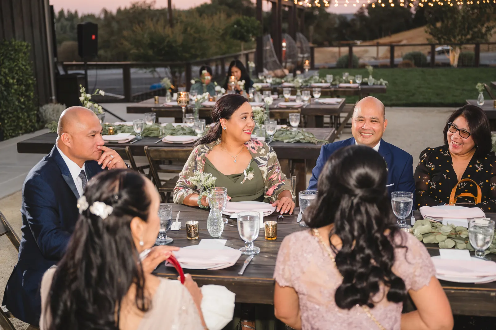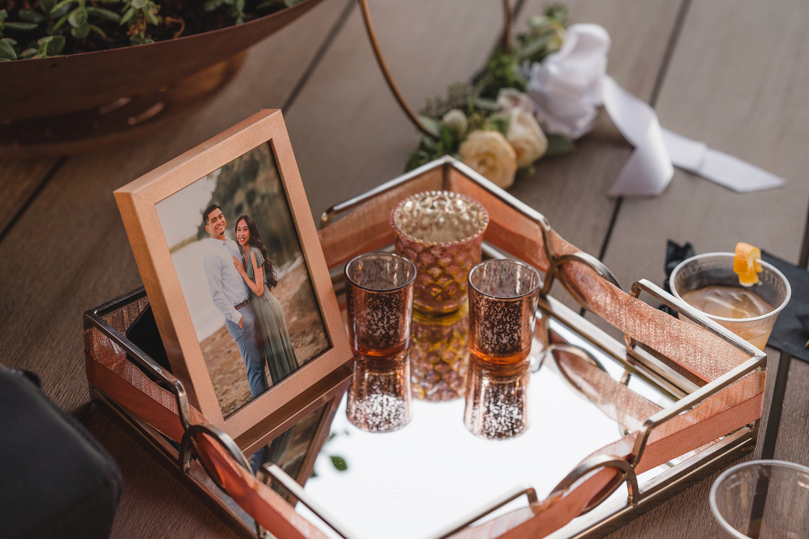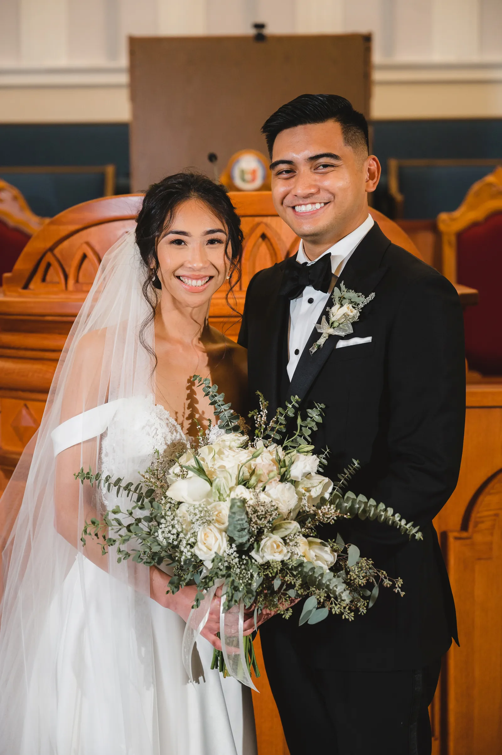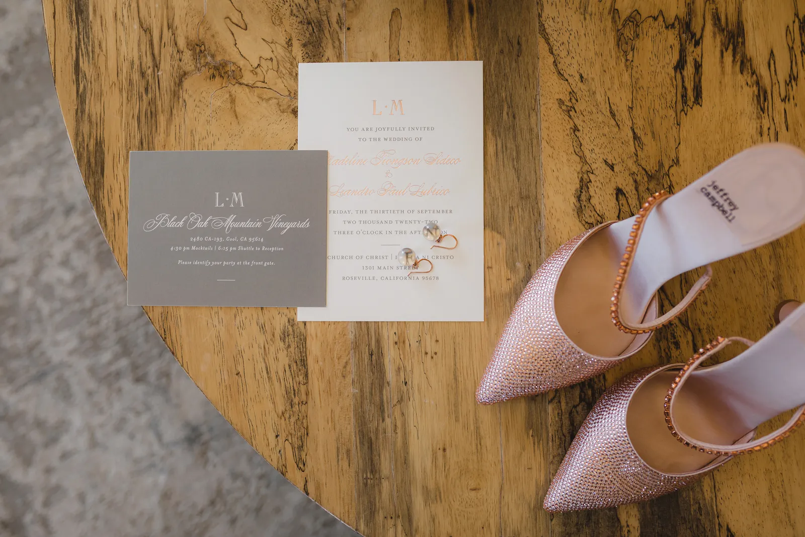 We were both at a community event, and Madeline was the stage host. She took a quick 5-minute bite for dinner. She was literally stuffing her face when a man came out from the crowd and said, “Hi” with a huge smile. She looked up, said “Hi!” and left to jump back up on stage. That stranger was Leandro. It’s not his usual character to walk up to pretty girls and say hi, but something gave him the urge to do it anyway. A month later, a mutual friend asked Madeline to reach out to “some guy” on social media so she could include him in future events. That “some guy” was Leandro. We messaged every once in a while, saw each other here and there, and a few months later hung out at get-togethers with mutual friends. We ended up bonding over hikes, star gazing, painting, and dock crabbing. Next thing we knew, we “fell in friends”. Just seven days before Madeline was moving to another state, we ended up having a talk and realized we’ve developed feelings for each other. But we both decided to give each other time to figure out what we wanted to do, and we can talk about it at the end of the week. Leandro had a rule to not do long distance relationships. But he didn’t need the whole week to decide that he wanted to be involved with Madeline. The next day, he told her that he wanted to give it a try. We dated for less than a week, then Madeline moved. Even though we were in different states, we stayed exclusive, and Leandro eventually moved too – near Madeline. After a few months in the relationship, Leandro told her that he was the stranger who walked out from the crowd to say hello. She can’t believe she doesn’t remember when she first met the love of her life! [For the proposal], it was a Friday night, and Madeline’s family was getting together for a family photo shoot for her mom’s birthday. When she arrived, she started working on a project that she had to redo and submit that night. Madeline’s sister went to get her from the other room for the family photos. Madeline follow her out to a silent house (that’s because she was being led to the backyard where their dad’s hand-built gazebo was covered with curtain lights, wisteria, and flowers). It wasn’t a family photo shoot at all, but a surprise proposal. Leandro planned an amazing and beautiful proposal with the help of Madeline’s family. Her sisters came up with a cover story that it was for their mom’s birthday photos, and her brother-in-law had one camera angle while another was set up for a different angle. Her whole family was in on it. Madeline, shocked and frozen in place, saw Leandro in a suit, all handsome, and cold after secretly waiting outside on a cold November night for over an hour! But he warmed up when he saw her appear from the two French doors. Leandro’s big and happy smile made Madeline’s heart skip. He waved her over and she stepped out. She had on a black cocktail dress, undone hair (“It was supposed to be mom’s moment, not mine!”) and tan rubber flip-flops on! That’s what happens when you get surprised! [For the wedding planning], we shared ideas and really wanted to make it a day for both of us. Neither of us had specific ideas coming into our engagement, but we discussed all of the details and agreed on everything. We both stayed involved from beginning to end, and at the end of the day, we had a great time celebrating our wedding day with the closest of family and friends in our specific L&M style.