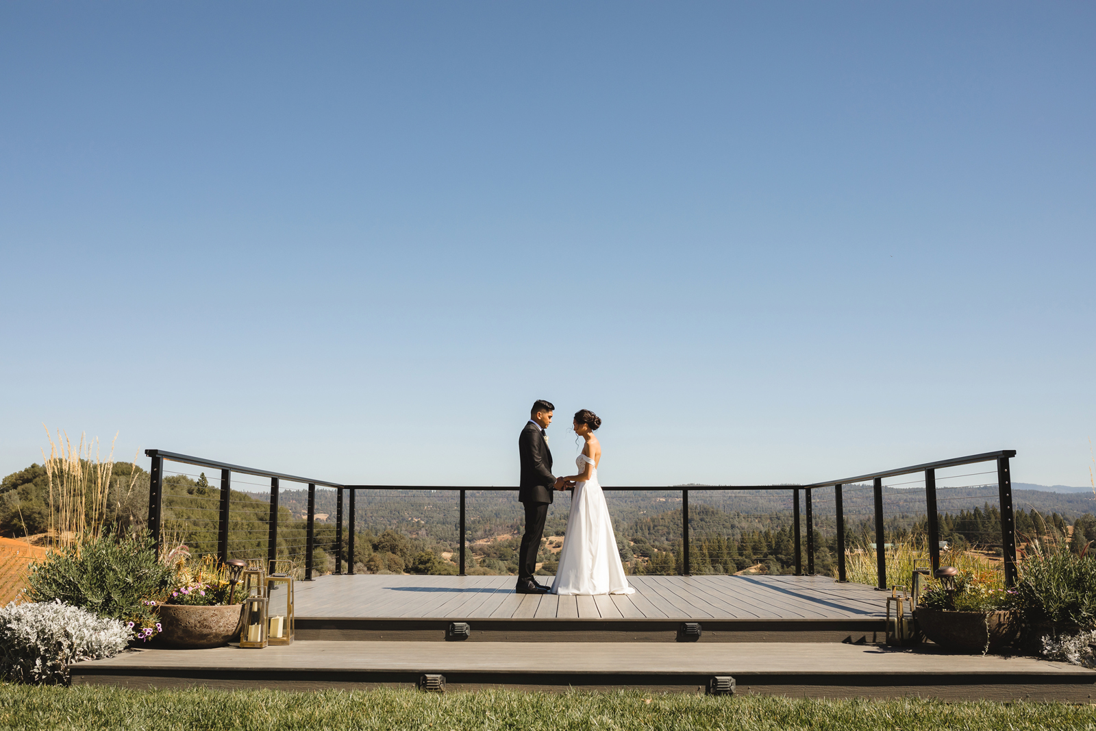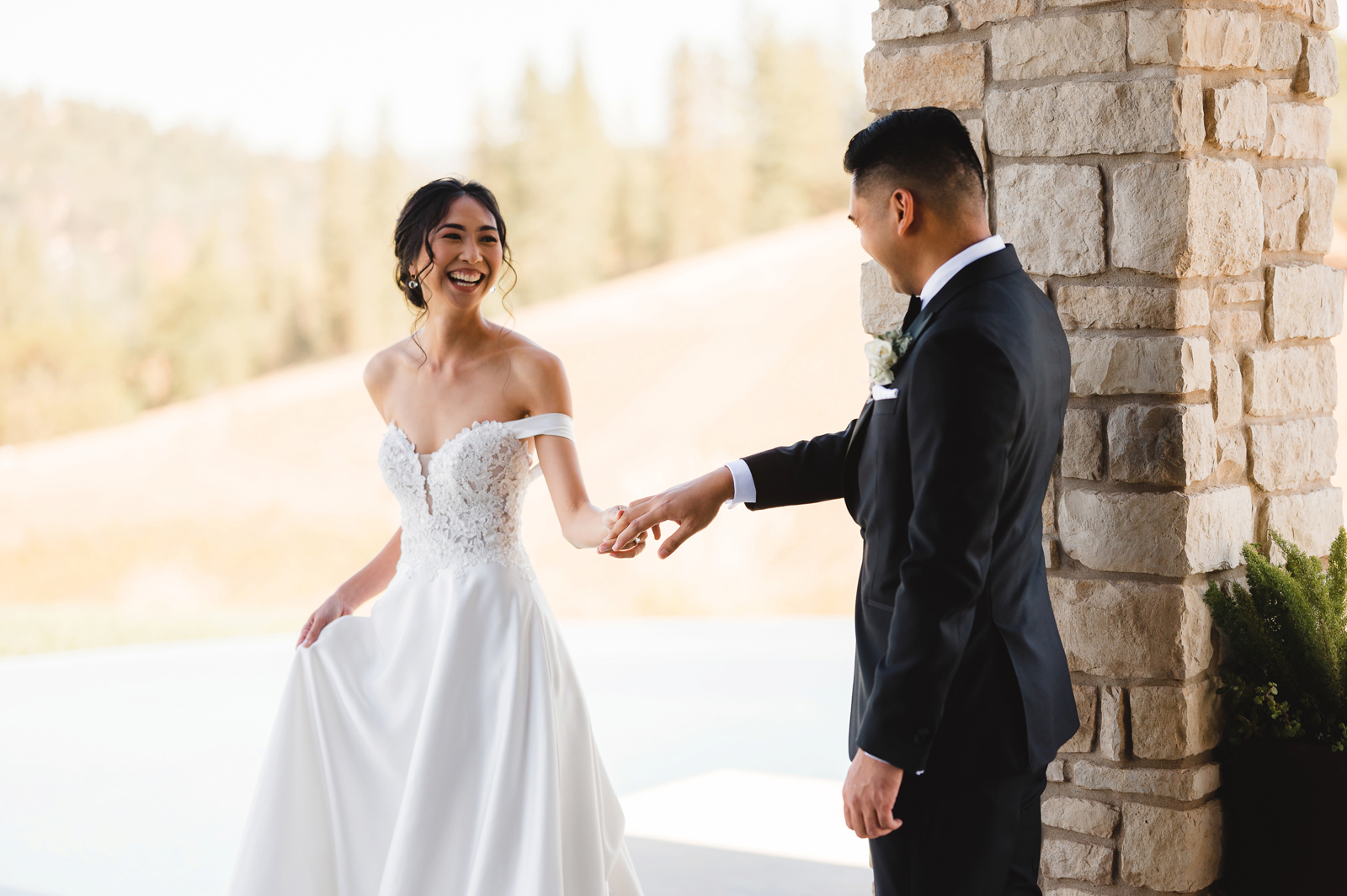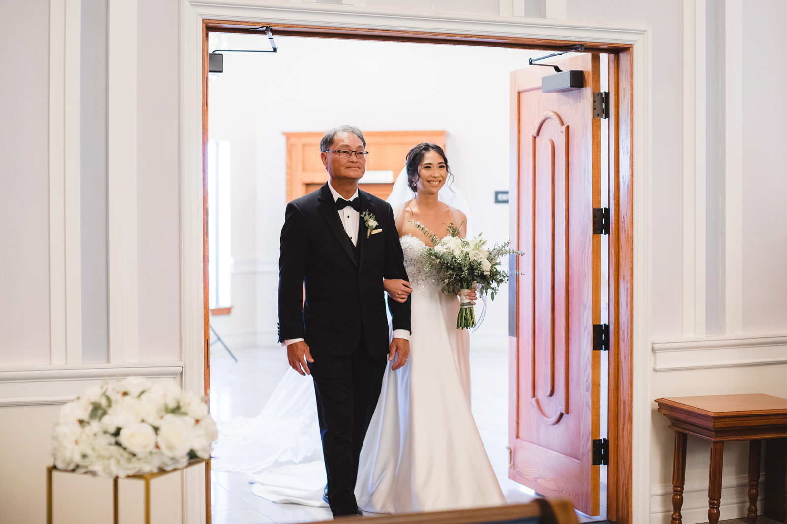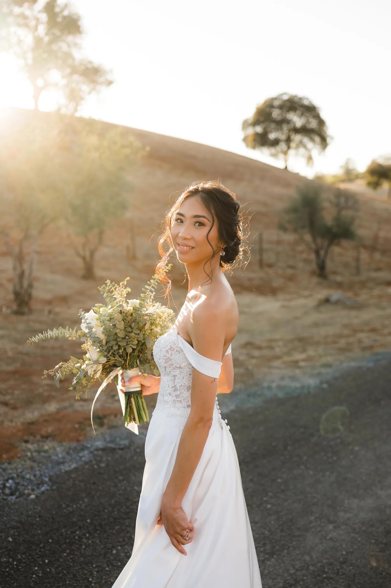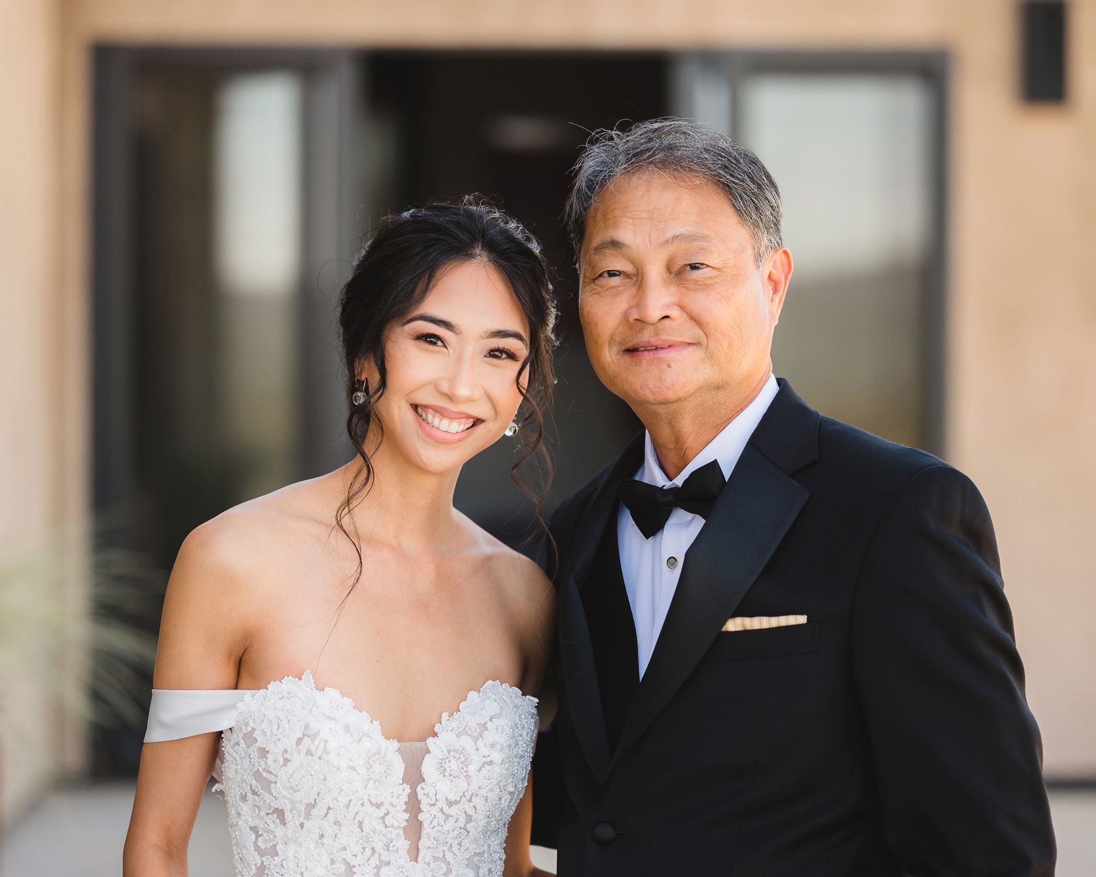 We were both at a community event, and Madeline was the stage host. She took a quick 5-minute bite for dinner. She was literally stuffing her face when a man came out from the crowd and said, “Hi” with a huge smile. She looked up, said “Hi!” and left to jump back up on stage. That stranger was Leandro. It’s not his usual character to walk up to pretty girls and say hi, but something gave him the urge to do it anyway. A month later, a mutual friend asked Madeline to reach out to “some guy” on social media so she could include him in future events. That “some guy” was Leandro. We messaged every once in a while, saw each other here and there, and a few months later hung out at get-togethers with mutual friends. We ended up bonding over hikes, star gazing, painting, and dock crabbing. Next thing we knew, we “fell in friends”. Just seven days before Madeline was moving to another state, we ended up having a talk and realized we’ve developed feelings for each other. But we both decided to give each other time to figure out what we wanted to do, and we can talk about it at the end of the week. Leandro had a rule to not do long distance relationships. But he didn’t need the whole week to decide that he wanted to be involved with Madeline. The next day, he told her that he wanted to give it a try. We dated for less than a week, then Madeline moved. Even though we were in different states, we stayed exclusive, and Leandro eventually moved too – near Madeline. After a few months in the relationship, Leandro told her that he was the stranger who walked out from the crowd to say hello. She can’t believe she doesn’t remember when she first met the love of her life! [For the proposal], it was a Friday night, and Madeline’s family was getting together for a family photo shoot for her mom’s birthday. When she arrived, she started working on a project that she had to redo and submit that night. Madeline’s sister went to get her from the other room for the family photos. Madeline follow her out to a silent house (that’s because she was being led to the backyard where their dad’s hand-built gazebo was covered with curtain lights, wisteria, and flowers). It wasn’t a family photo shoot at all, but a surprise proposal. Leandro planned an amazing and beautiful proposal with the help of Madeline’s family. Her sisters came up with a cover story that it was for their mom’s birthday photos, and her brother-in-law had one camera angle while another was set up for a different angle. Her whole family was in on it. Madeline, shocked and frozen in place, saw Leandro in a suit, all handsome, and cold after secretly waiting outside on a cold November night for over an hour! But he warmed up when he saw her appear from the two French doors. Leandro’s big and happy smile made Madeline’s heart skip. He waved her over and she stepped out. She had on a black cocktail dress, undone hair (“It was supposed to be mom’s moment, not mine!”) and tan rubber flip-flops on! That’s what happens when you get surprised! [For the wedding planning], we shared ideas and really wanted to make it a day for both of us. Neither of us had specific ideas coming into our engagement, but we discussed all of the details and agreed on everything. We both stayed involved from beginning to end, and at the end of the day, we had a great time celebrating our wedding day with the closest of family and friends in our specific L&M style.