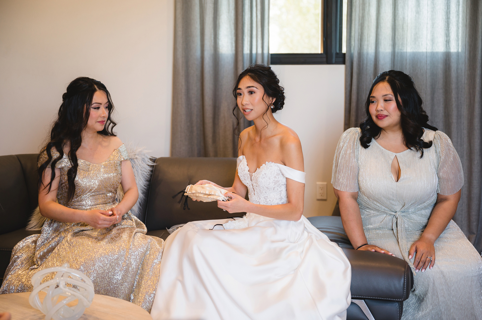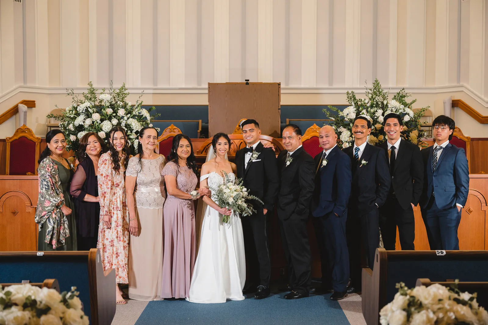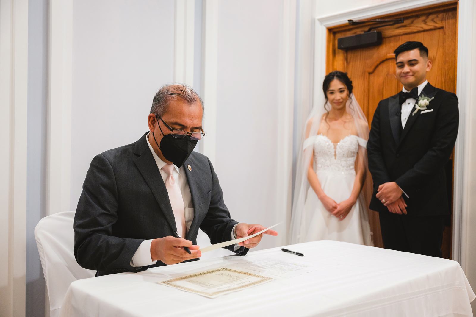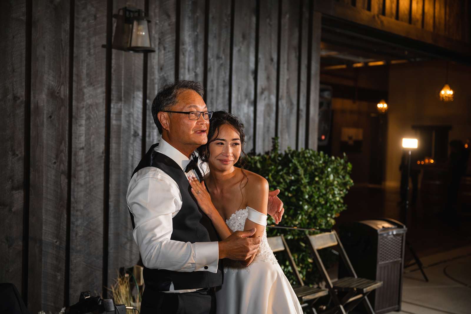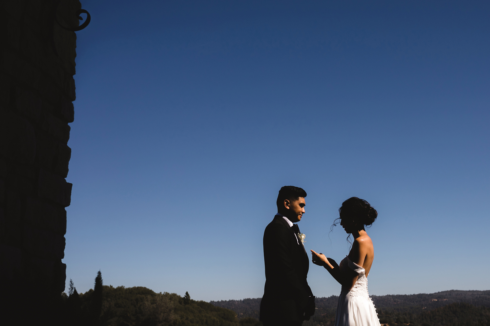 We were both at a community event, and Madeline was the stage host. She took a quick 5-minute bite for dinner. She was literally stuffing her face when a man came out from the crowd and said, “Hi” with a huge smile. She looked up, said “Hi!” and left to jump back up on stage. That stranger was Leandro. It’s not his usual character to walk up to pretty girls and say hi, but something gave him the urge to do it anyway. A month later, a mutual friend asked Madeline to reach out to “some guy” on social media so she could include him in future events. That “some guy” was Leandro. We messaged every once in a while, saw each other here and there, and a few months later hung out at get-togethers with mutual friends. We ended up bonding over hikes, star gazing, painting, and dock crabbing. Next thing we knew, we “fell in friends”. Just seven days before Madeline was moving to another state, we ended up having a talk and realized we’ve developed feelings for each other. But we both decided to give each other time to figure out what we wanted to do, and we can talk about it at the end of the week. Leandro had a rule to not do long distance relationships. But he didn’t need the whole week to decide that he wanted to be involved with Madeline. The next day, he told her that he wanted to give it a try. We dated for less than a week, then Madeline moved. Even though we were in different states, we stayed exclusive, and Leandro eventually moved too – near Madeline. After a few months in the relationship, Leandro told her that he was the stranger who walked out from the crowd to say hello. She can’t believe she doesn’t remember when she first met the love of her life! [For the proposal], it was a Friday night, and Madeline’s family was getting together for a family photo shoot for her mom’s birthday. When she arrived, she started working on a project that she had to redo and submit that night. Madeline’s sister went to get her from the other room for the family photos. Madeline follow her out to a silent house (that’s because she was being led to the backyard where their dad’s hand-built gazebo was covered with curtain lights, wisteria, and flowers). It wasn’t a family photo shoot at all, but a surprise proposal. Leandro planned an amazing and beautiful proposal with the help of Madeline’s family. Her sisters came up with a cover story that it was for their mom’s birthday photos, and her brother-in-law had one camera angle while another was set up for a different angle. Her whole family was in on it. Madeline, shocked and frozen in place, saw Leandro in a suit, all handsome, and cold after secretly waiting outside on a cold November night for over an hour! But he warmed up when he saw her appear from the two French doors. Leandro’s big and happy smile made Madeline’s heart skip. He waved her over and she stepped out. She had on a black cocktail dress, undone hair (“It was supposed to be mom’s moment, not mine!”) and tan rubber flip-flops on! That’s what happens when you get surprised! [For the wedding planning], we shared ideas and really wanted to make it a day for both of us. Neither of us had specific ideas coming into our engagement, but we discussed all of the details and agreed on everything. We both stayed involved from beginning to end, and at the end of the day, we had a great time celebrating our wedding day with the closest of family and friends in our specific L&M style.