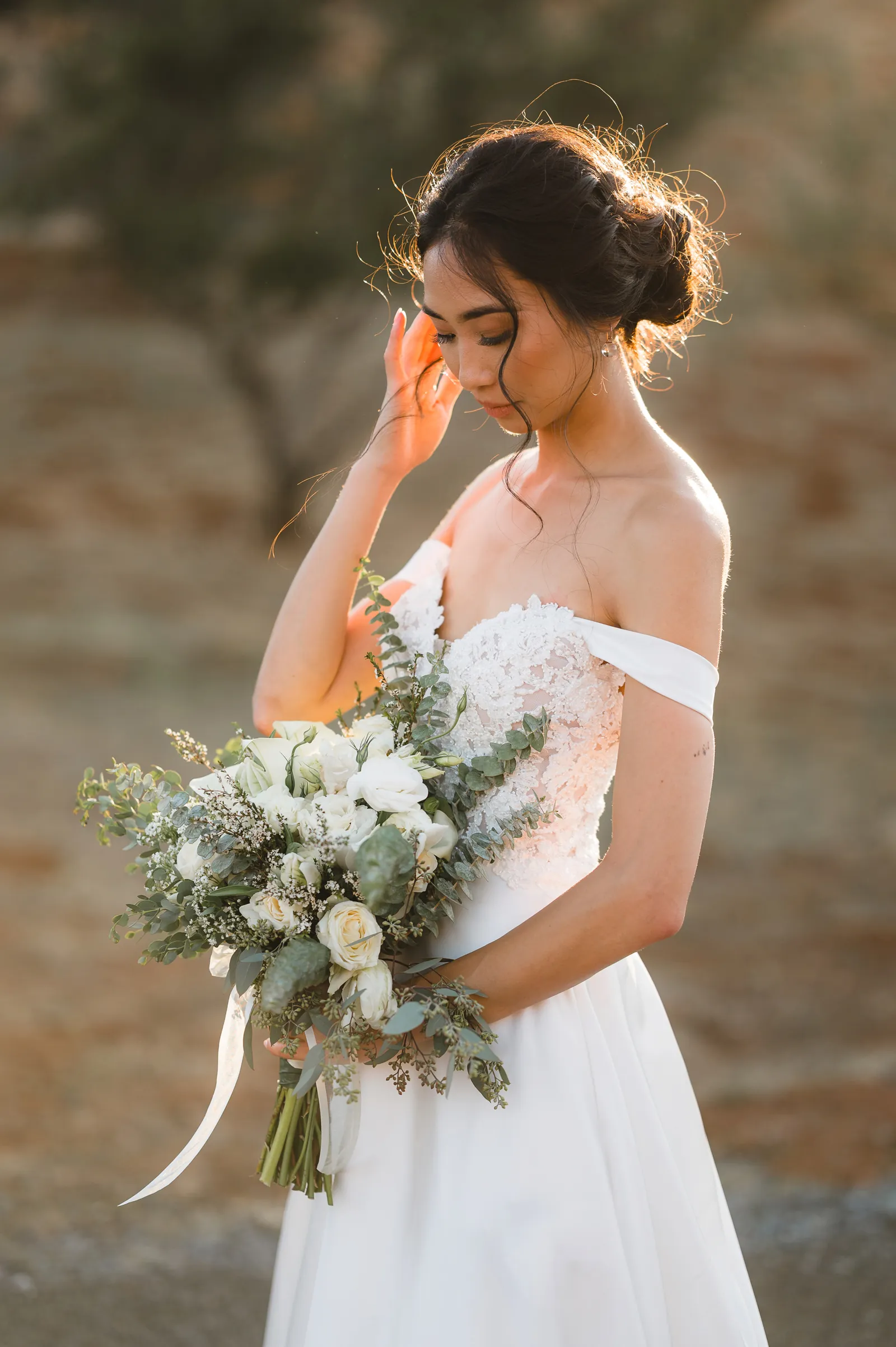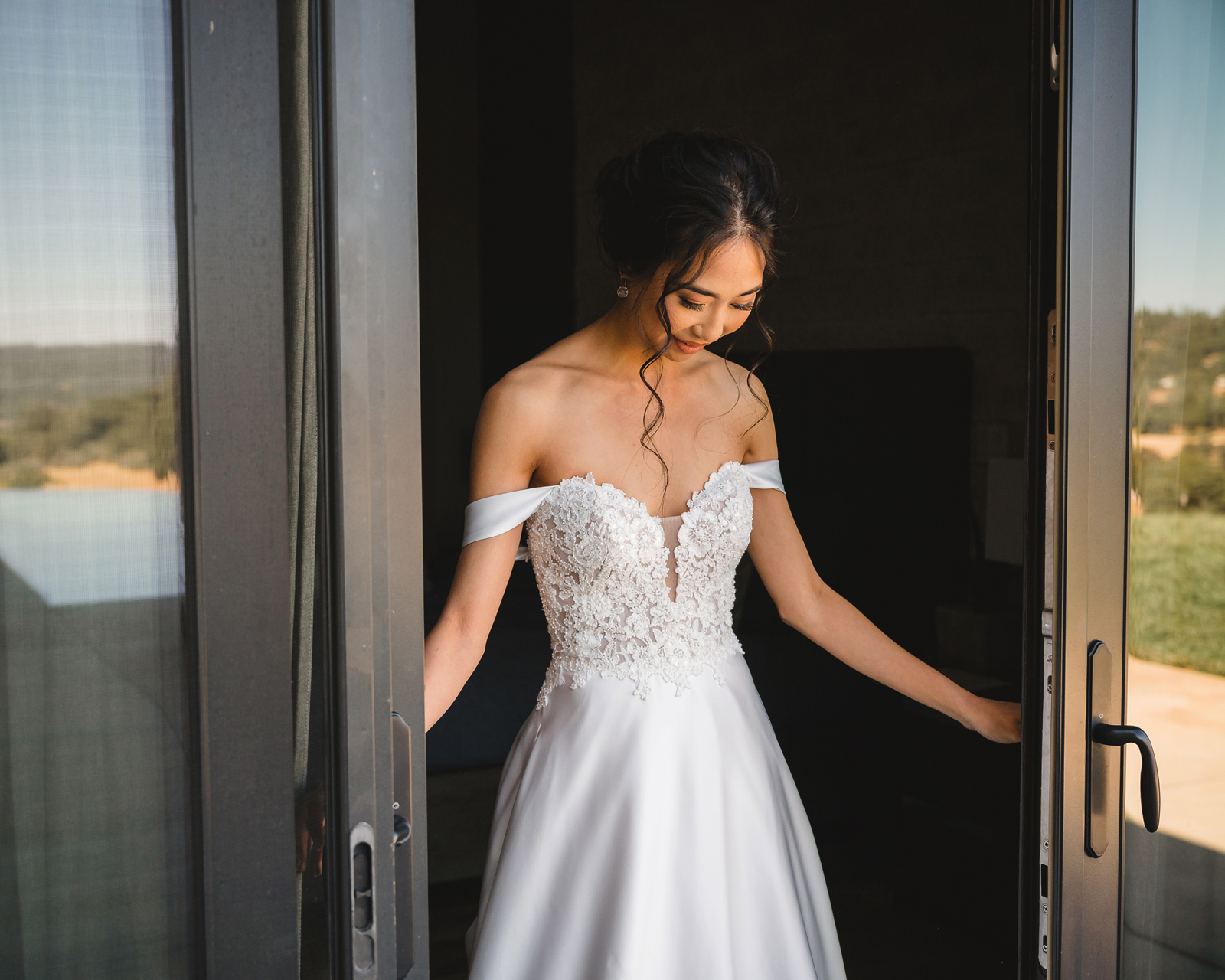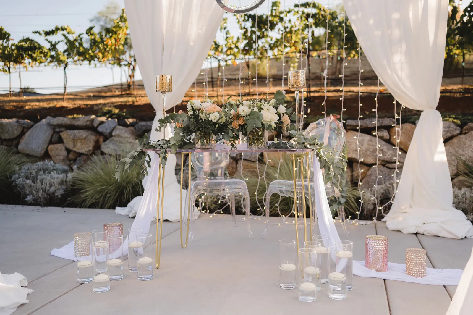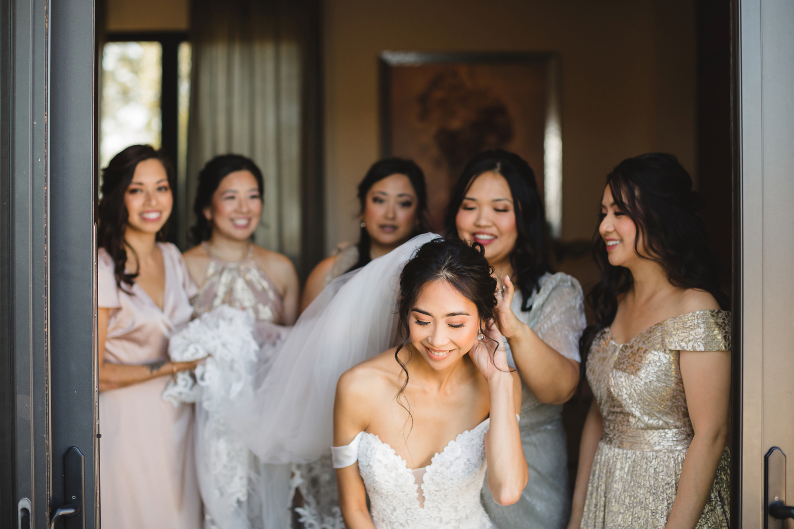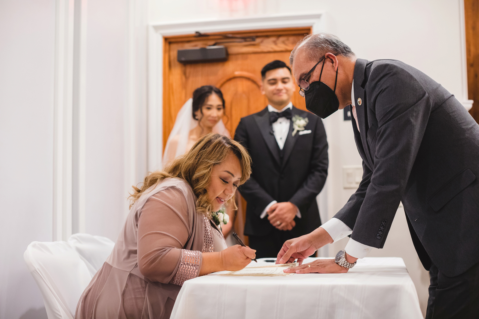 We were both at a community event, and Madeline was the stage host. She took a quick 5-minute bite for dinner. She was literally stuffing her face when a man came out from the crowd and said, “Hi” with a huge smile. She looked up, said “Hi!” and left to jump back up on stage. That stranger was Leandro. It’s not his usual character to walk up to pretty girls and say hi, but something gave him the urge to do it anyway. A month later, a mutual friend asked Madeline to reach out to “some guy” on social media so she could include him in future events. That “some guy” was Leandro. We messaged every once in a while, saw each other here and there, and a few months later hung out at get-togethers with mutual friends. We ended up bonding over hikes, star gazing, painting, and dock crabbing. Next thing we knew, we “fell in friends”. Just seven days before Madeline was moving to another state, we ended up having a talk and realized we’ve developed feelings for each other. But we both decided to give each other time to figure out what we wanted to do, and we can talk about it at the end of the week. Leandro had a rule to not do long distance relationships. But he didn’t need the whole week to decide that he wanted to be involved with Madeline. The next day, he told her that he wanted to give it a try. We dated for less than a week, then Madeline moved. Even though we were in different states, we stayed exclusive, and Leandro eventually moved too – near Madeline. After a few months in the relationship, Leandro told her that he was the stranger who walked out from the crowd to say hello. She can’t believe she doesn’t remember when she first met the love of her life! [For the proposal], it was a Friday night, and Madeline’s family was getting together for a family photo shoot for her mom’s birthday. When she arrived, she started working on a project that she had to redo and submit that night. Madeline’s sister went to get her from the other room for the family photos. Madeline follow her out to a silent house (that’s because she was being led to the backyard where their dad’s hand-built gazebo was covered with curtain lights, wisteria, and flowers). It wasn’t a family photo shoot at all, but a surprise proposal. Leandro planned an amazing and beautiful proposal with the help of Madeline’s family. Her sisters came up with a cover story that it was for their mom’s birthday photos, and her brother-in-law had one camera angle while another was set up for a different angle. Her whole family was in on it. Madeline, shocked and frozen in place, saw Leandro in a suit, all handsome, and cold after secretly waiting outside on a cold November night for over an hour! But he warmed up when he saw her appear from the two French doors. Leandro’s big and happy smile made Madeline’s heart skip. He waved her over and she stepped out. She had on a black cocktail dress, undone hair (“It was supposed to be mom’s moment, not mine!”) and tan rubber flip-flops on! That’s what happens when you get surprised! [For the wedding planning], we shared ideas and really wanted to make it a day for both of us. Neither of us had specific ideas coming into our engagement, but we discussed all of the details and agreed on everything. We both stayed involved from beginning to end, and at the end of the day, we had a great time celebrating our wedding day with the closest of family and friends in our specific L&M style.