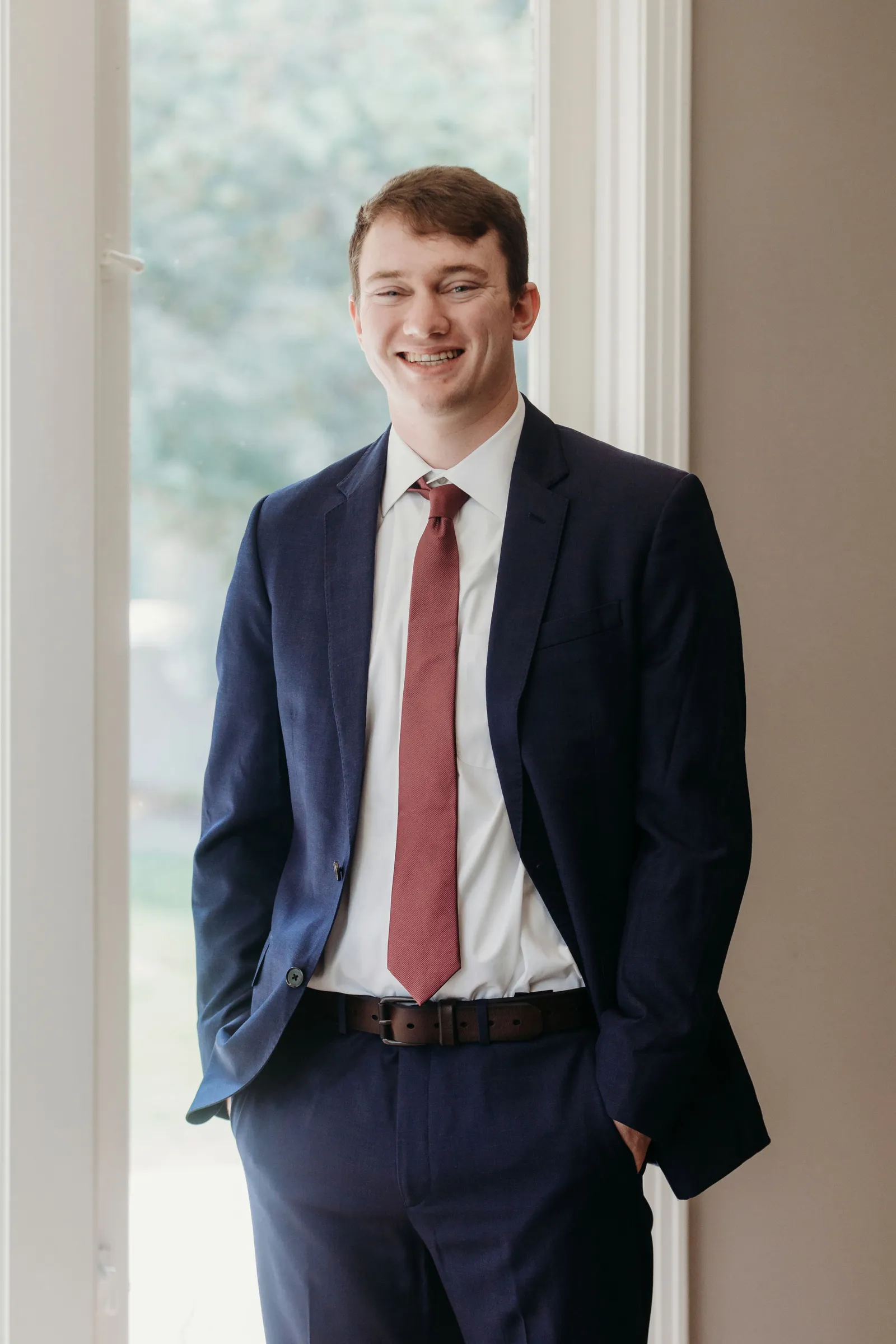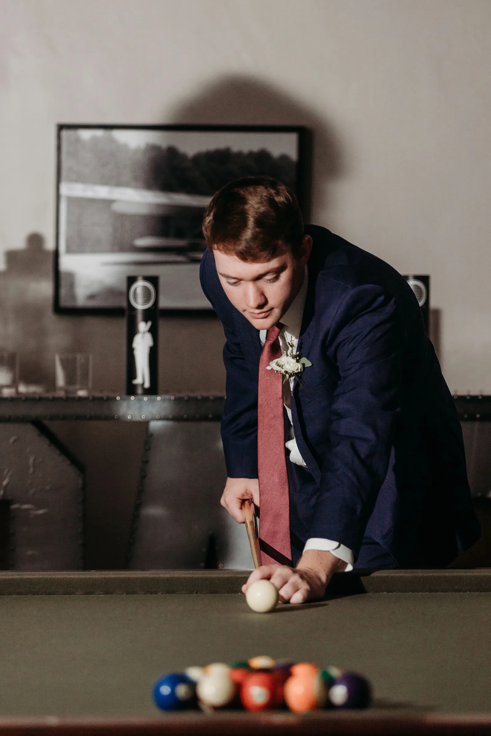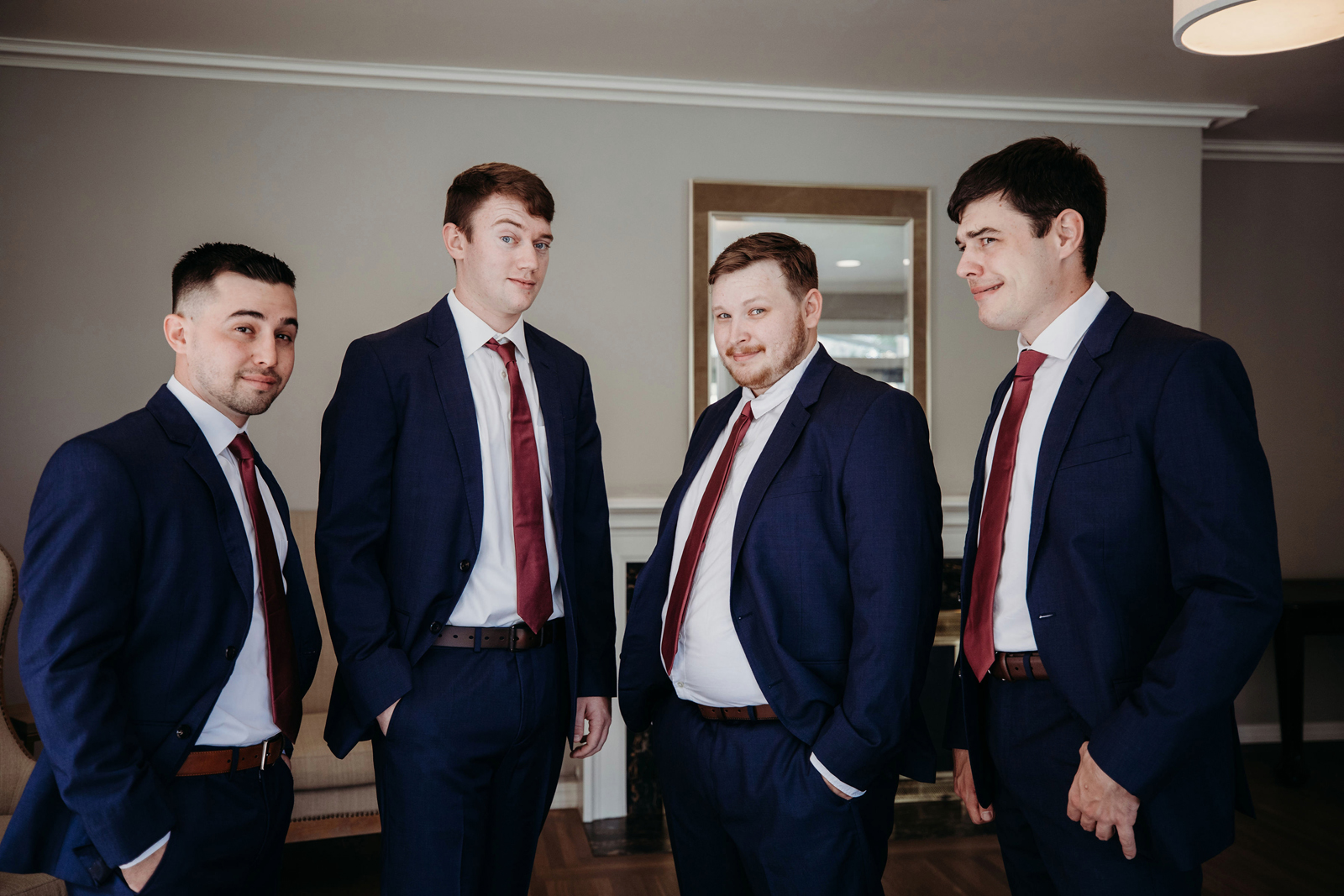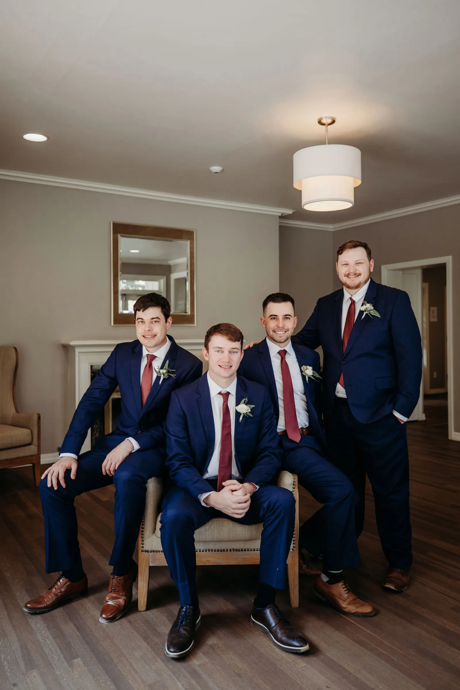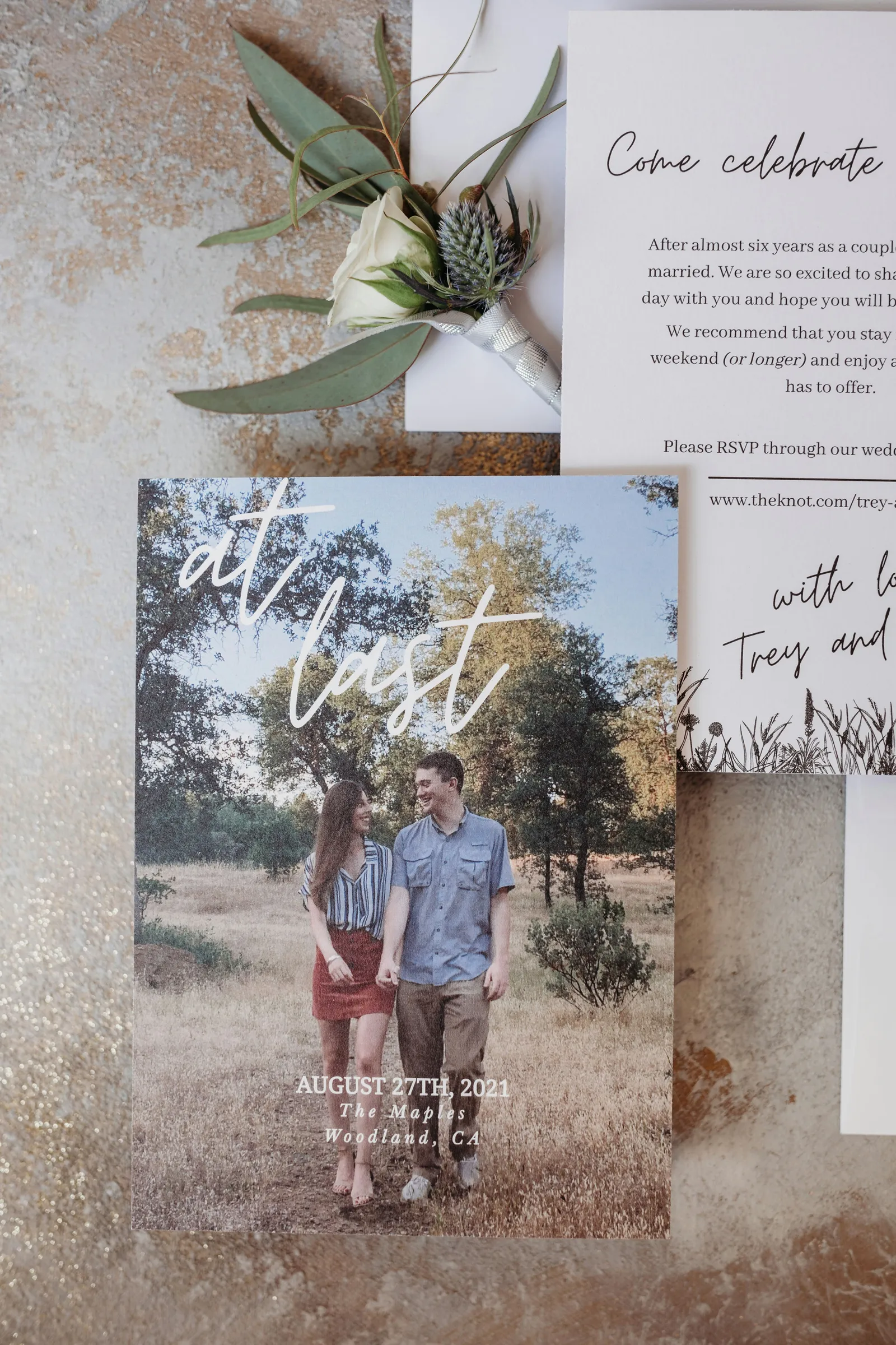 We have known each other since we were 10 years old. We were partners in group projects and part of the same friend group all through school. Almost everyone we knew told us to date or assumed we were dating. By freshman year of college, Trey lived with a mutual friend of ours (the future best man) and they were playing pranks on each other. Trey asked me (Alayna) if we could pretend to date as a prank on the roommate — that lasted about a week before we decided to make it official. After college we did long distance until we were able to work from home together most of the time. During one of our periods apart, Trey surprised me by proposing at my front door unannounced.