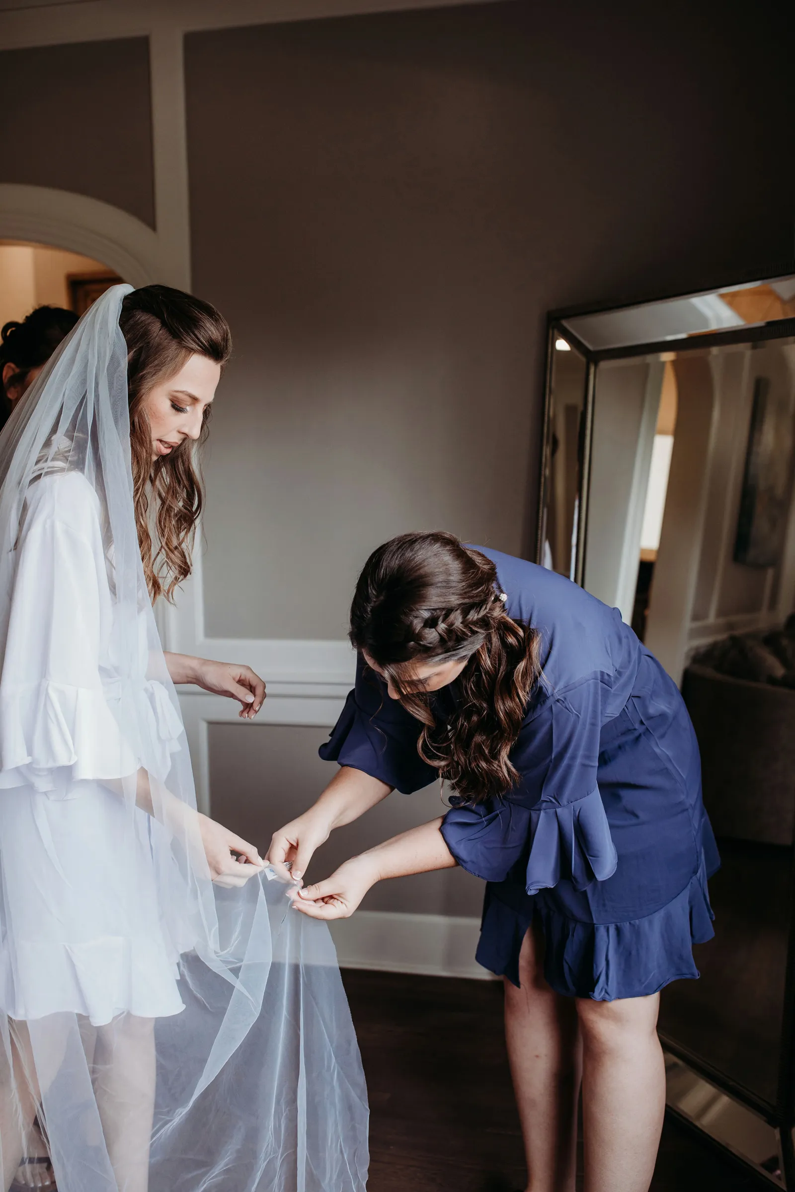 Things may go wrong and you may have to go with it. My (Alayna’s) bridal boutique gave me a free, beautiful long veil that I had planned to get shortened, but forgot. So on the morning of the wedding, we had a tiny pair of scissors and my mom tried to cut it. About an inch in we realized that was not going to work and my sister had to use eyelash glue to glue it back together. No one could tell!