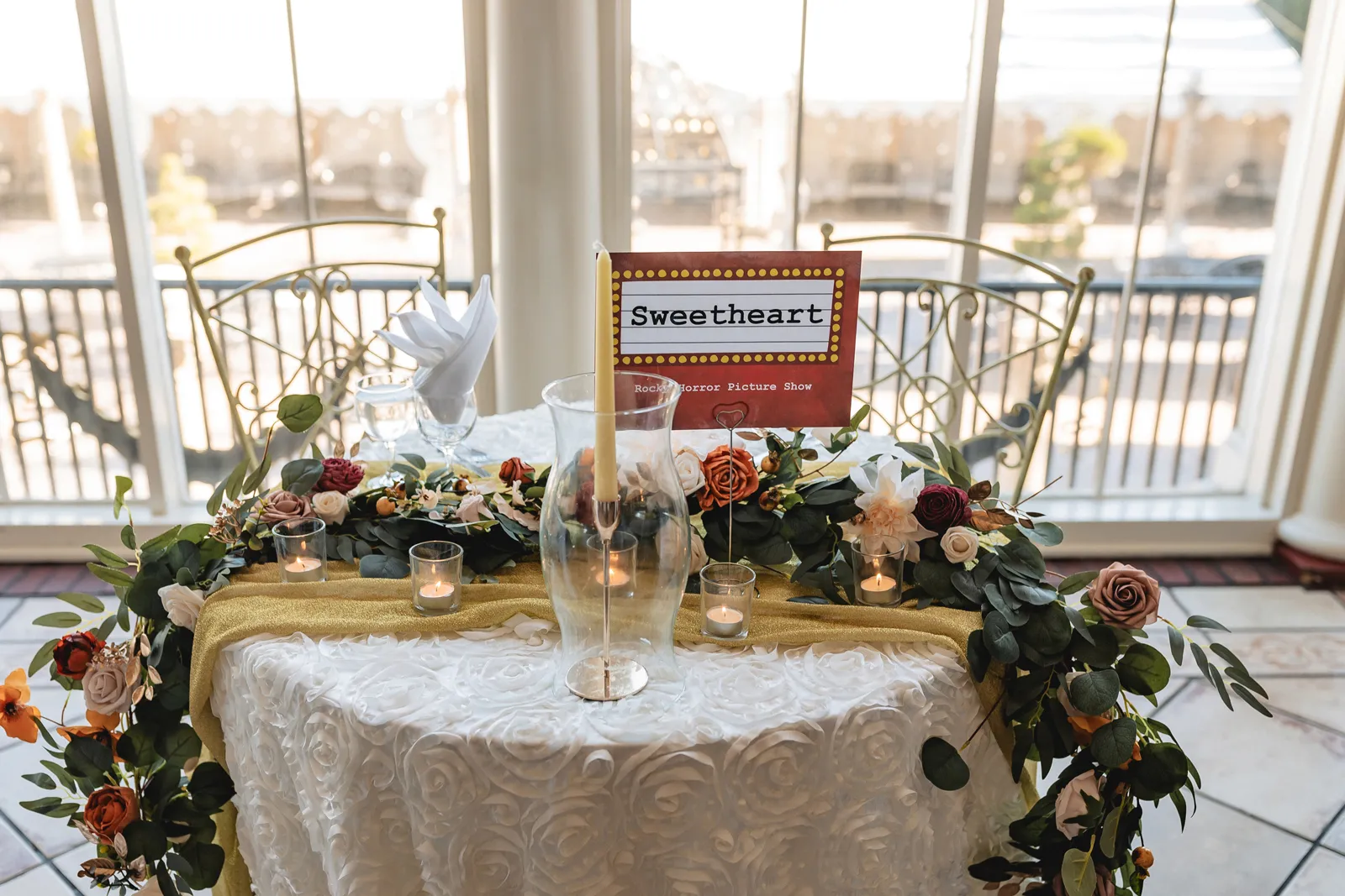 This wedding really allowed us to be creative and let our personalities show. We both love movies, and we used the seating chart as an opportunity to show our favorite movies. Trystan created a short film with pictures of us and images of cinematic couples to be shown in a theater at our venue. We used a song from one of our favorite animes as our grand entrance. The music in general was a reflection of not only our tastes, but how we feel about each other. There was Bob Marley and the Beatles, there was Etta James and Elvis. Our guests left knowing so much about us!