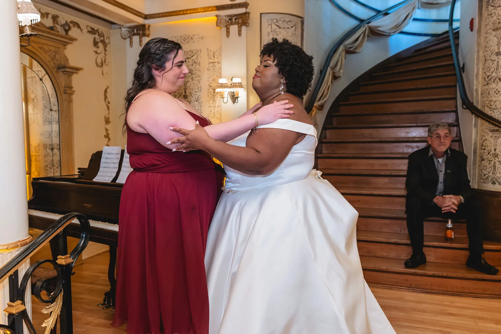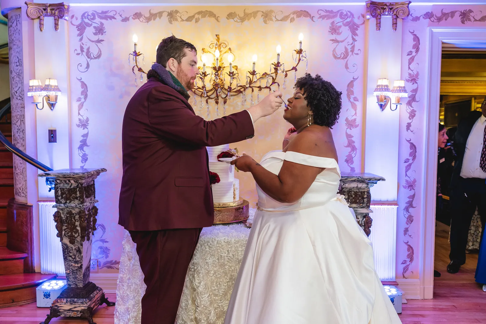 We met online through a dating app! On our second date, we saw the Rocky Horror Picture Show at the Colonial. Three years later, on Halloween, as we drove home, Trystan played a playlist of some songs that had been a huge part of our relationship. When we arrived at our apartment, he led me out of the car, played “Dammit Janet”, got down on one knee, and proposed! We knew from the start we wanted a two-year engagement to have plenty of time to plan the wedding of our dreams, and it worked perfectly for us, as all of our preferred vendors were available (and thankful for the advanced notice!)