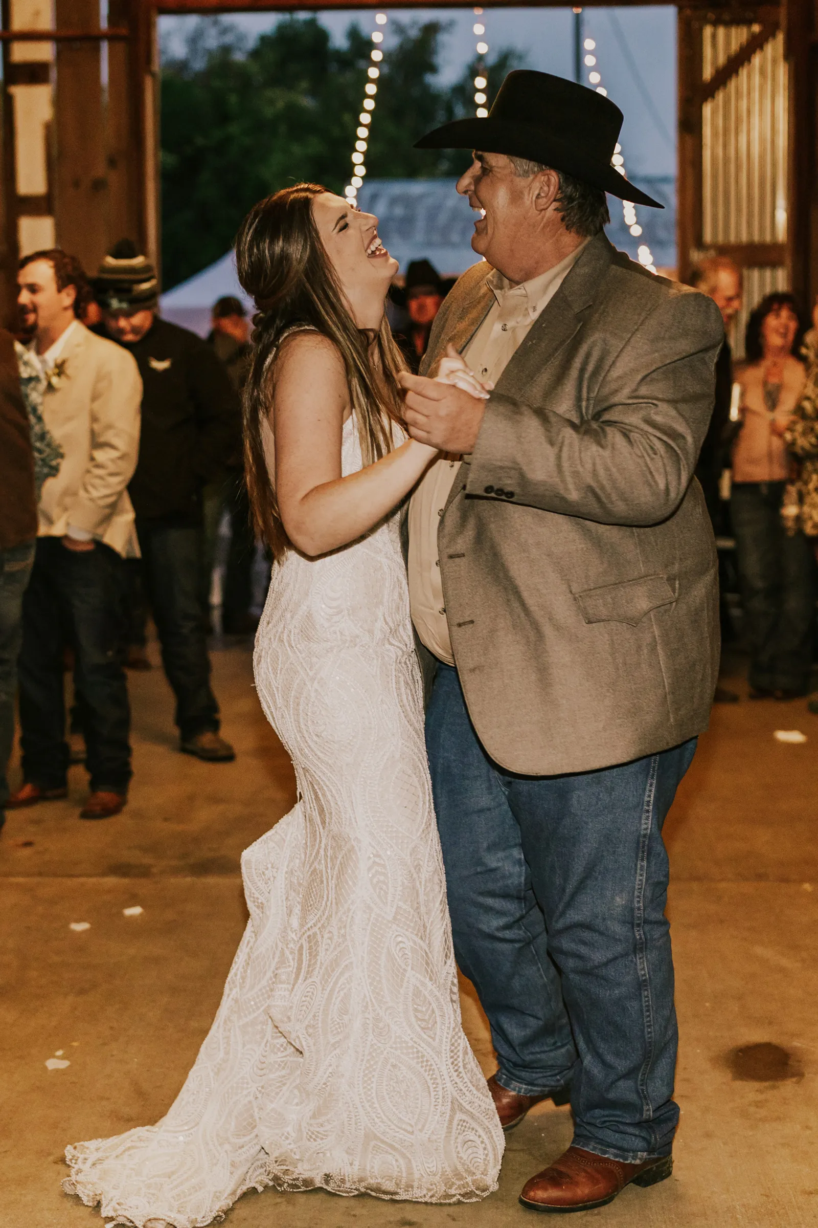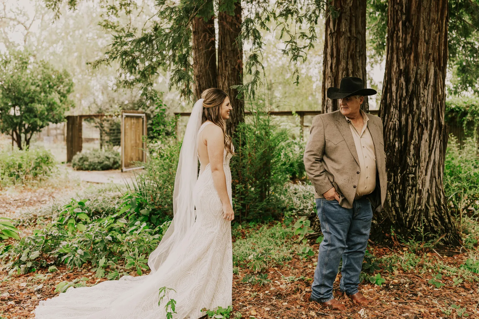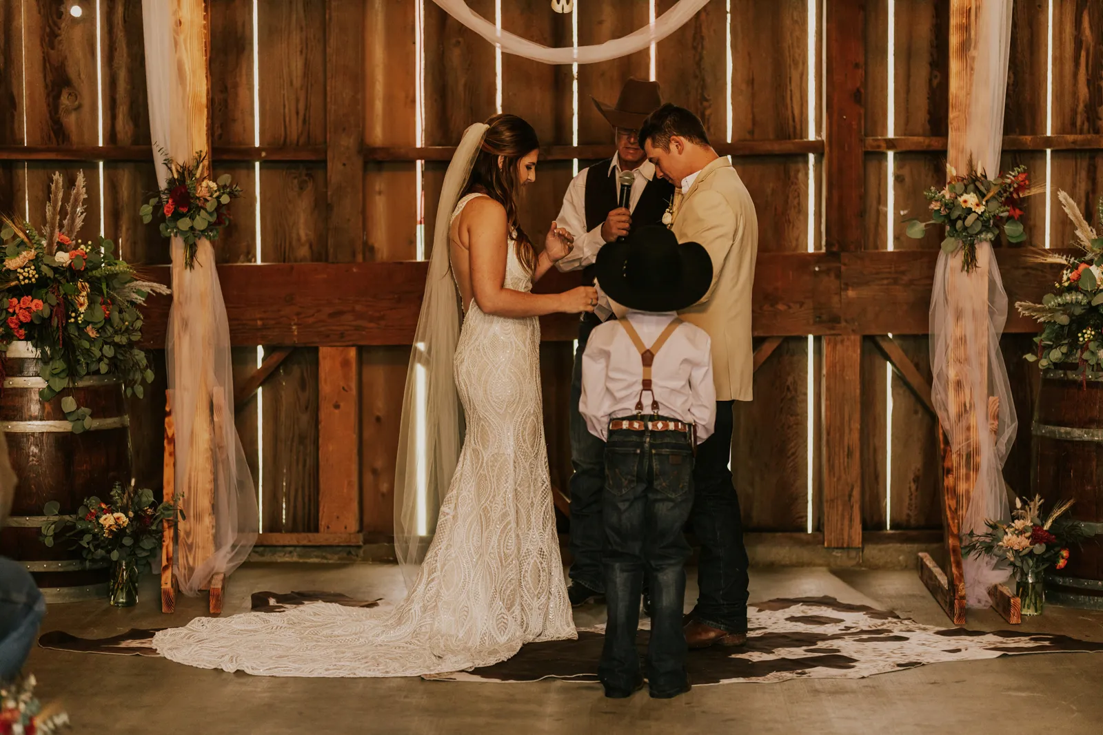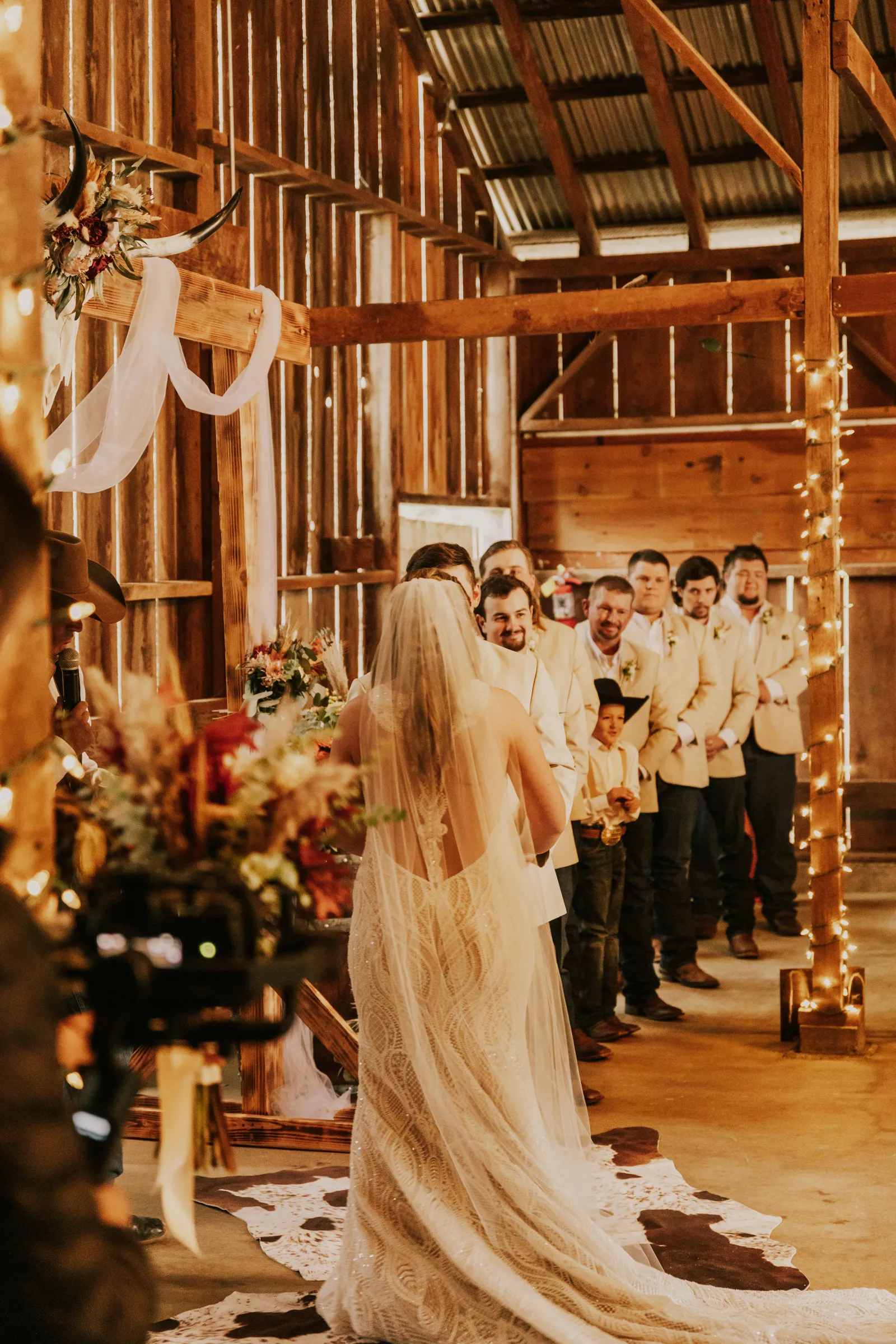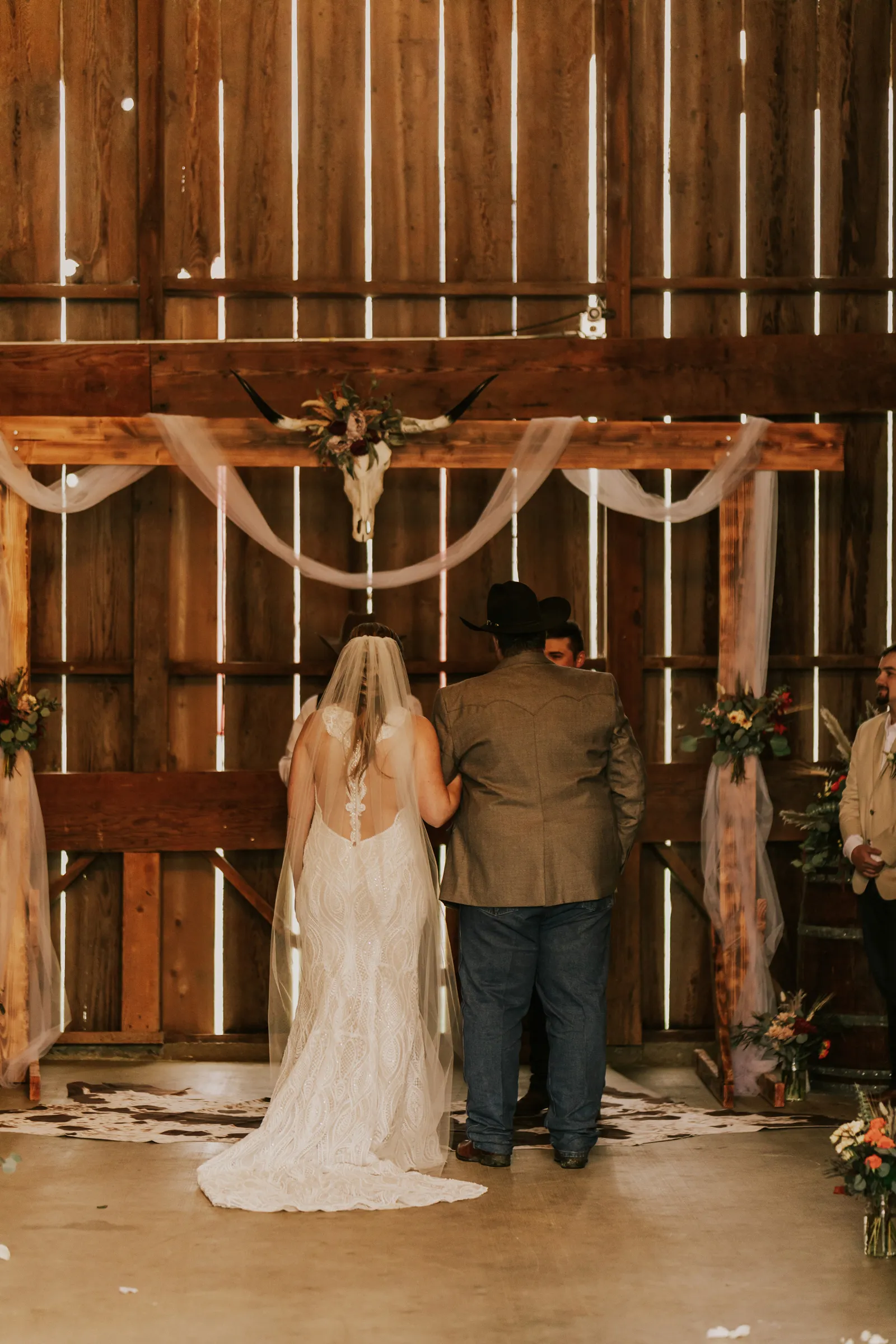 Happy Real Weddings Wednesday, everyone! We want to know, what’s a country wedding without cowgirl boots? Scroll below to read all about Bailey + Chris’s rustic ceremony full of jean jackets, heartwarming first-looks, and open back-gowns courtesy of Always Elegant Bridal & Tuxedo! Happy Wednesday, and happy reading!