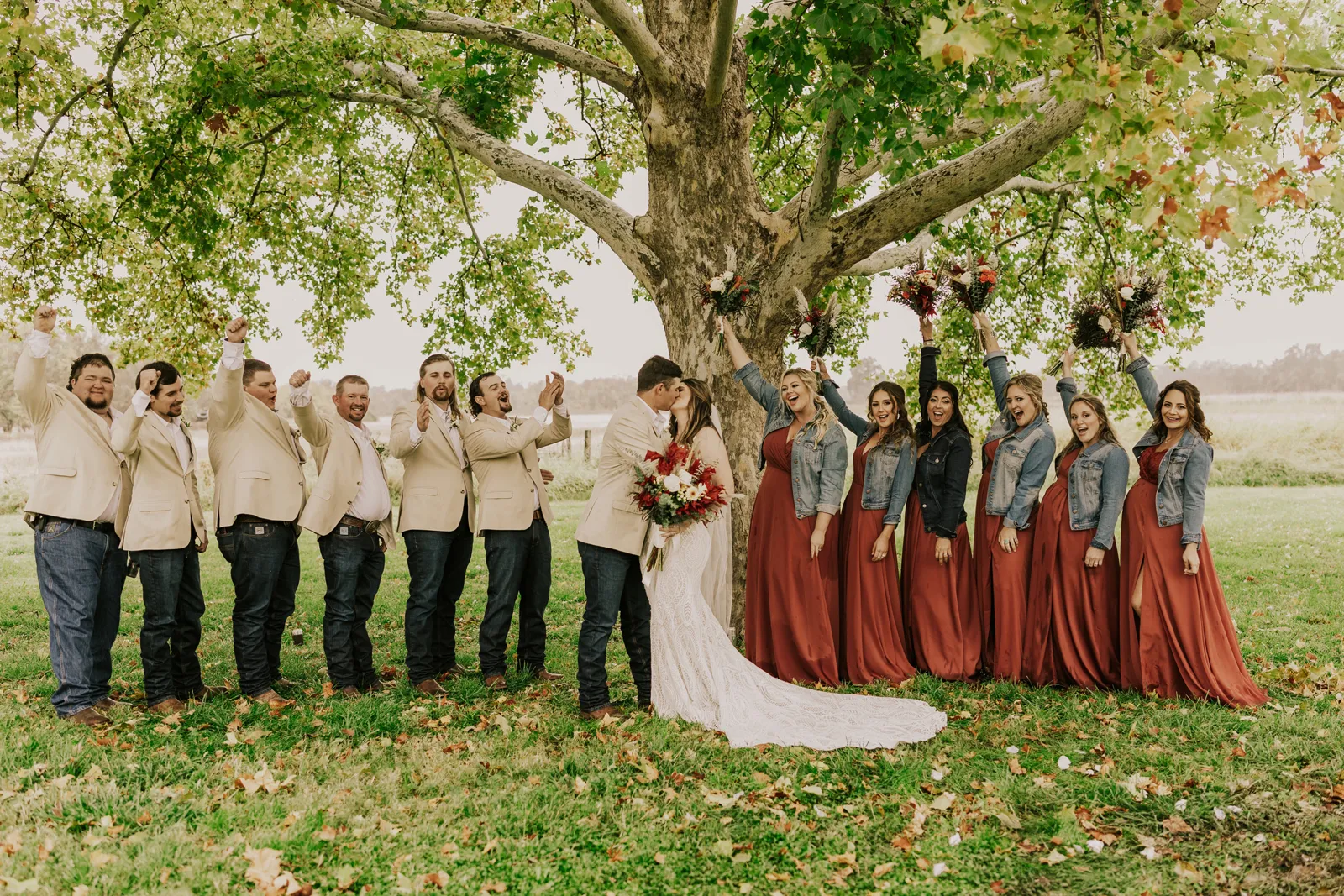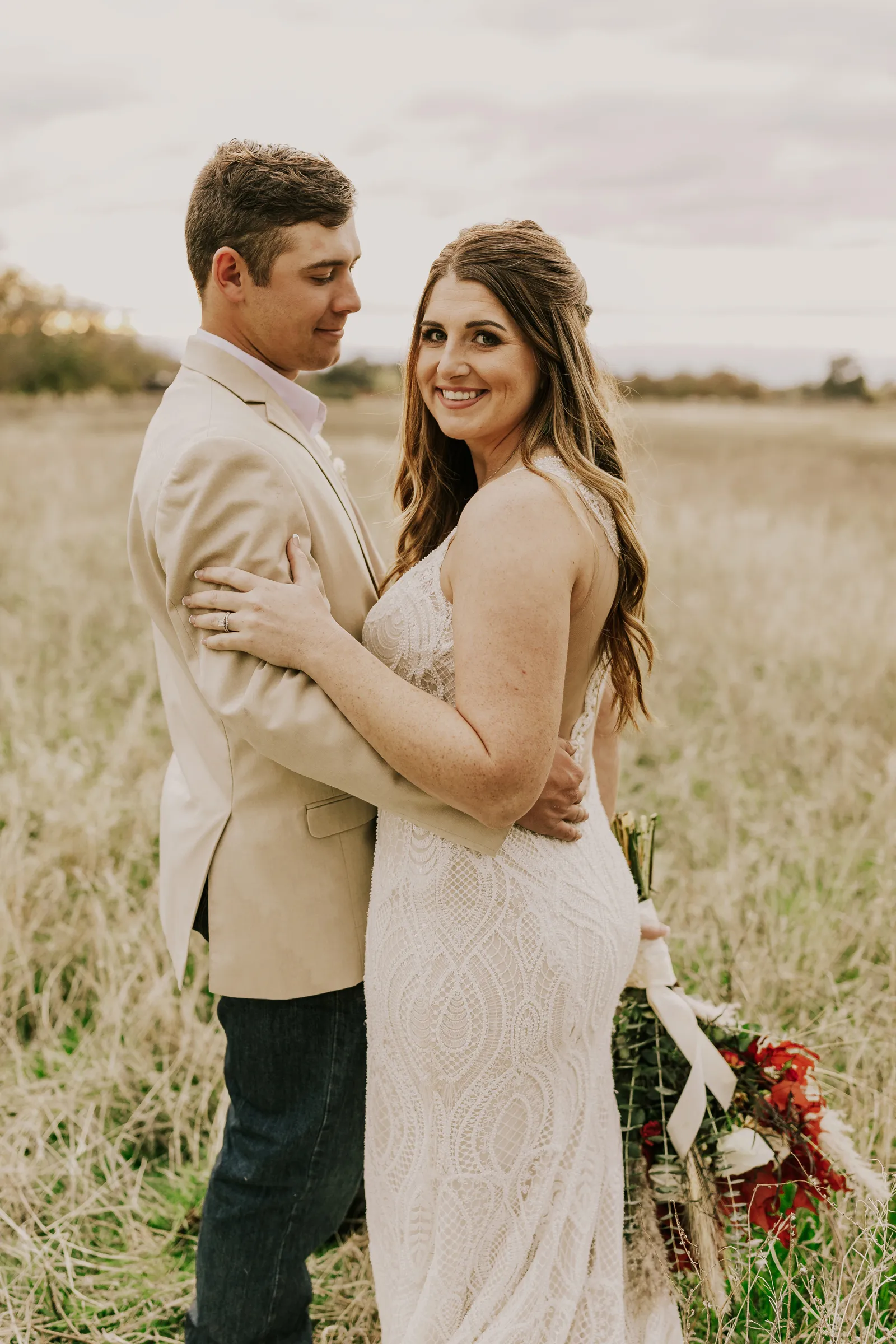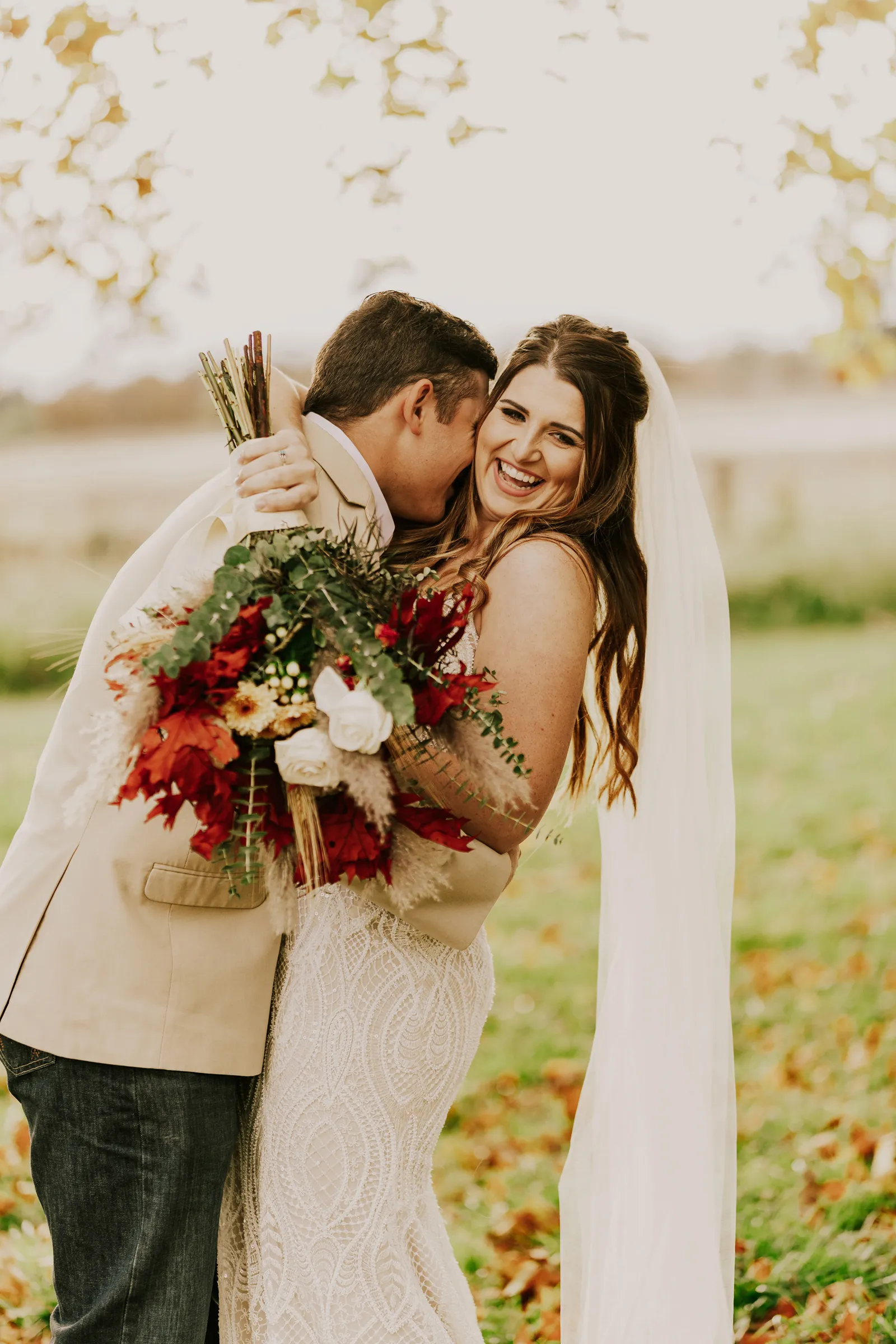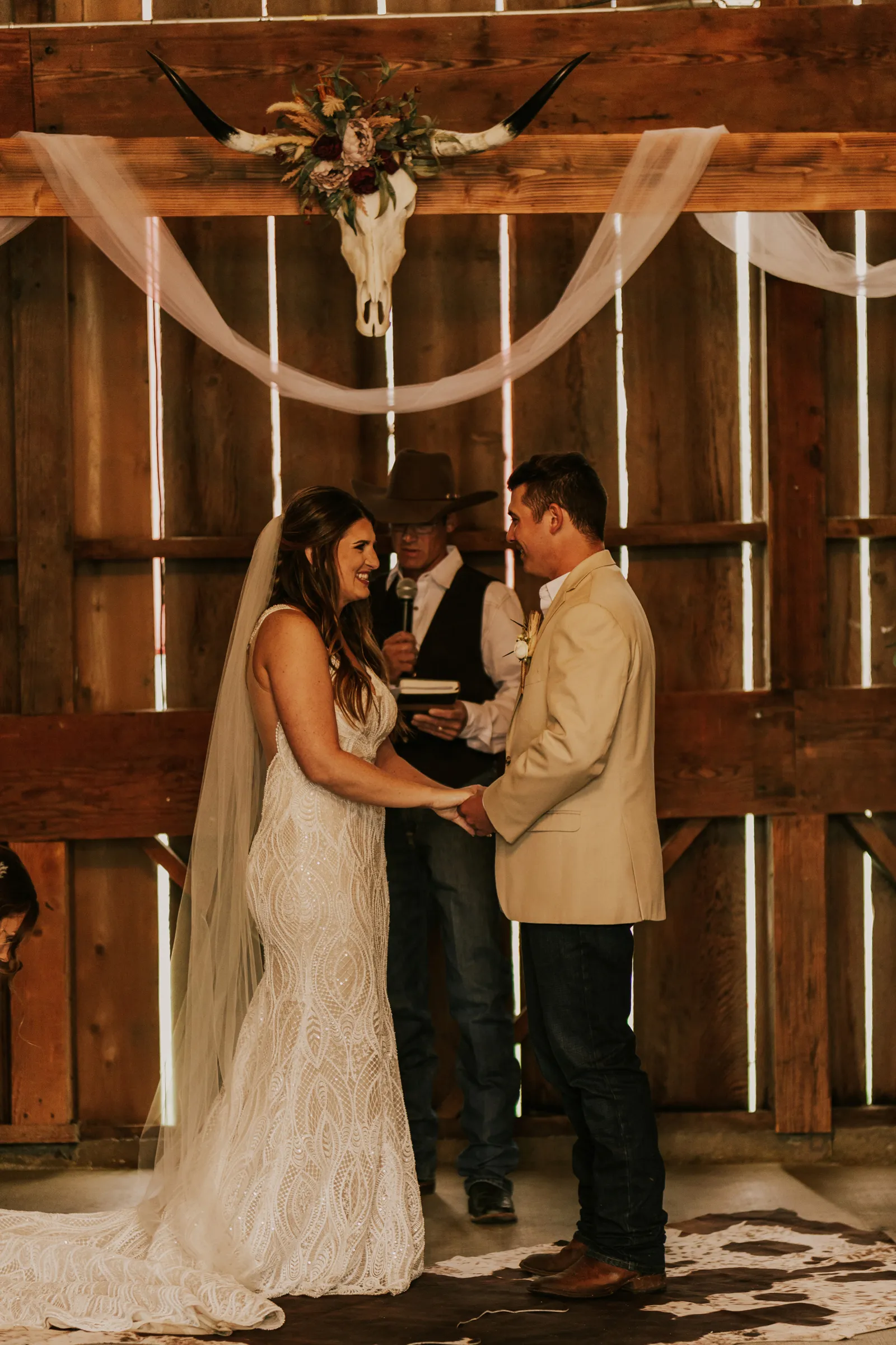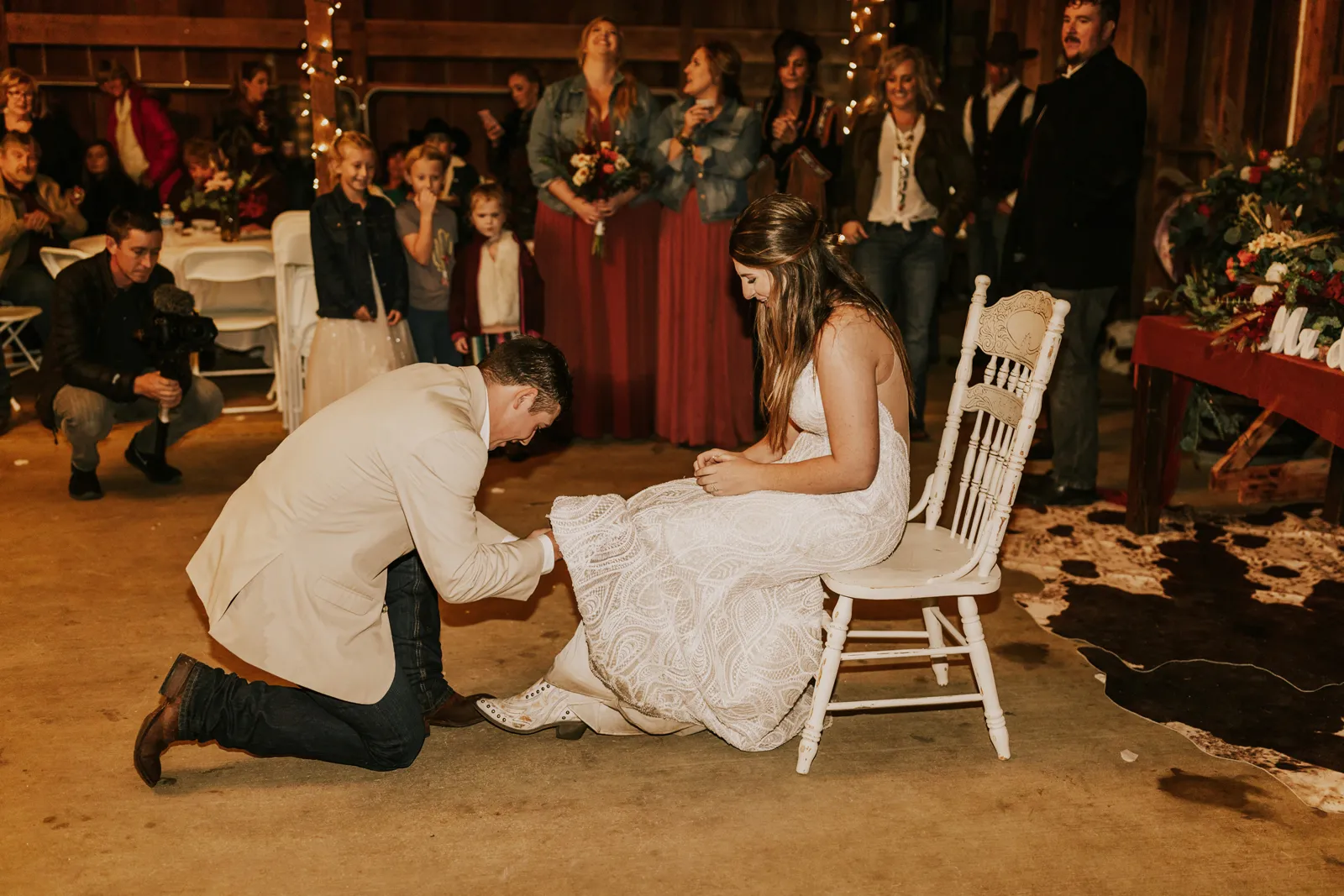 Happy Real Weddings Wednesday, everyone! We want to know, what’s a country wedding without cowgirl boots? Scroll below to read all about Bailey + Chris’s rustic ceremony full of jean jackets, heartwarming first-looks, and open back-gowns courtesy of Always Elegant Bridal & Tuxedo! Happy Wednesday, and happy reading!