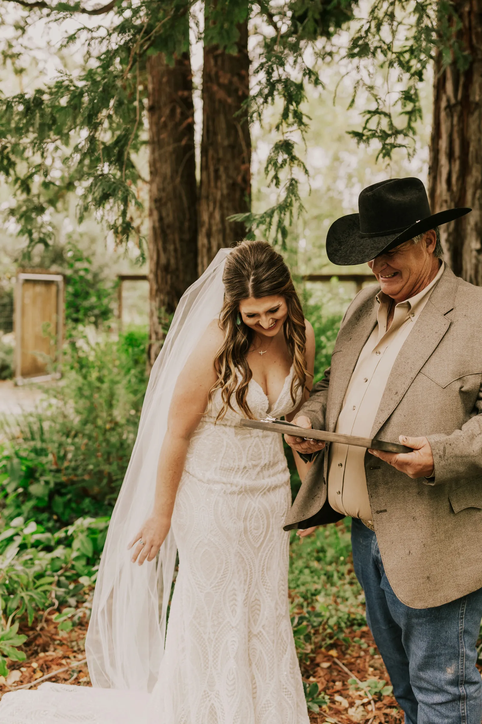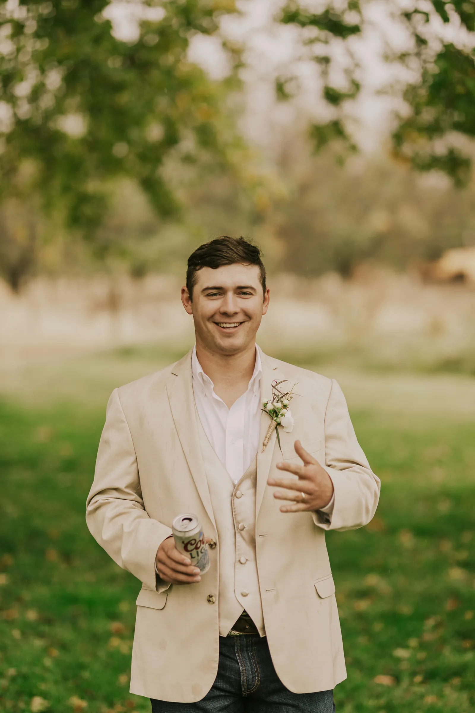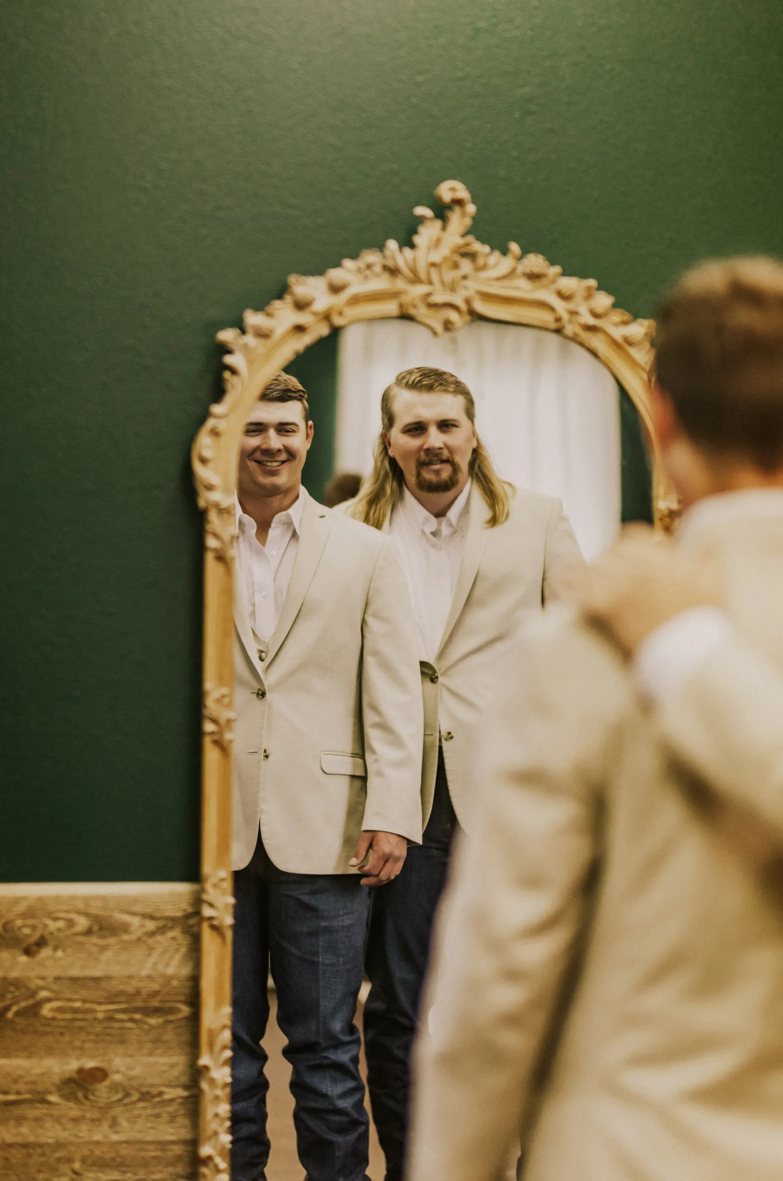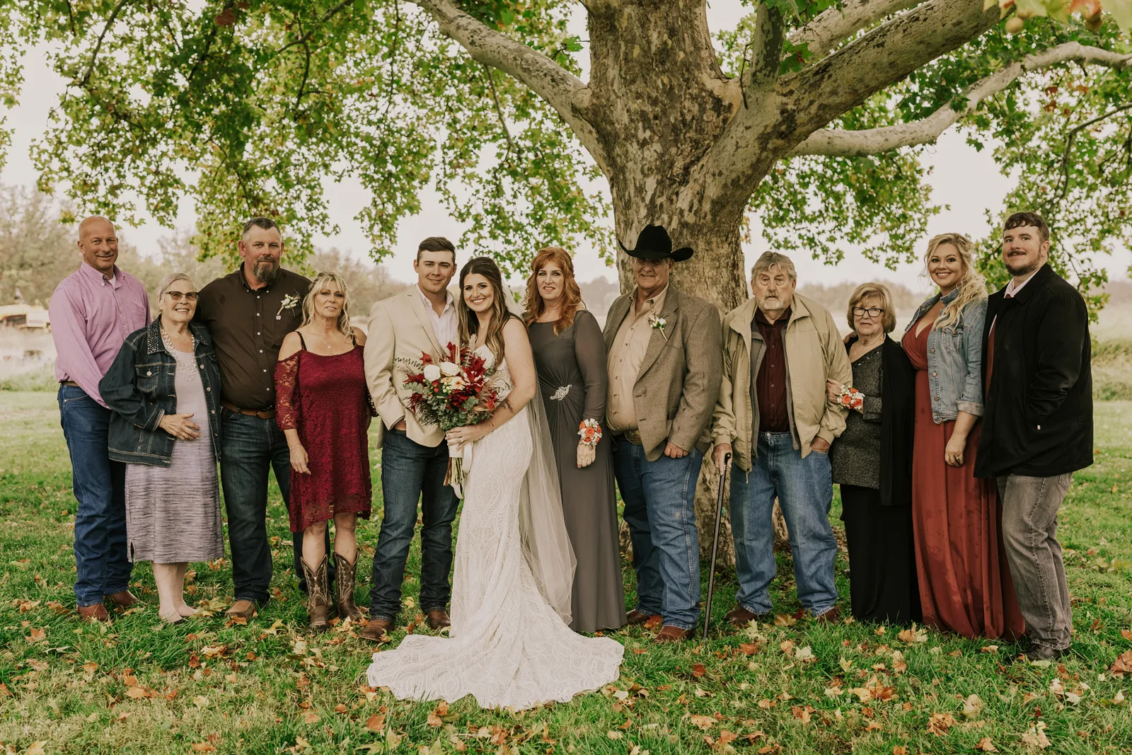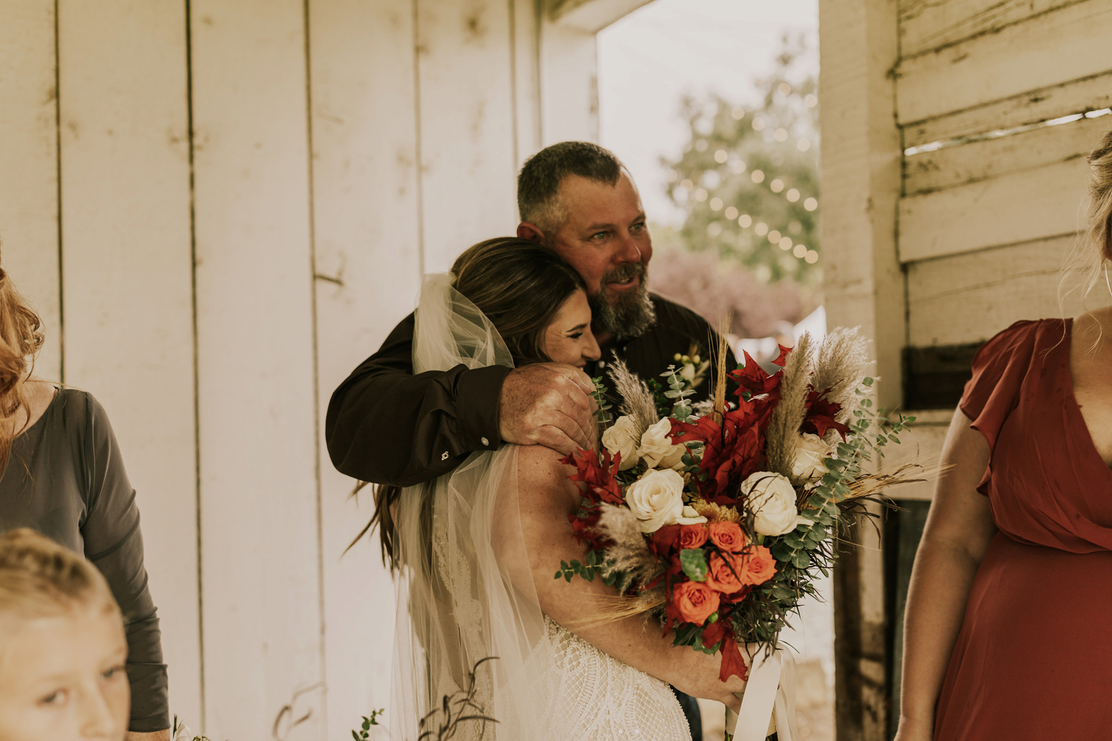 Happy Real Weddings Wednesday, everyone! We want to know, what’s a country wedding without cowgirl boots? Scroll below to read all about Bailey + Chris’s rustic ceremony full of jean jackets, heartwarming first-looks, and open back-gowns courtesy of Always Elegant Bridal & Tuxedo! Happy Wednesday, and happy reading!
