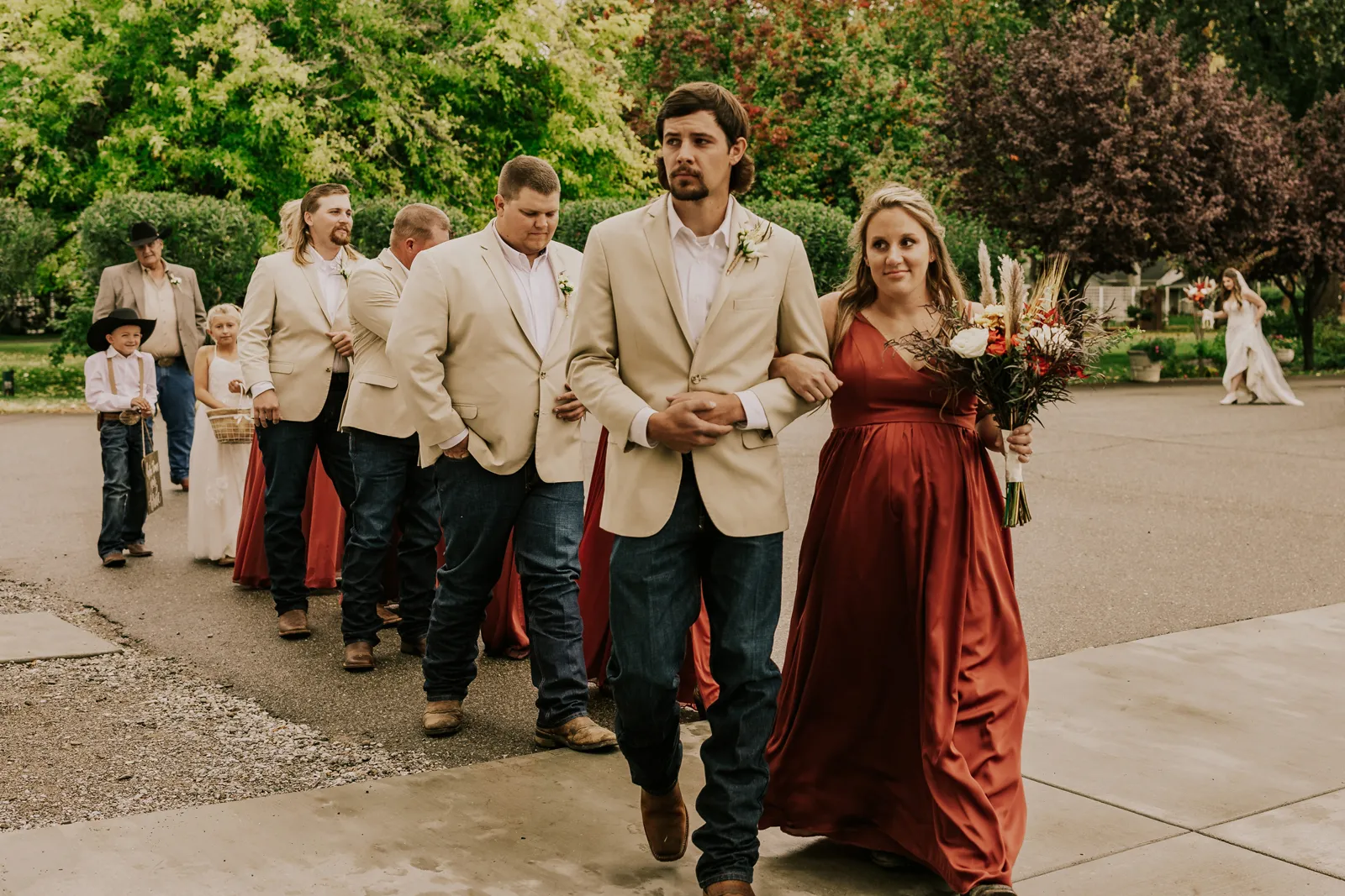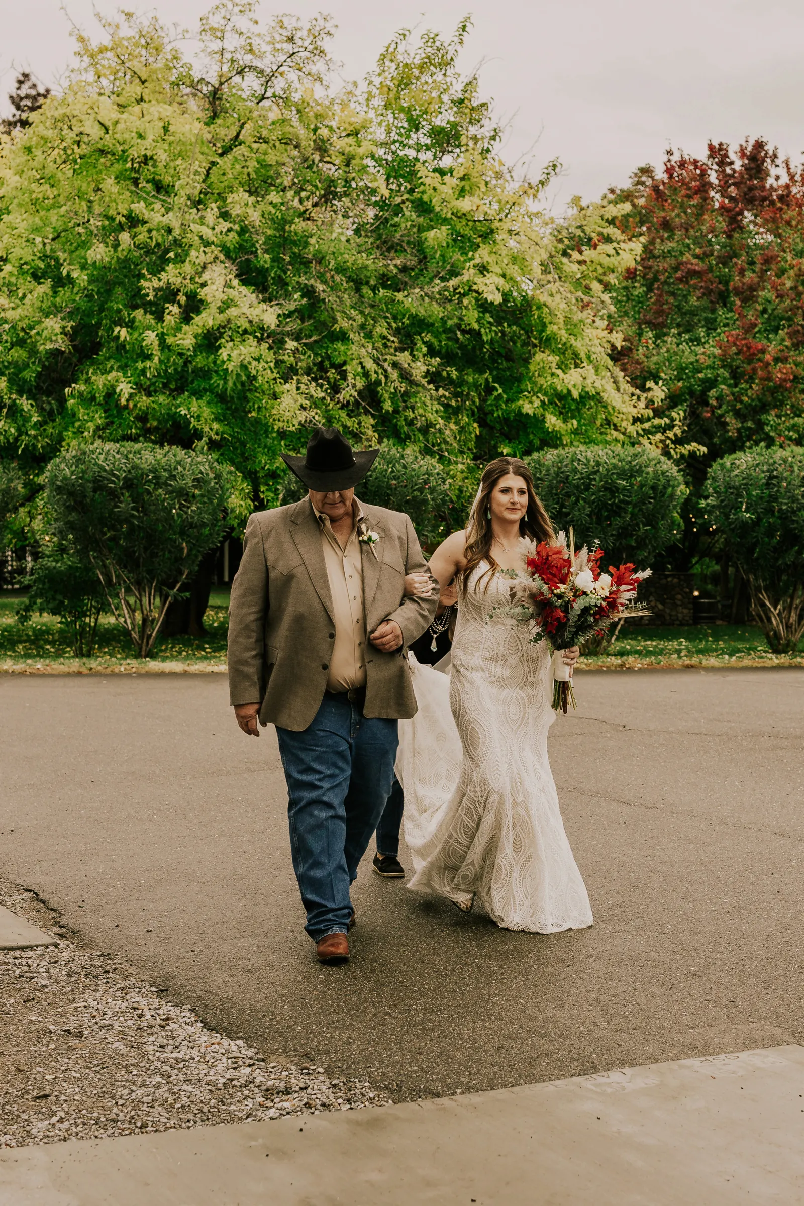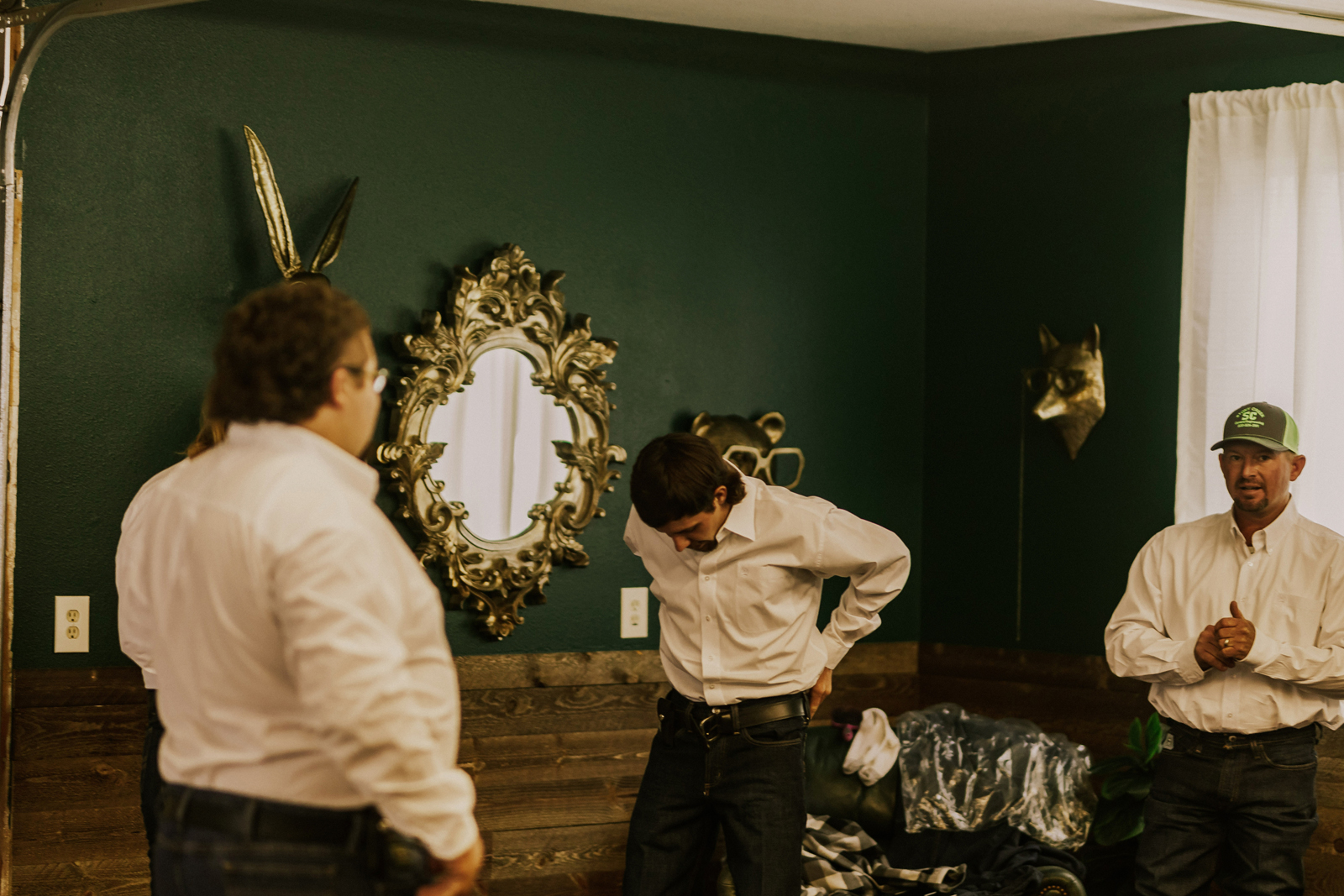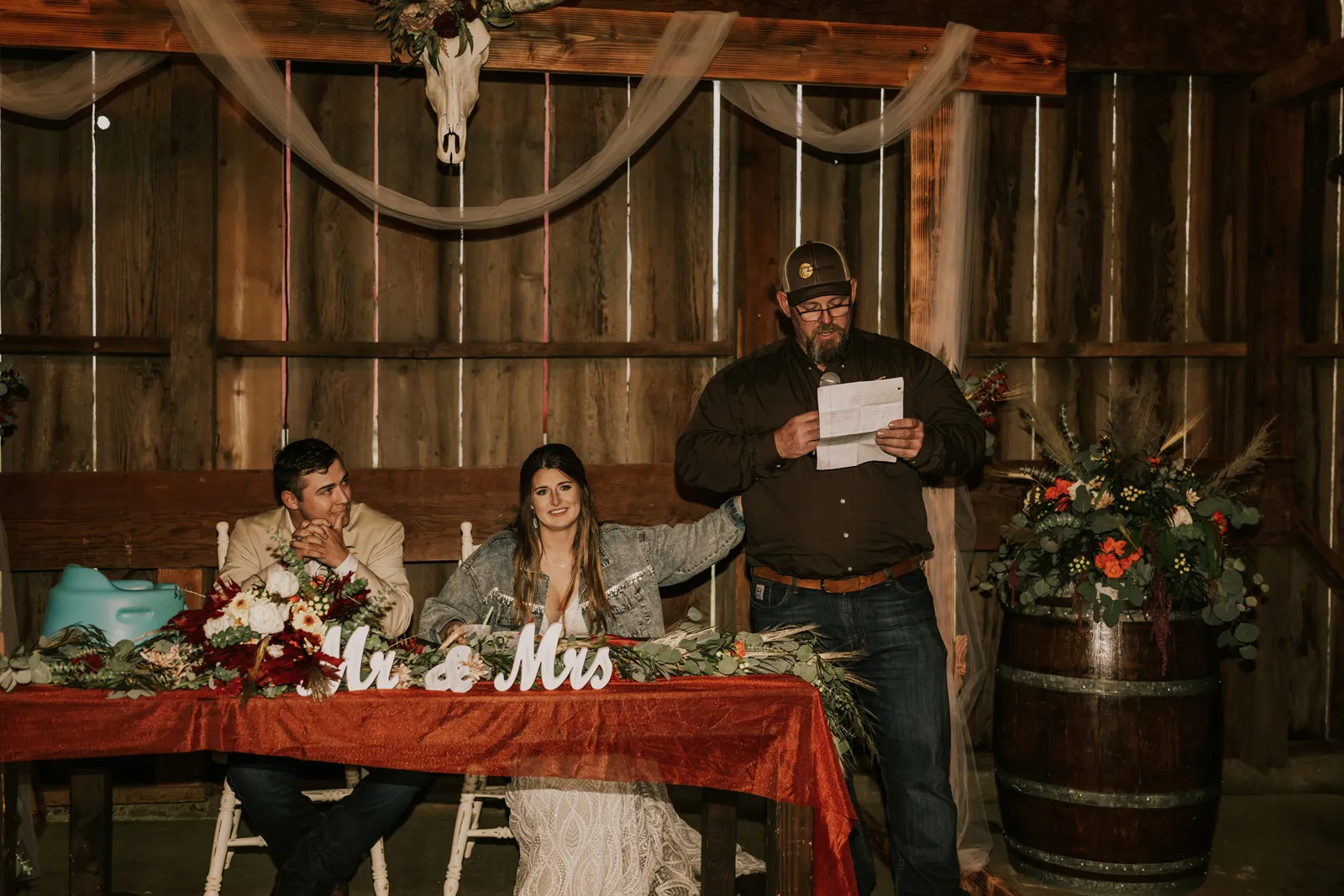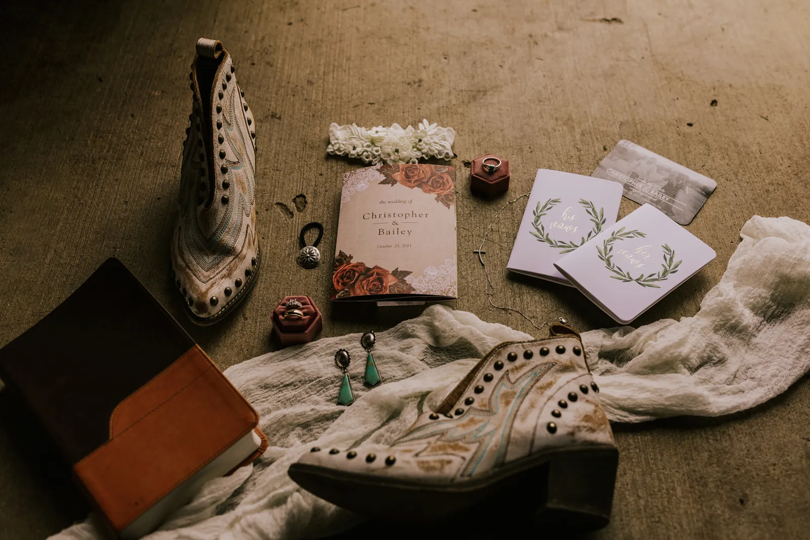 Happy Real Weddings Wednesday, everyone! We want to know, what’s a country wedding without cowgirl boots? Scroll below to read all about Bailey + Chris’s rustic ceremony full of jean jackets, heartwarming first-looks, and open back-gowns courtesy of Always Elegant Bridal & Tuxedo! Happy Wednesday, and happy reading!