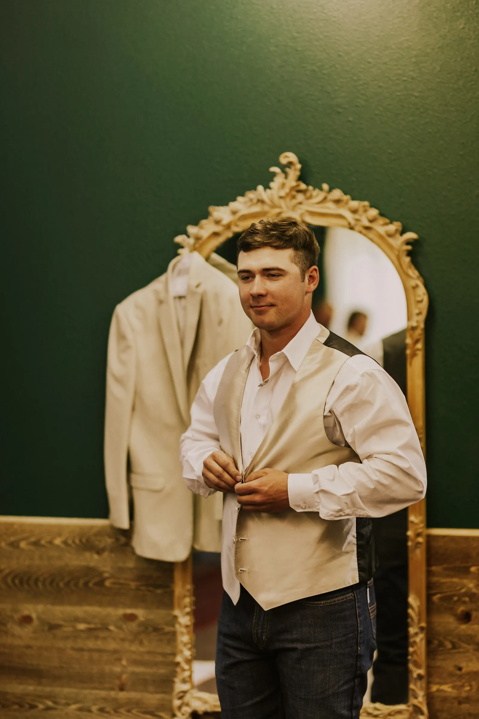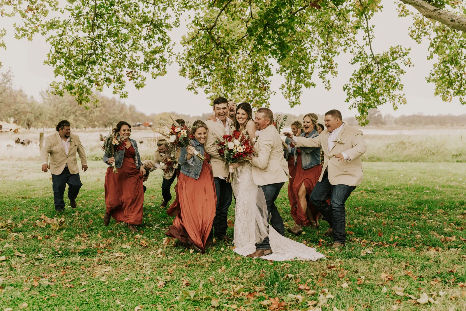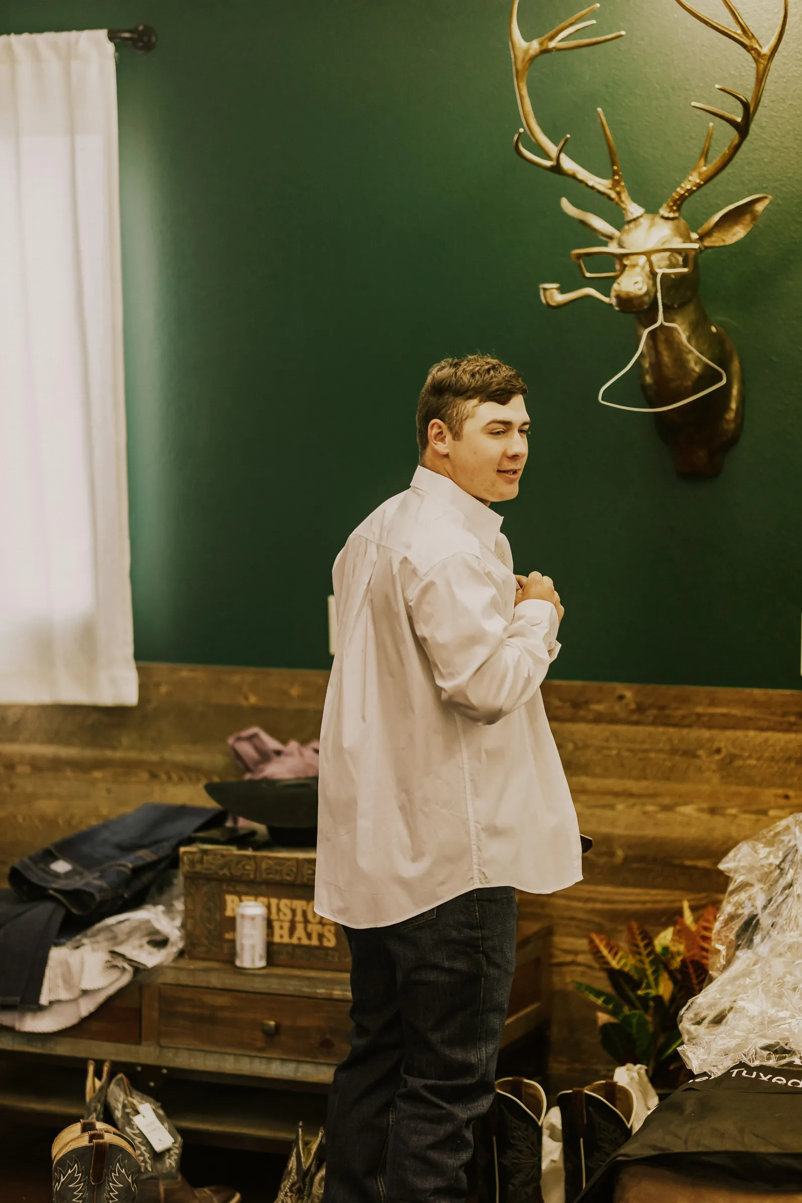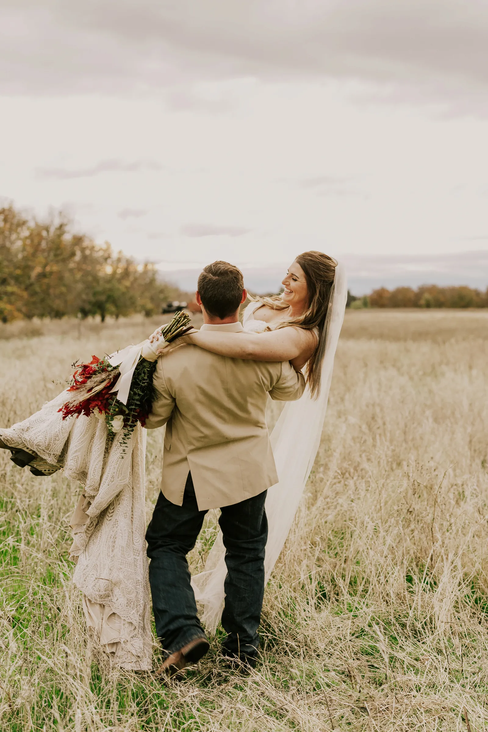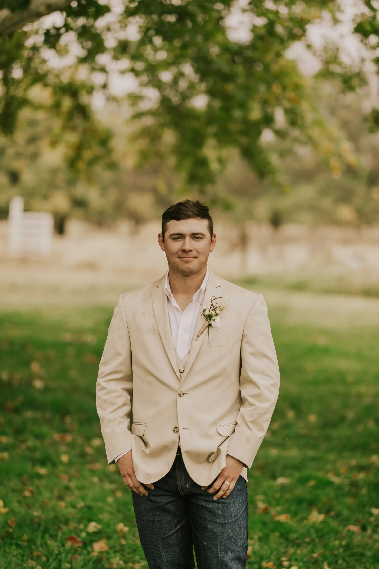 Happy Real Weddings Wednesday, everyone! We want to know, what’s a country wedding without cowgirl boots? Scroll below to read all about Bailey + Chris’s rustic ceremony full of jean jackets, heartwarming first-looks, and open back-gowns courtesy of Always Elegant Bridal & Tuxedo! Happy Wednesday, and happy reading!