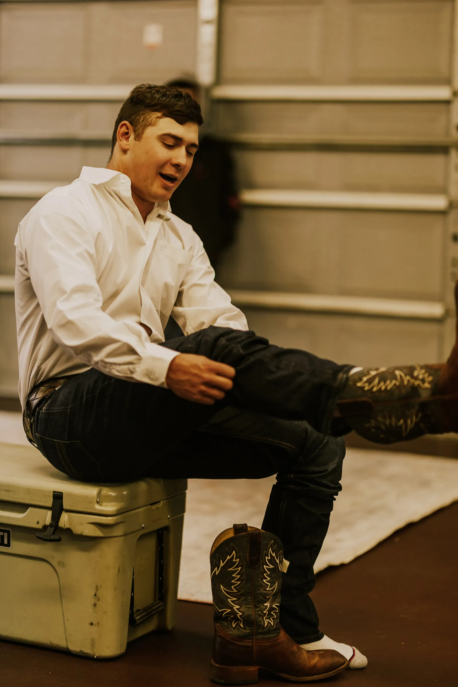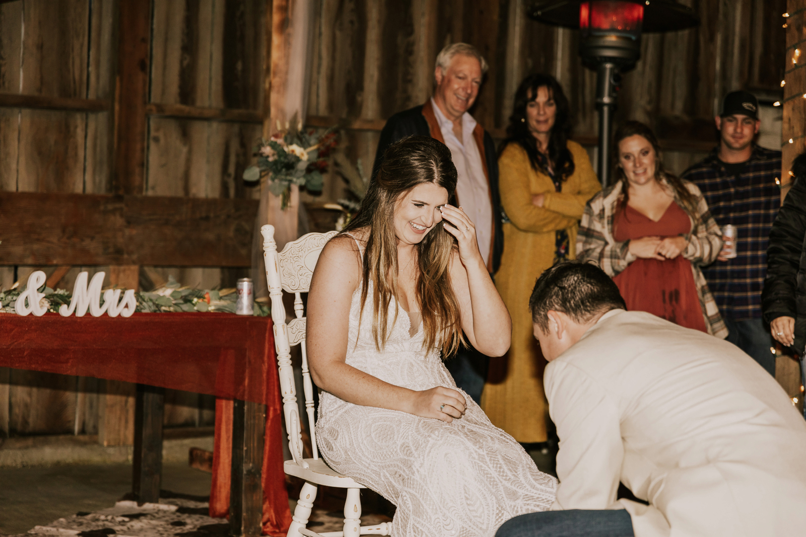 We met at 16 and 17 years-old at a rodeo Bailey was helping [out] at. Chris was only coming to the rodeo to pick up a friend to ride dirt bikes. We don’t share the same hobby but thankfully he came to the rodeo that day! Chris proposed while we were building fence on our property together with Baileys grandmothers ring.