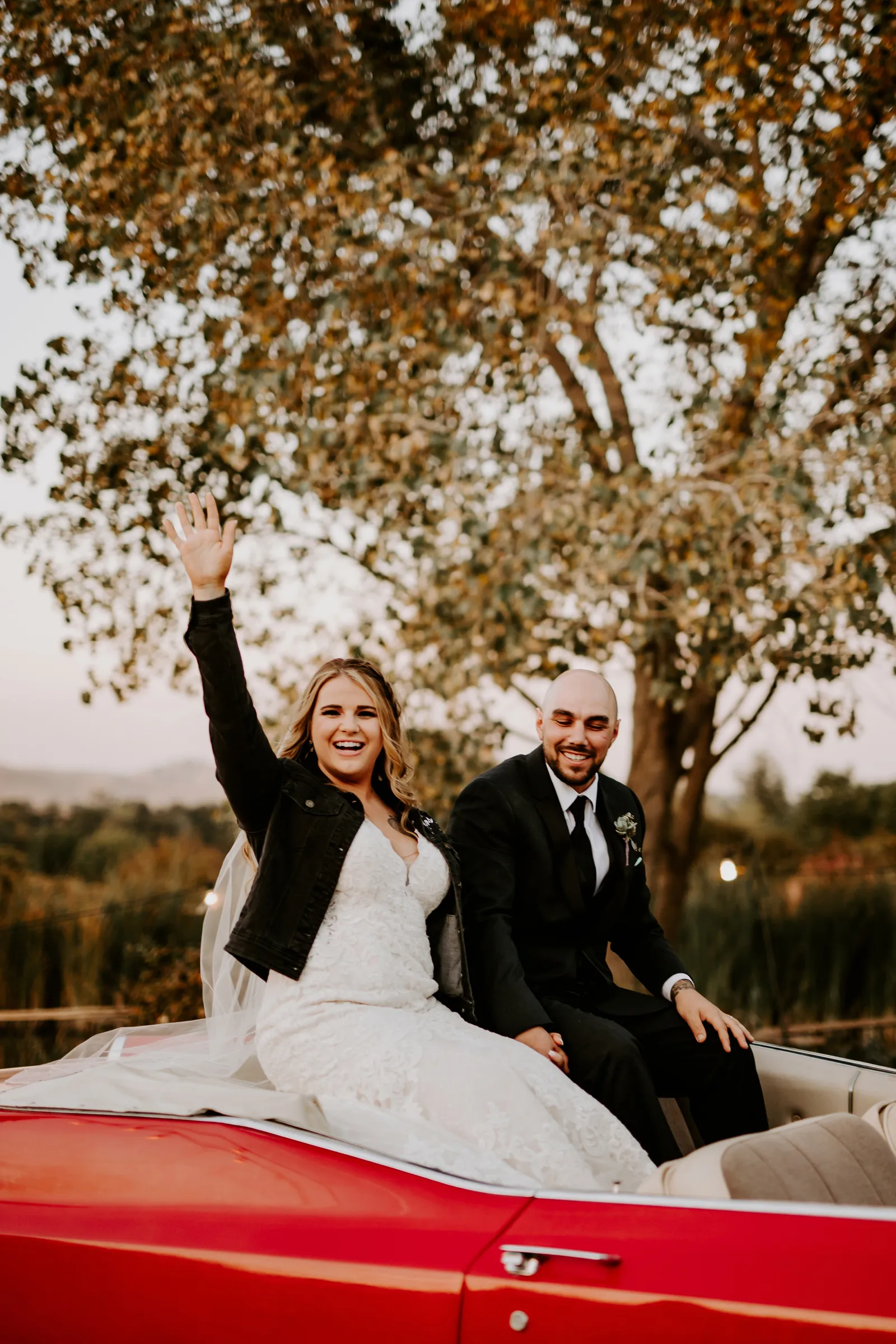 Good afternoon, everybody, you know the drill! It’s Real Weddings Wednesday, and we have a beautiful ceremony ready for you! Today, we’re celebrating Becca + Kyle’s elegant ranch wedding with a cherry red classic car, beautiful flowers courtesy of Strelitzia Flower Company, fun times in the photobooth, and of course, lots and lots of love — captured by the fabulous James Young Photography. This is one wedding you won’t want to miss out on. Happy reading everyone!