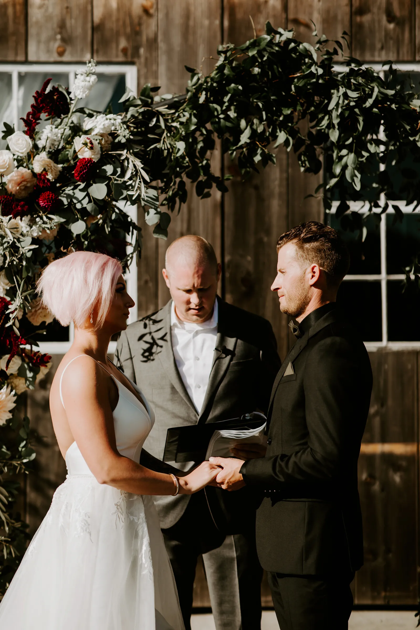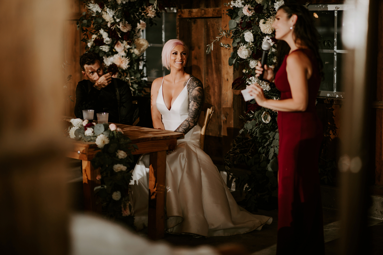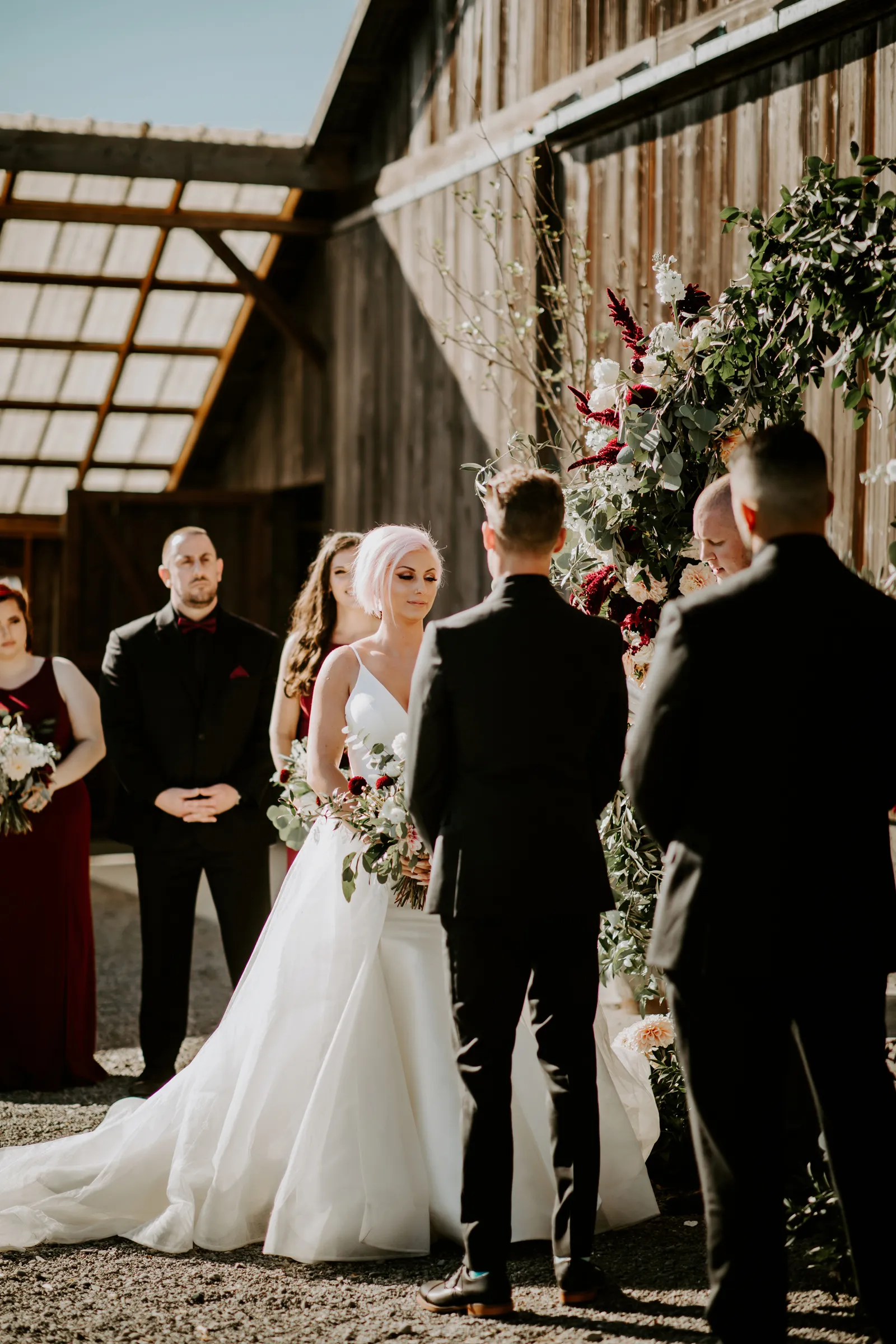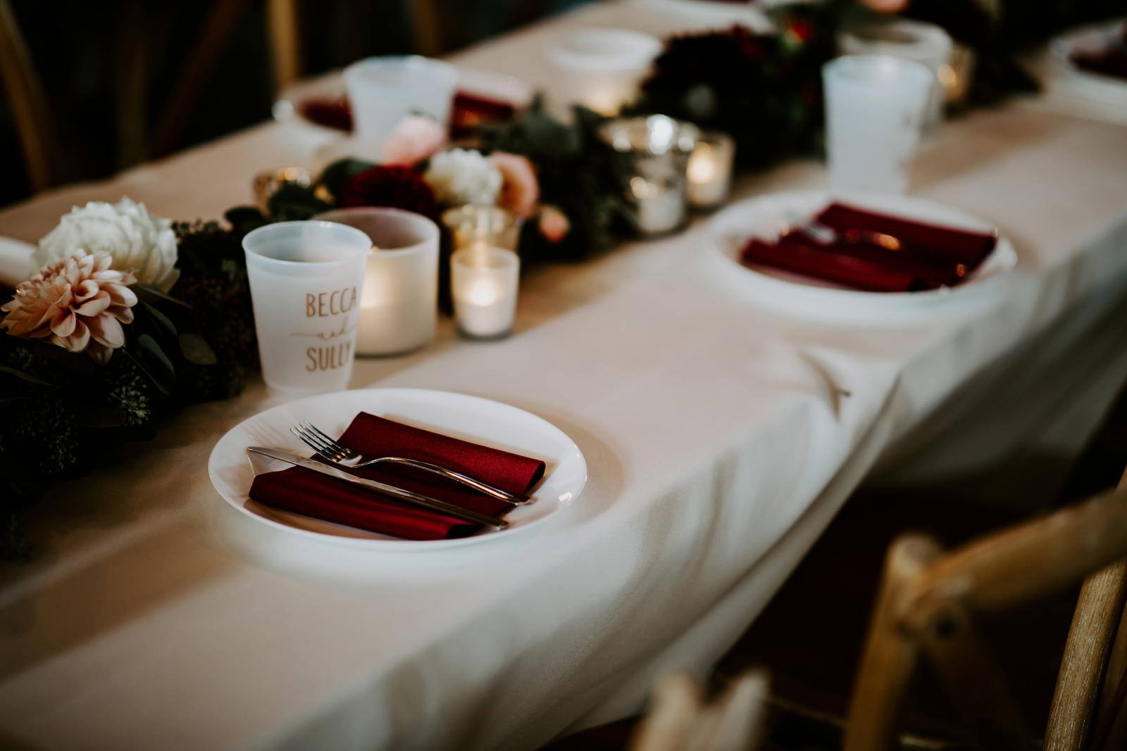 Happy Real Weddings Wednesday everybody! And – happy November! We hope your day is full of joy and love, just like today’s stunning Real Wedding featuring Becca + Sully! With ethereal forest photography, this wedding is bound to capture your attention! Read on for stunning wine-red florals, adorable sweet treats, and an intimate First Look!