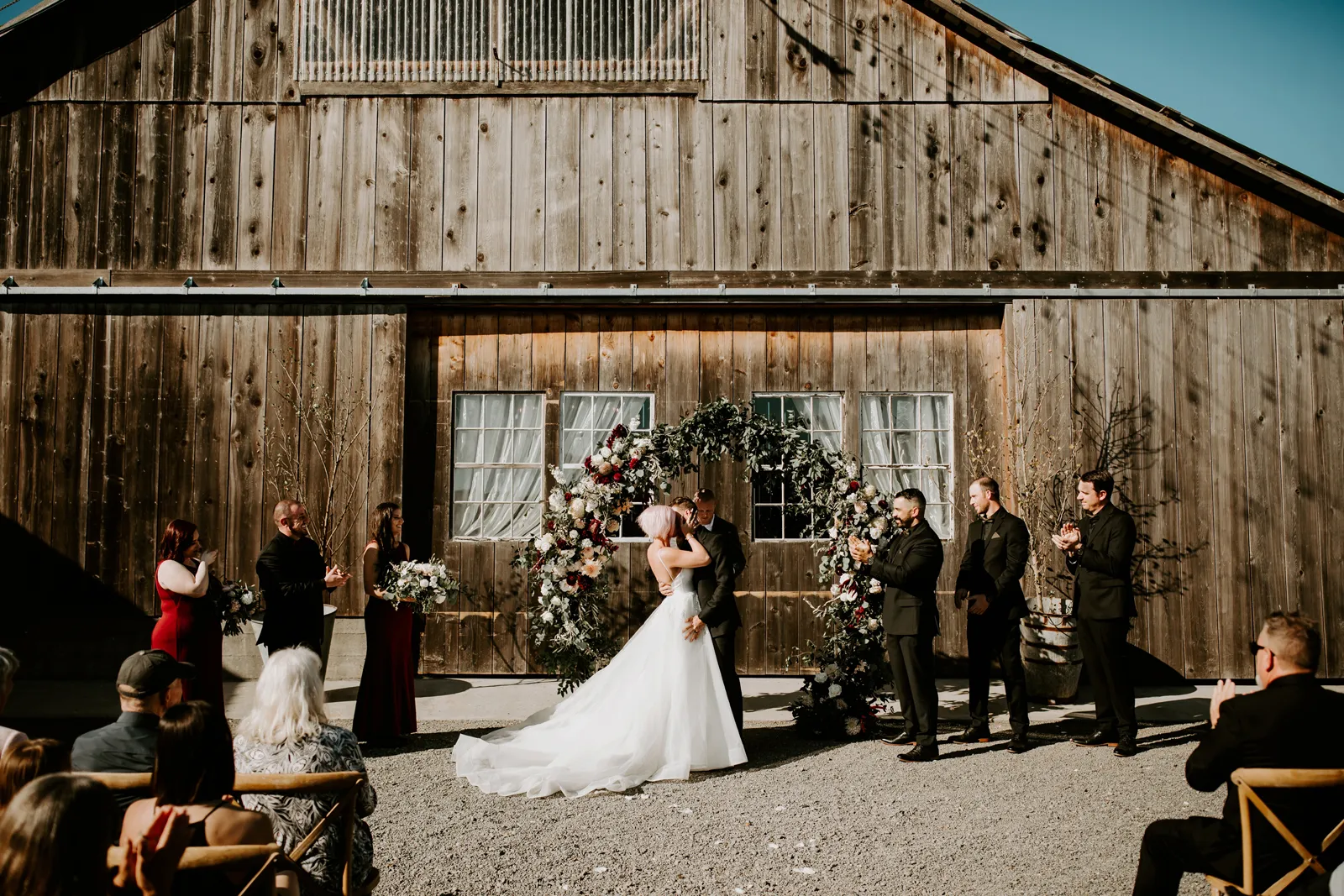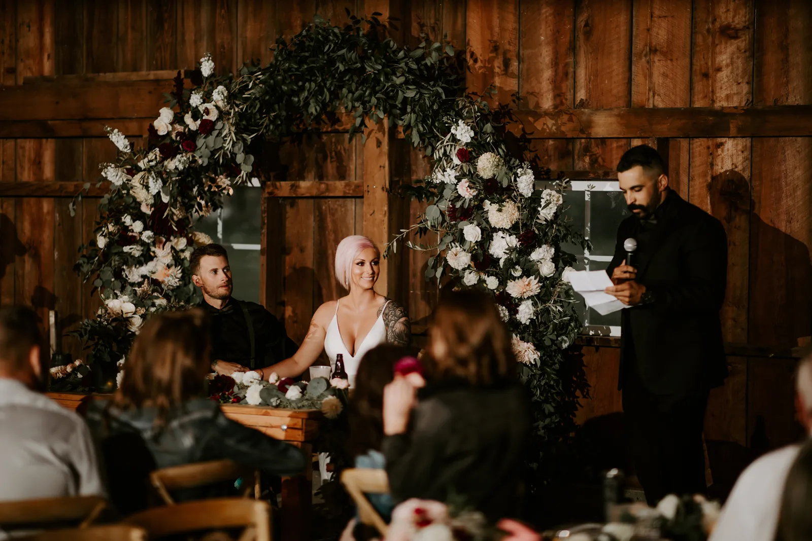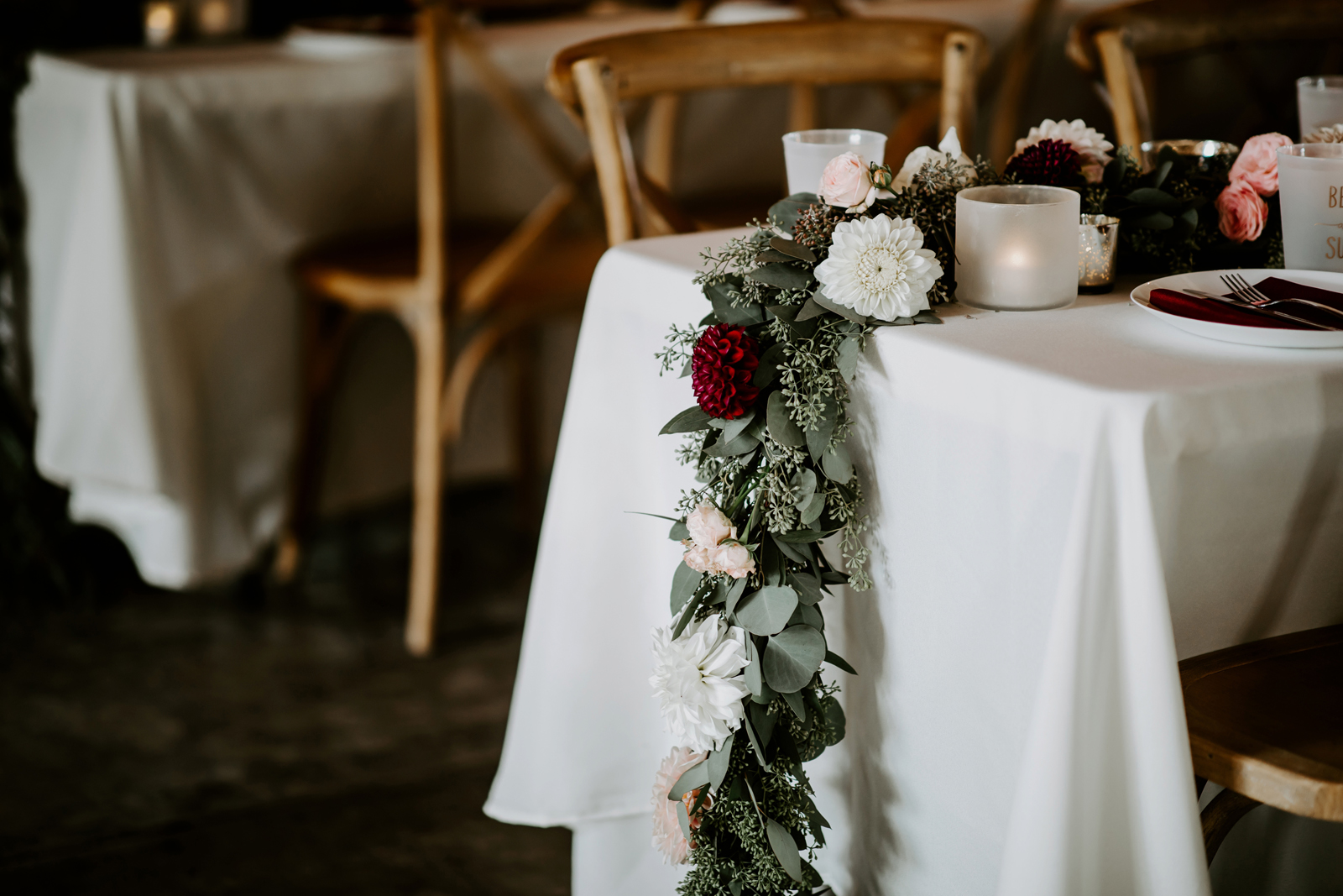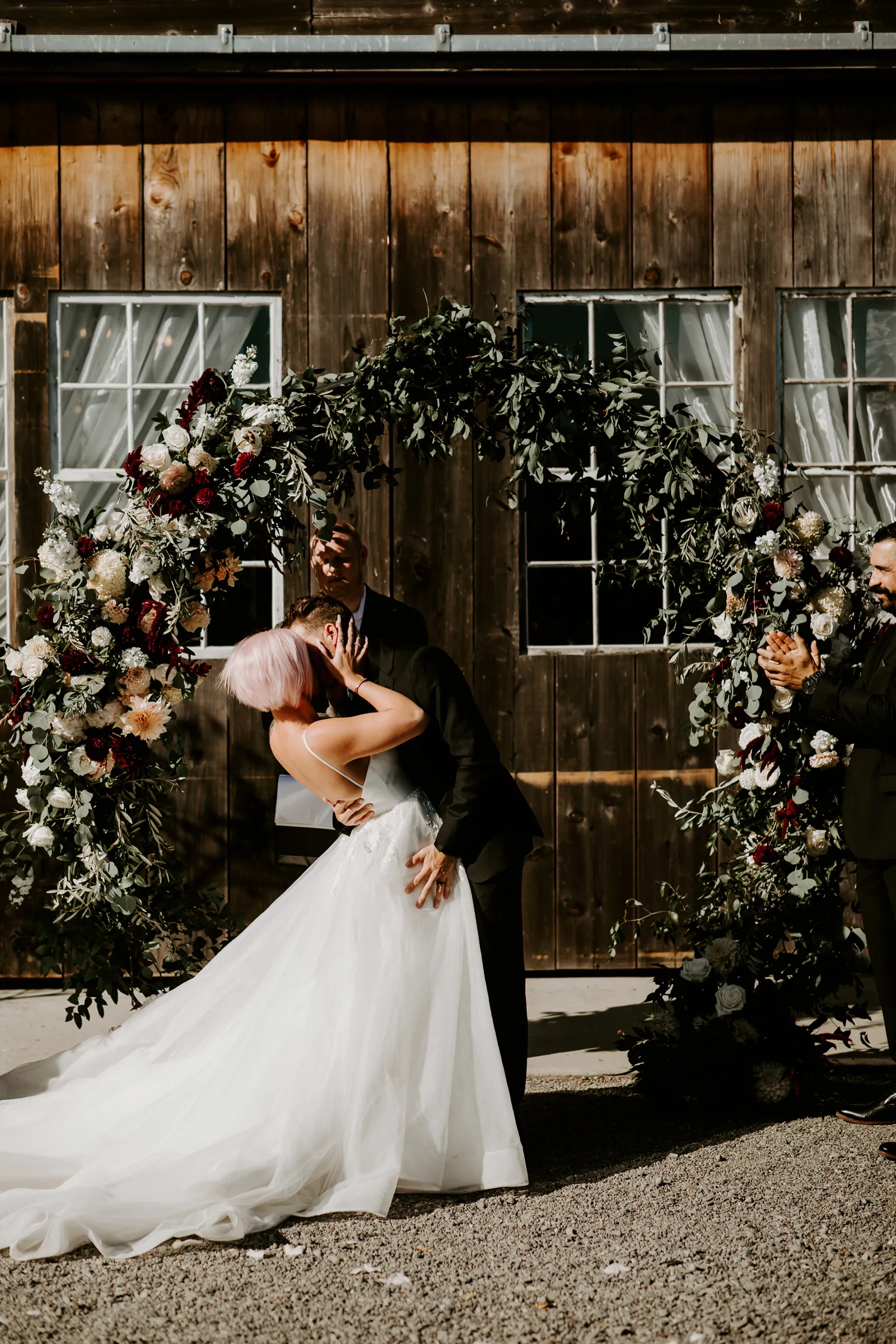 Happy Real Weddings Wednesday everybody! And – happy November! We hope your day is full of joy and love, just like today’s stunning Real Wedding featuring Becca + Sully! With ethereal forest photography, this wedding is bound to capture your attention! Read on for stunning wine-red florals, adorable sweet treats, and an intimate First Look!