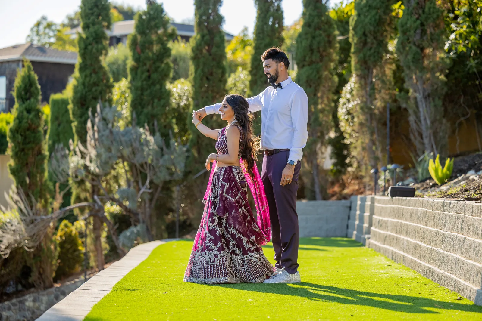 On September 14th, 2016, Ronnie and Cece met by chance at the Infusion Lounge in San Francisco, where Ronnie tragically lost his phone. Cece couldn’t help but notice the panic in his eyes, so she decided to walk over to help him in his search. They searched for his phone all night until the club lights came on. After failure to find his phone, they exchanged contact info and kept in touch. With such busy lifestyles, they sent the occasional message to check in and have a few dinners here and there. It wasn’t until we entered a global pandemic, Ronnie and Cece were forced to slow down their crazy work schedules. Ronnie and Cece decided to catch up over lunch in the Bay Area on November 13th, 2022. They were able to talk to each other without any distractions and saw how much their views and aspirations aligned — they realized they might just be meant for each other. They pursued a relationship and shared memories, laughs, food, and drinks together. Ronnie even found himself picking up on Cece’s habits. For example, Ronnie is now an Amazon guru and can’t enjoy a meal without a diet coke. Cece’s has also picked up on some of Ronnie’s habits. For example, she is keeping every 7/11 in the area in business because of her new Slurpee addiction. Cece has always been a big Disney fan. She admires how Disney believes that no dream is too big and anything is possible. Ronnie and Cece would watch Disney movies throughout their relationship and a great idea struck Ronnie. On September 14th, 2021 (exactly five years after they had met) Ronnie took Cece to Disneyland where he got down on one knee and asked her to marry him! After the engagement, they immediately got to wedding planning. They knew they wanted an extraordinary wedding that their guests could enjoy. Ronnie and Cece started to think about a traditional week long wedding incorporating their religions and cultures and that’s how they settled on having a seven day wedding!