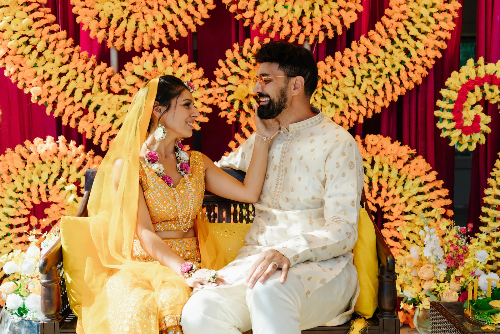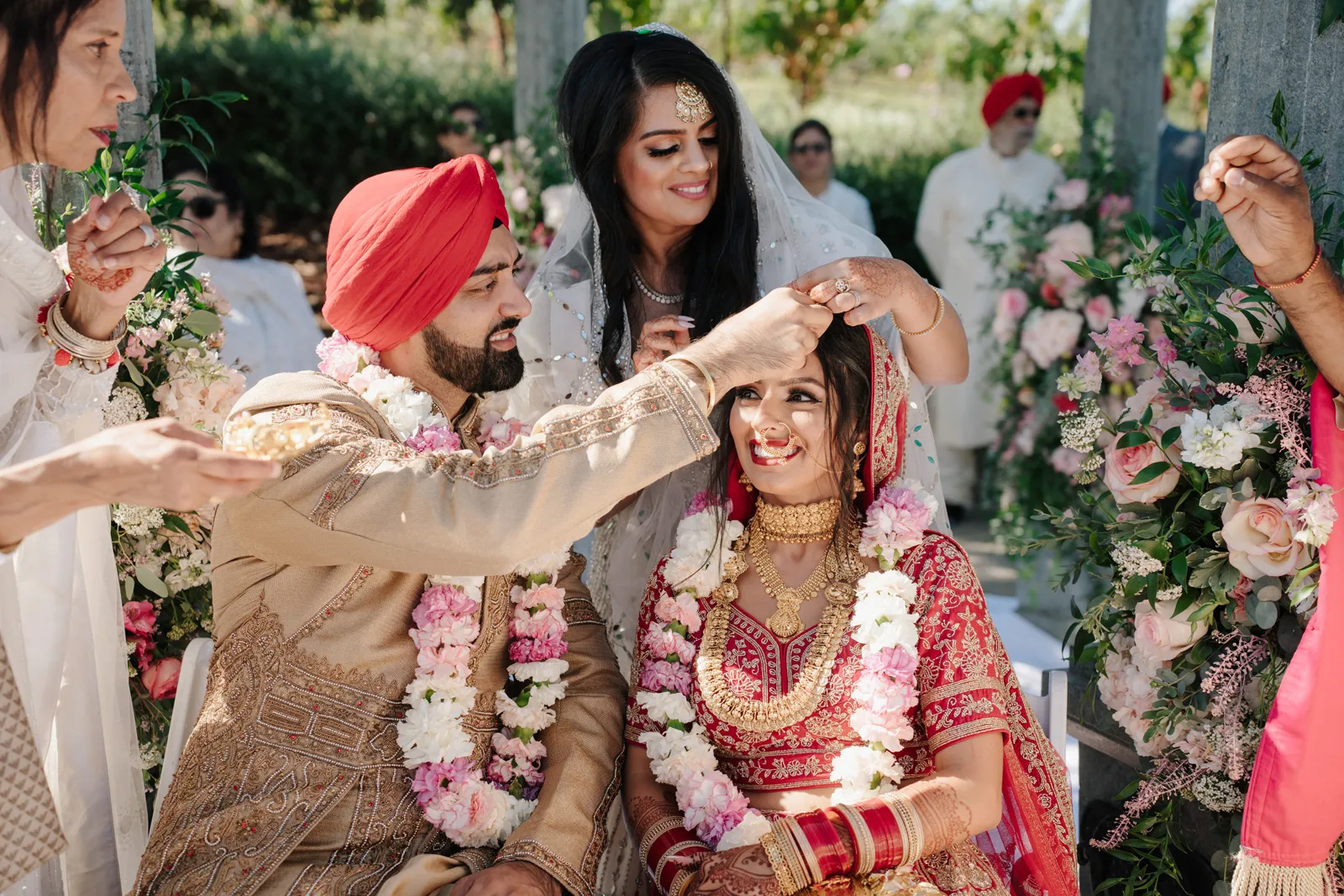 Good afternoon, everyone and happy Real Weddings Wednesday! We have a real treat for you all today as we celebrate Chanchal + Ronnie’s beautiful, seven day wedding! With intricate and jaw-dropping saris, stunning venues, and bright and elegant ceremonies that envelop both their cultures and religion, this is one wedding you won’t want to miss. Happy reading!