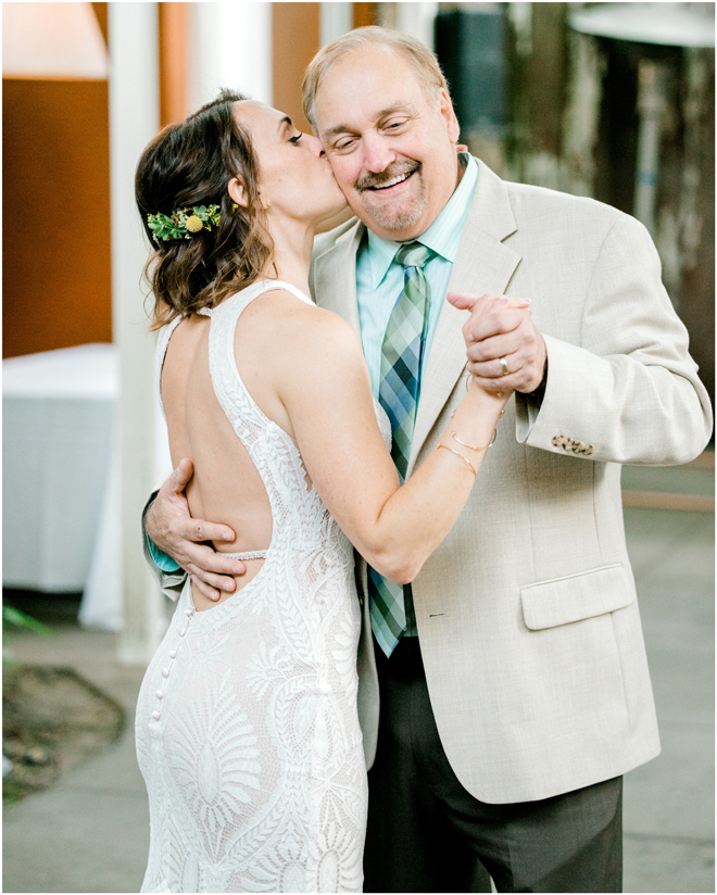 Any advice you’d give to our readers who are planning their weddings right now? Keep it small if you can. It took a few weeks of research and communication to find the right location that suited our needs, but it ended up being perfect. Our guests loved our location, casual seating, having appetizers for dinner and playing corn hole (which also served as our guest ‘book’). We simplified things and in the end it was less stress and planning than the average wedding. Along with a big savings!