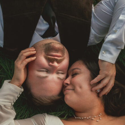 We met at 14, we were always in similar groups together, we also found out we were neighbors during that time, he lived two doors down, it never was intentional about pursing each other until we were about 16, he started making a clear effort towards me and I rejected him about a year into us talking cause, but then I knew a week after I didn’t want to live without my best friend. So I asked him to come over and the rest is history, we dated for three years before he proposed to me at an Ice rink in the mountains. It was Christmas time and it was just our friends in the rink, with lights all around us, it was perfect.