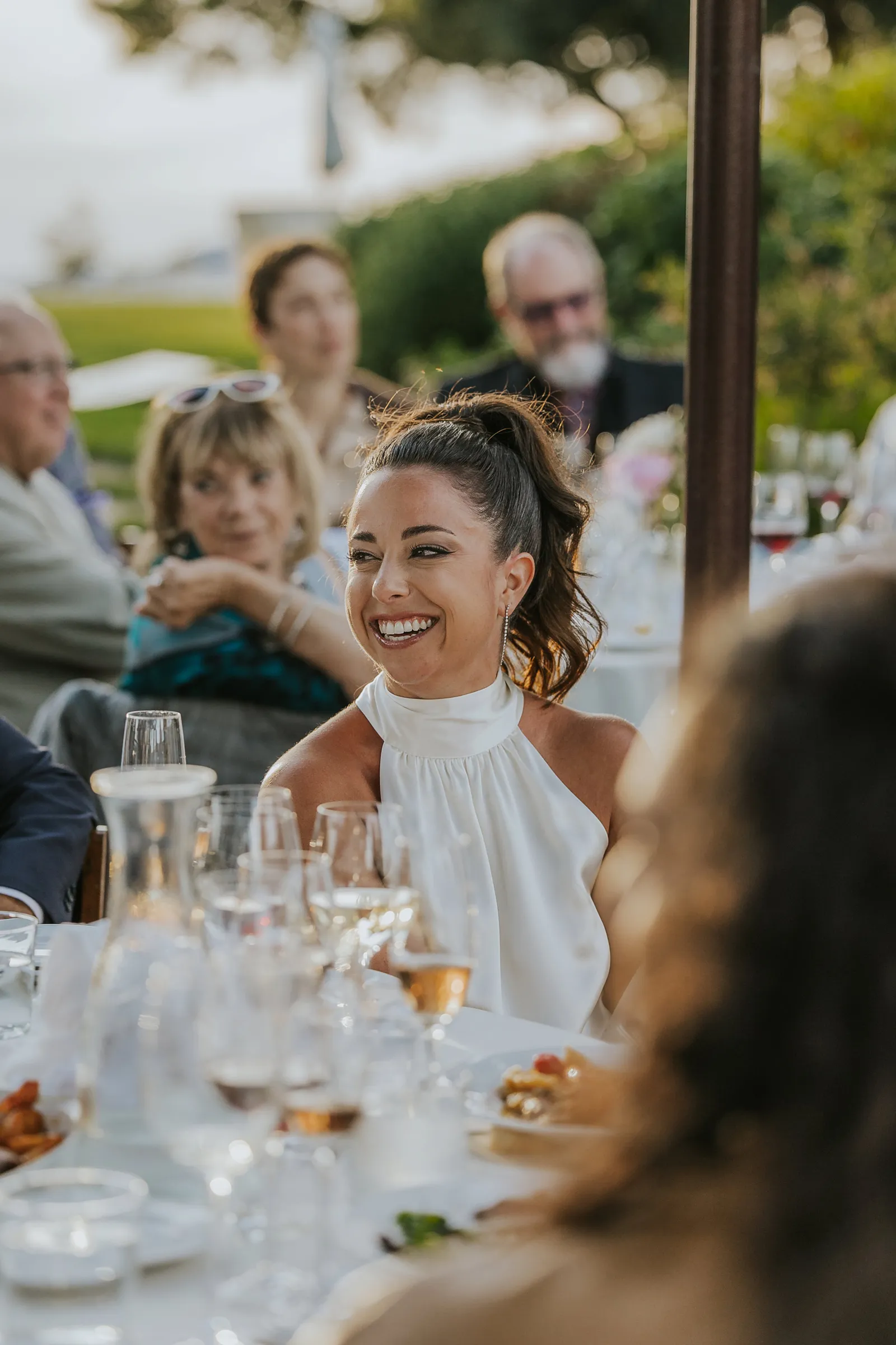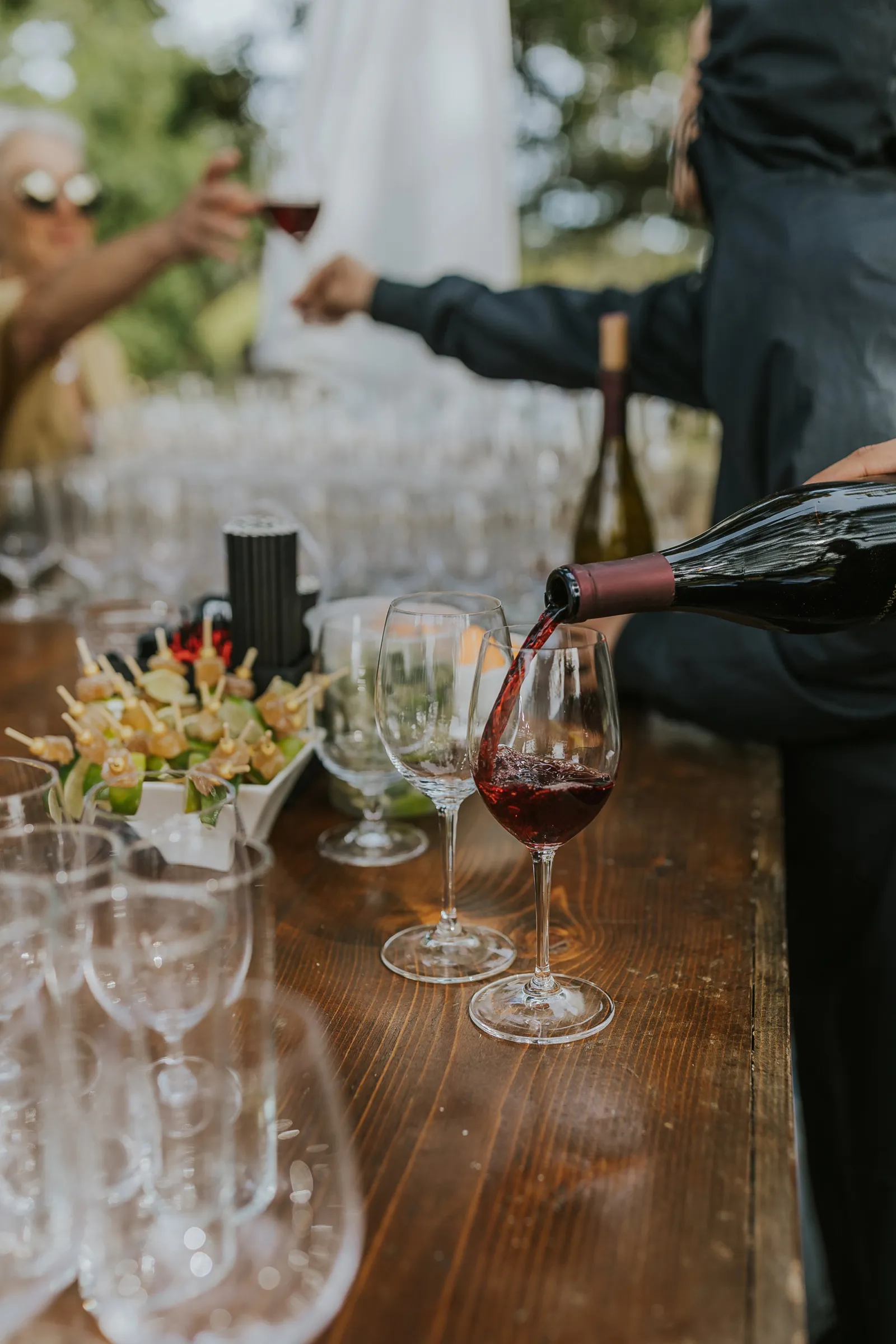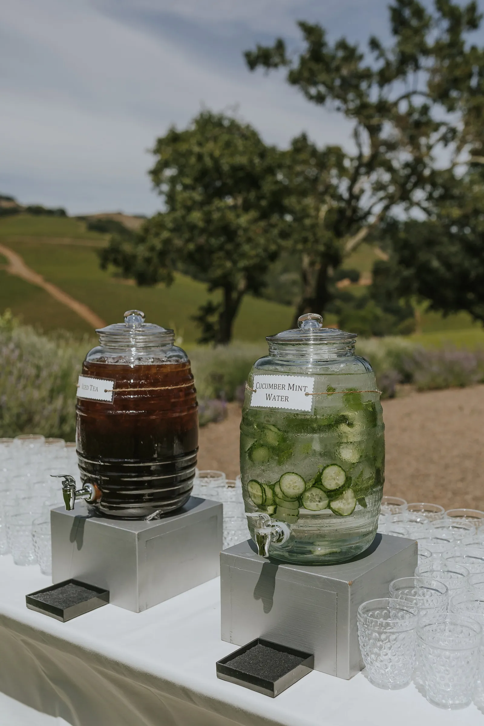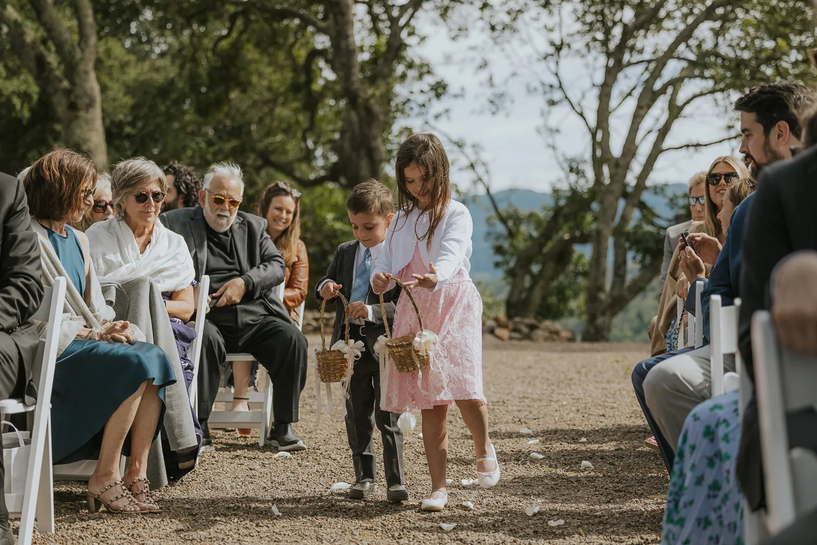 We met at work in 2014, became close friends, and in 2016 at the BottleRock festival Stevie Wonder decided to play a riff on “I Want to Hold Your Hand” asking everyone to hold hands. We couldn’t disobey one of our icons, and we’ve been together ever since. In 2021, while at a swimming hole on the Tuolumne River in Yosemite with some of our favorite people, we looked at each other and said “Should this be our engagement?”. Our planning for the wedding was always based around that special summertime Sonoma-at-dusk vibe. We pulled it off with incredible soul music, family-style seasonal gems for dinner, a gelato cart, wine from Daniella’s dad’s winery, glam and attire that made us feel like “us”, and minimal peonies-only florals to emphasize being in the stunning vineyard.
