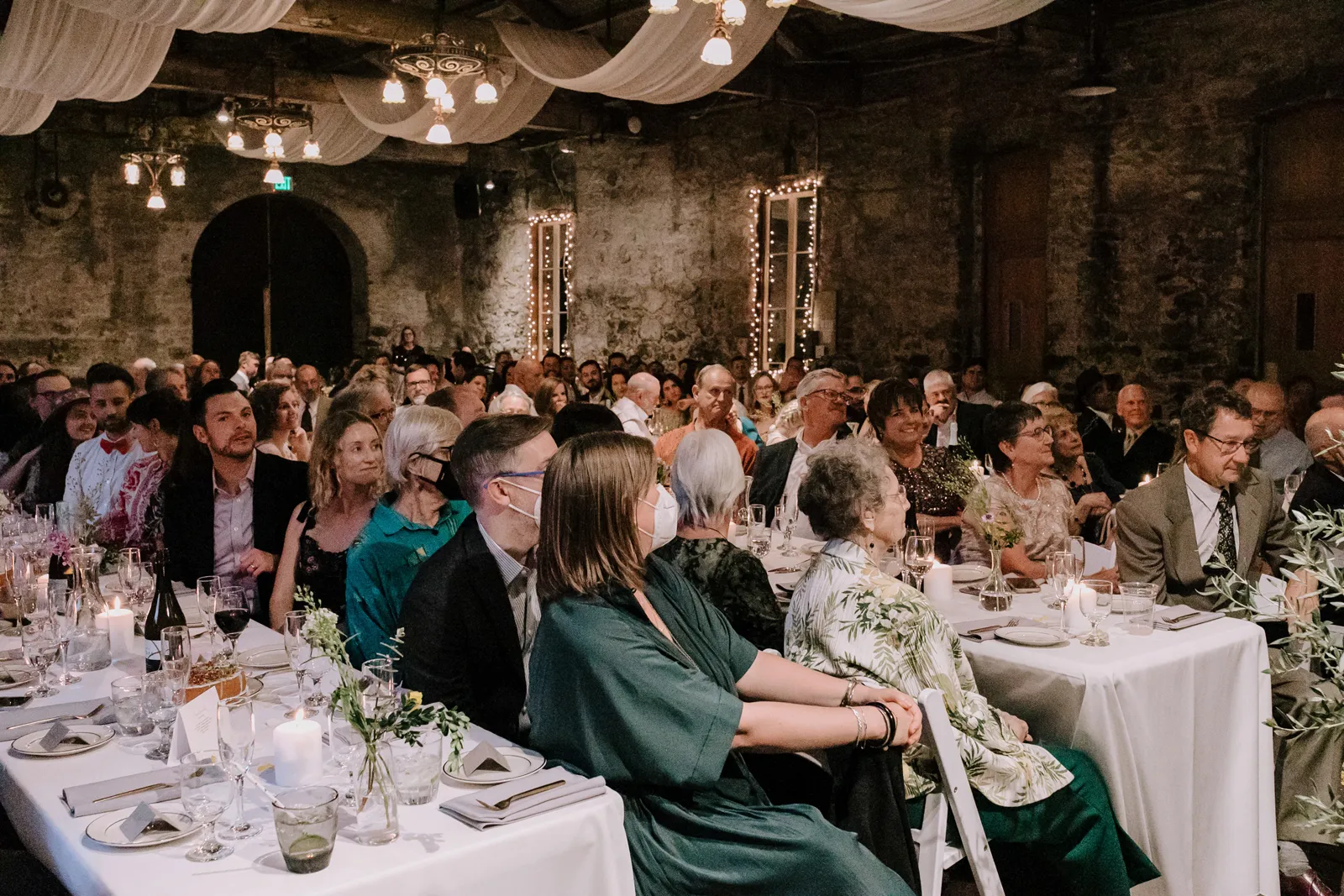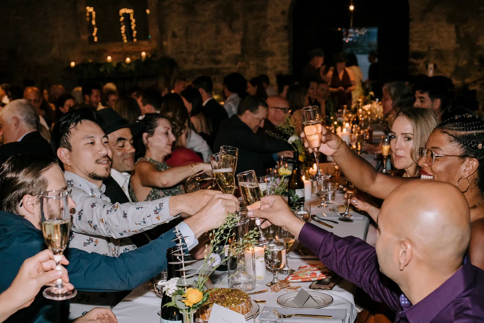 Happy Real Weddings Wednesdays, folks! Today, we’re celebrating Elyna and Chris’s beautiful indoor ceremony complete with tons of dancing, gorgeous champagne gowns and stunning photography – courtesy of Azara Images! Keep scrolling to read all about it. Happy Wednesday, and happy reading!