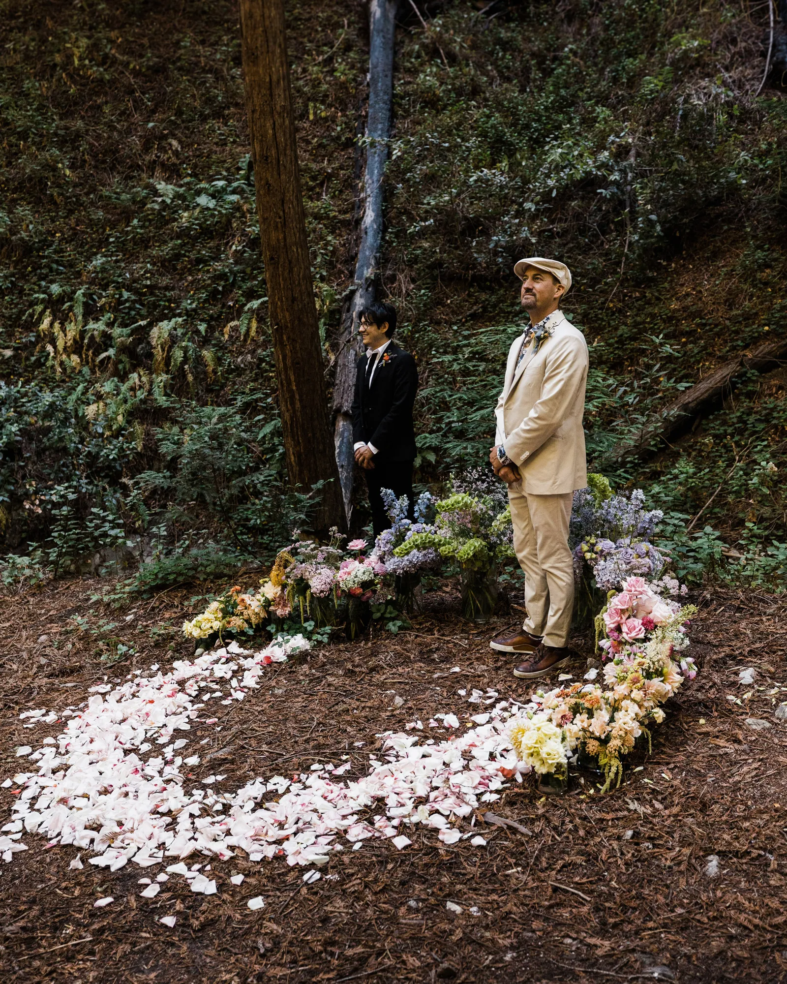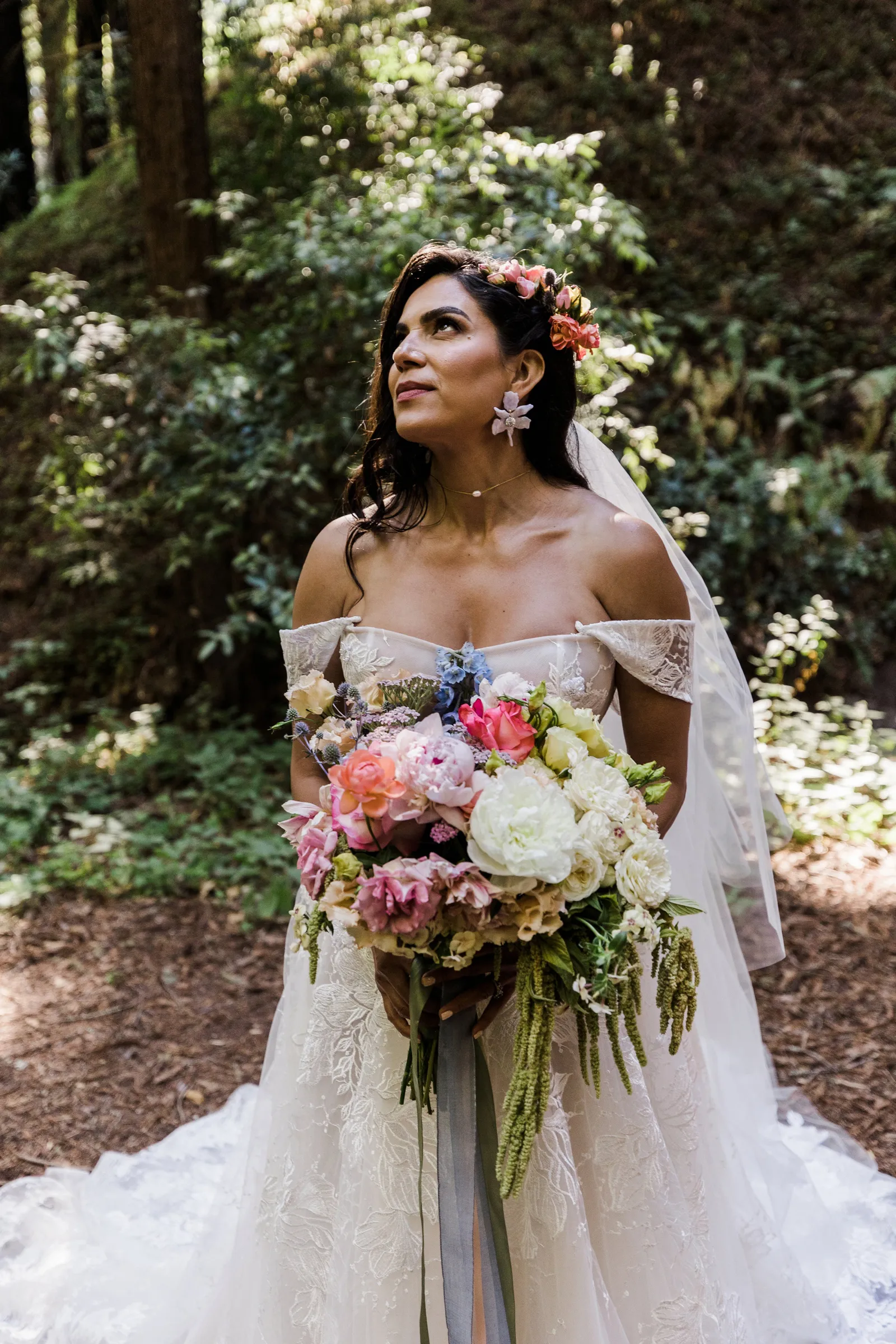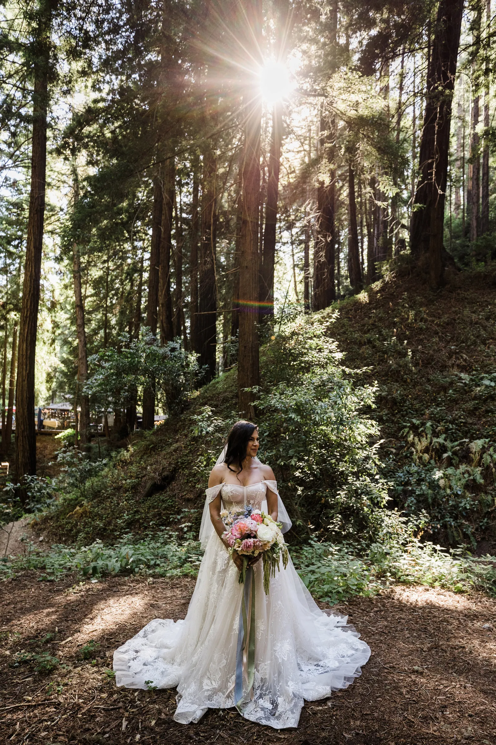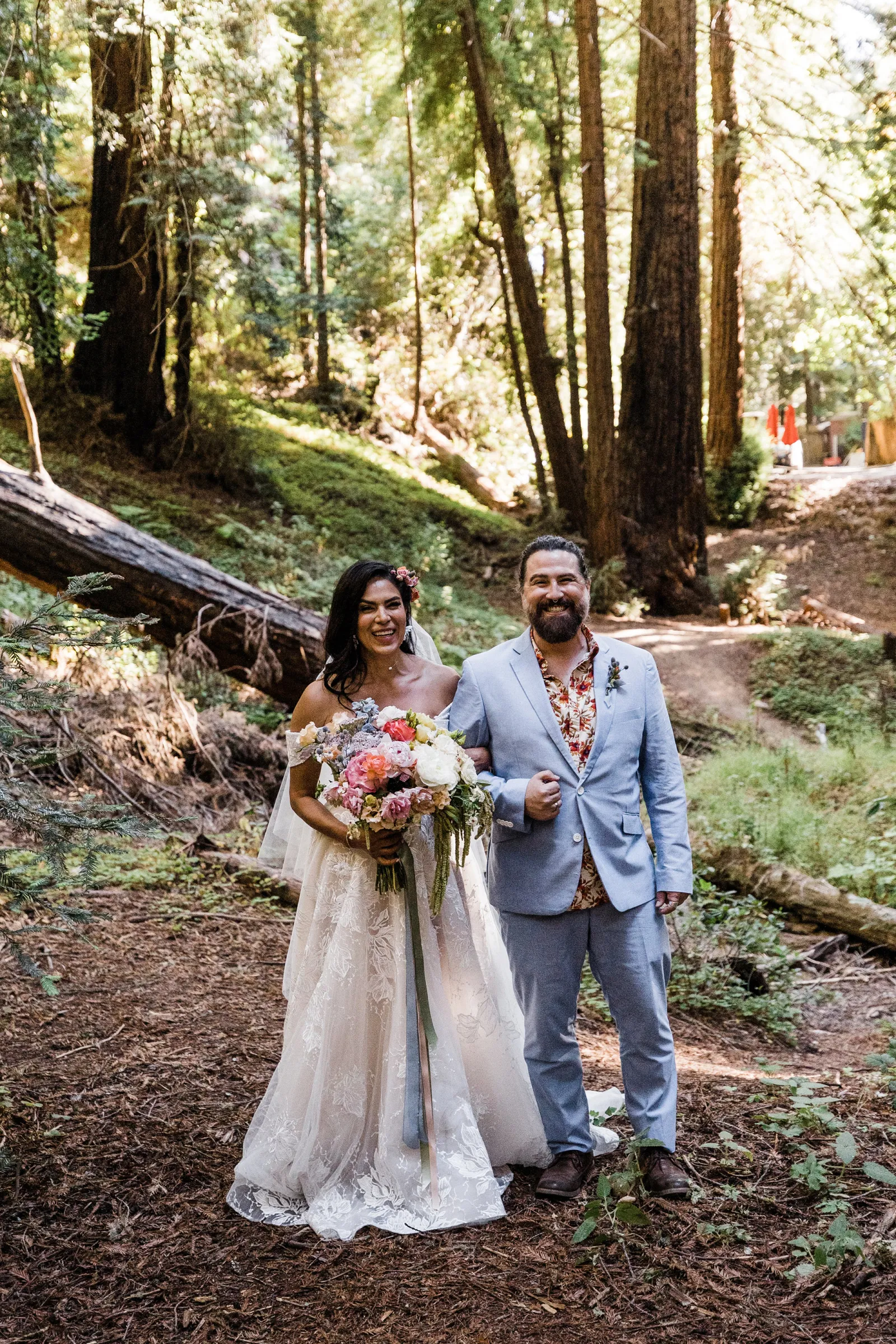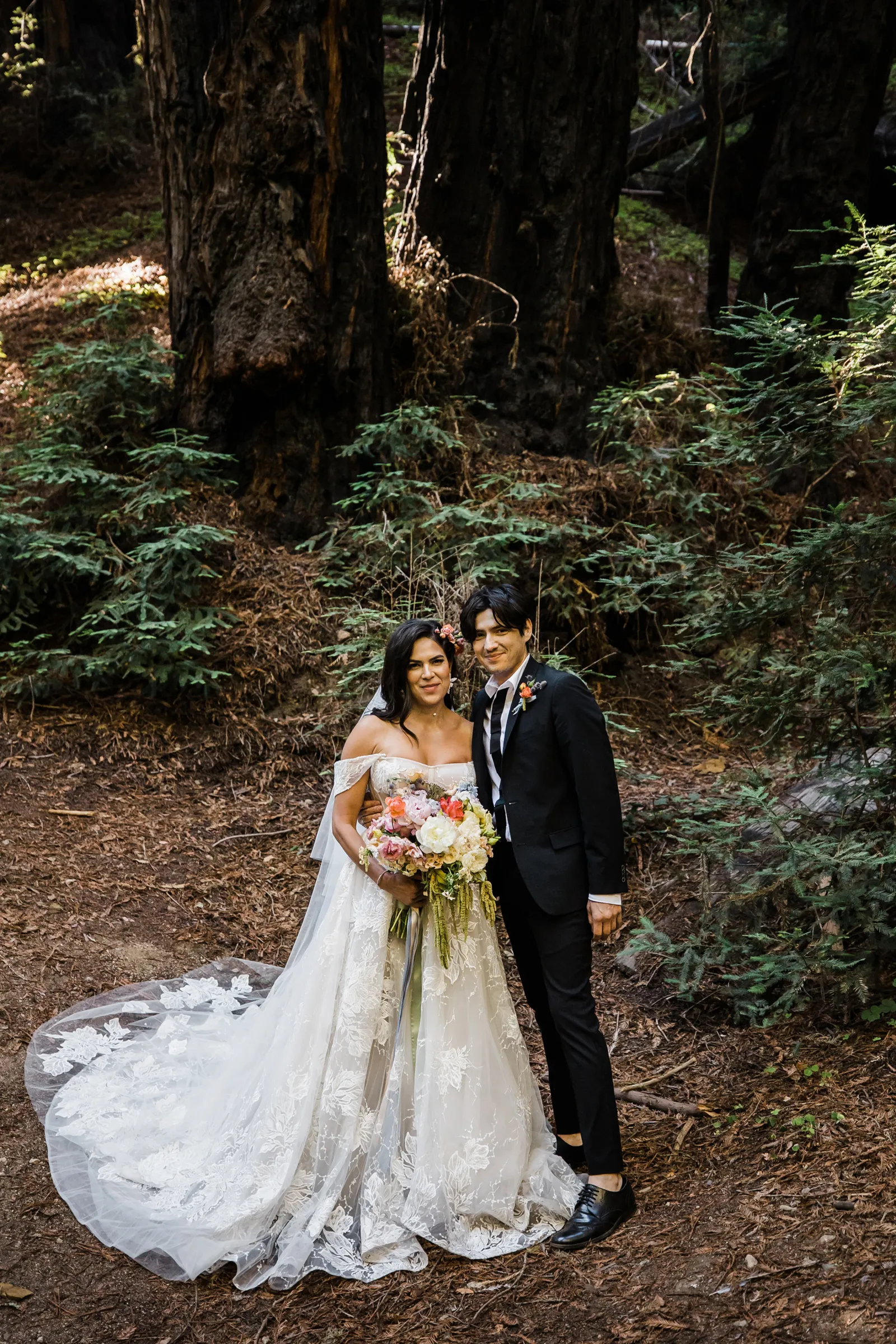 Happy Real Weddings Wednesday, everyone! We are thrilled about this gorgeous and dreamy elopement in Monterey. From the amazing florals and scenic backdrops of the forests, to the unique touches and fun moments, we know you’ll love these photos (thanks Aimée Flynn Photo!) as much as we did. Keep scrolling to learn more about Jacquie and Ernie!