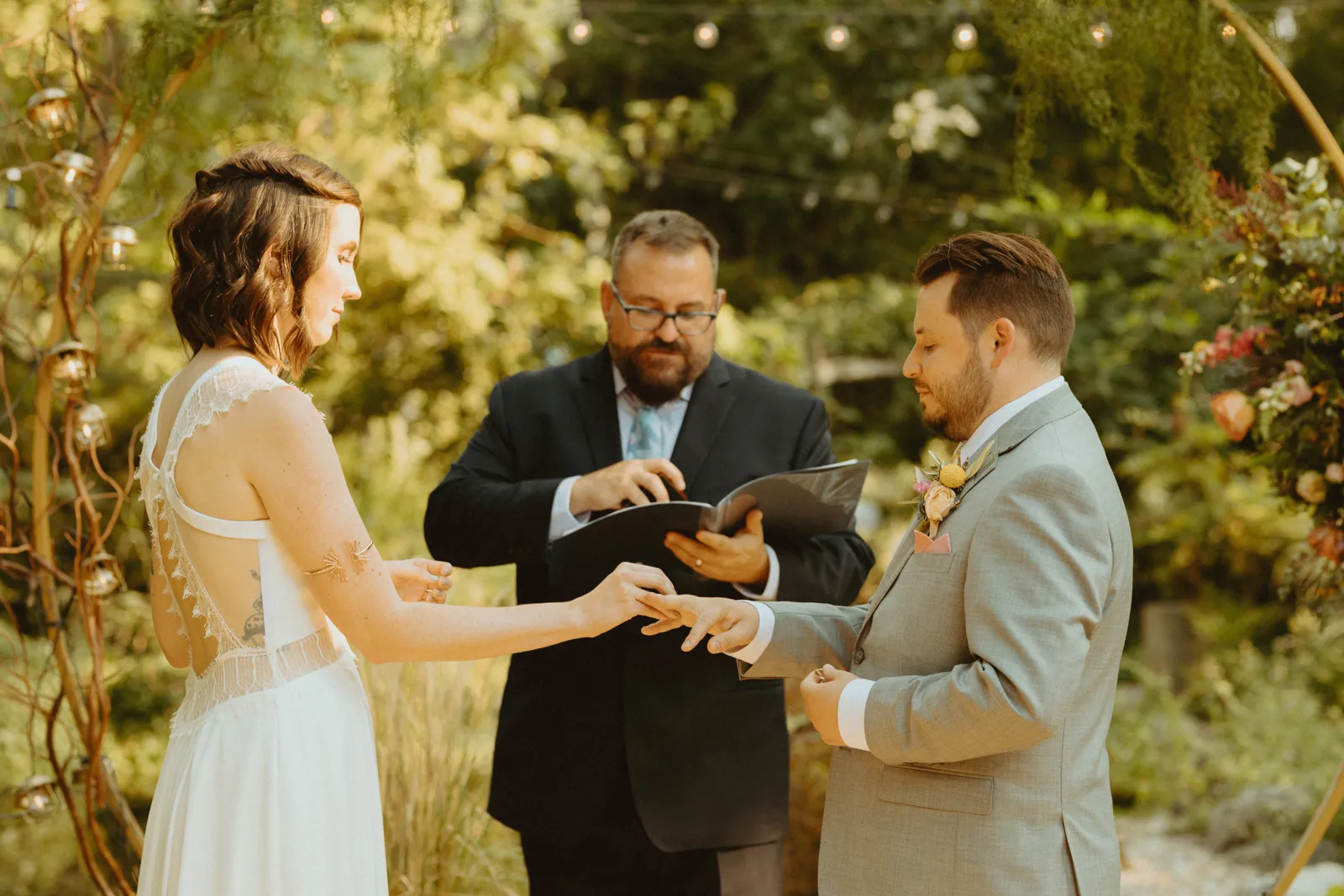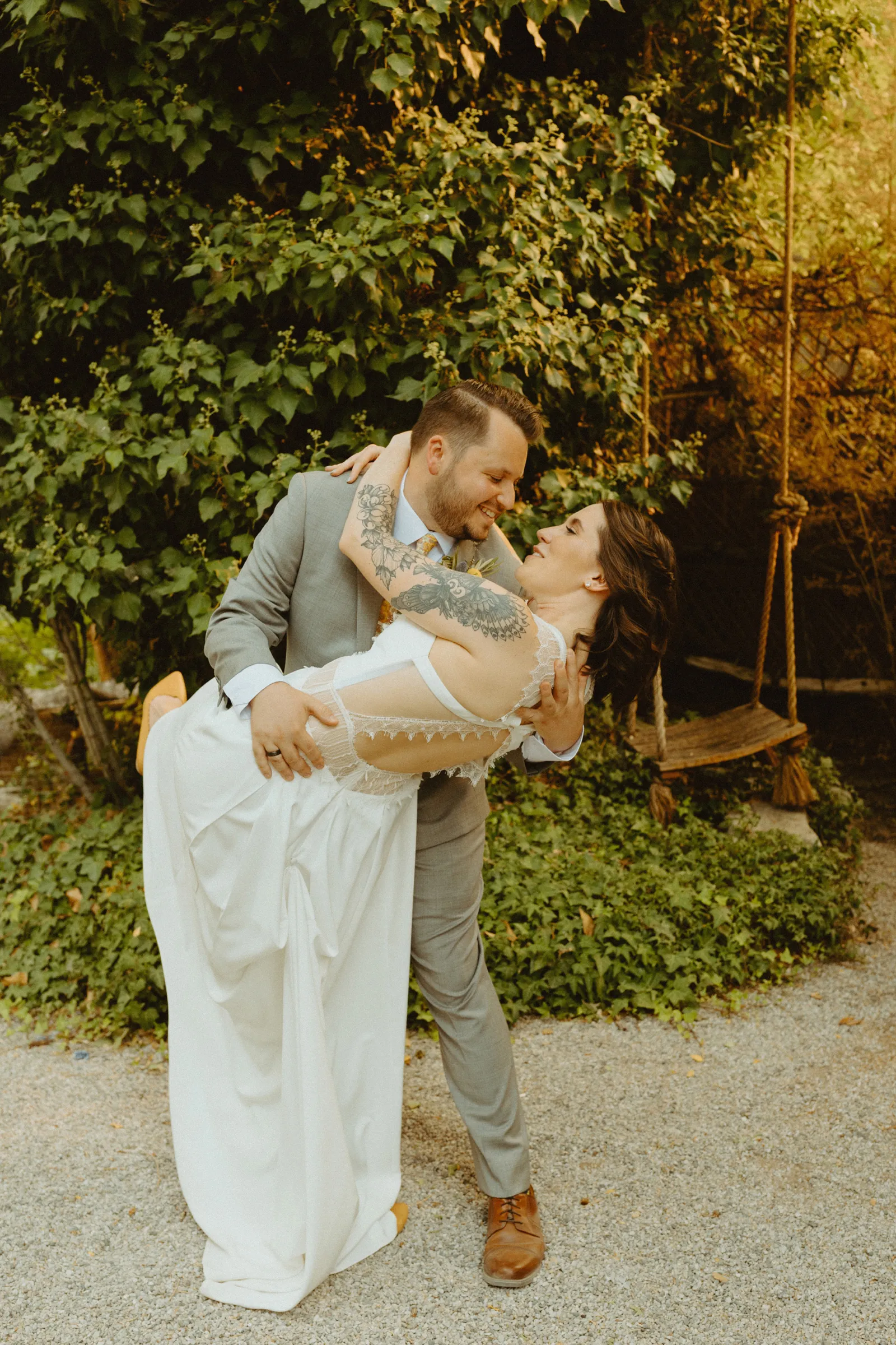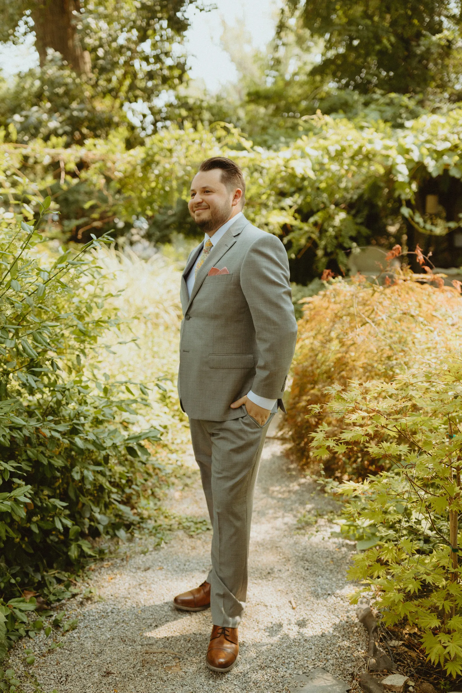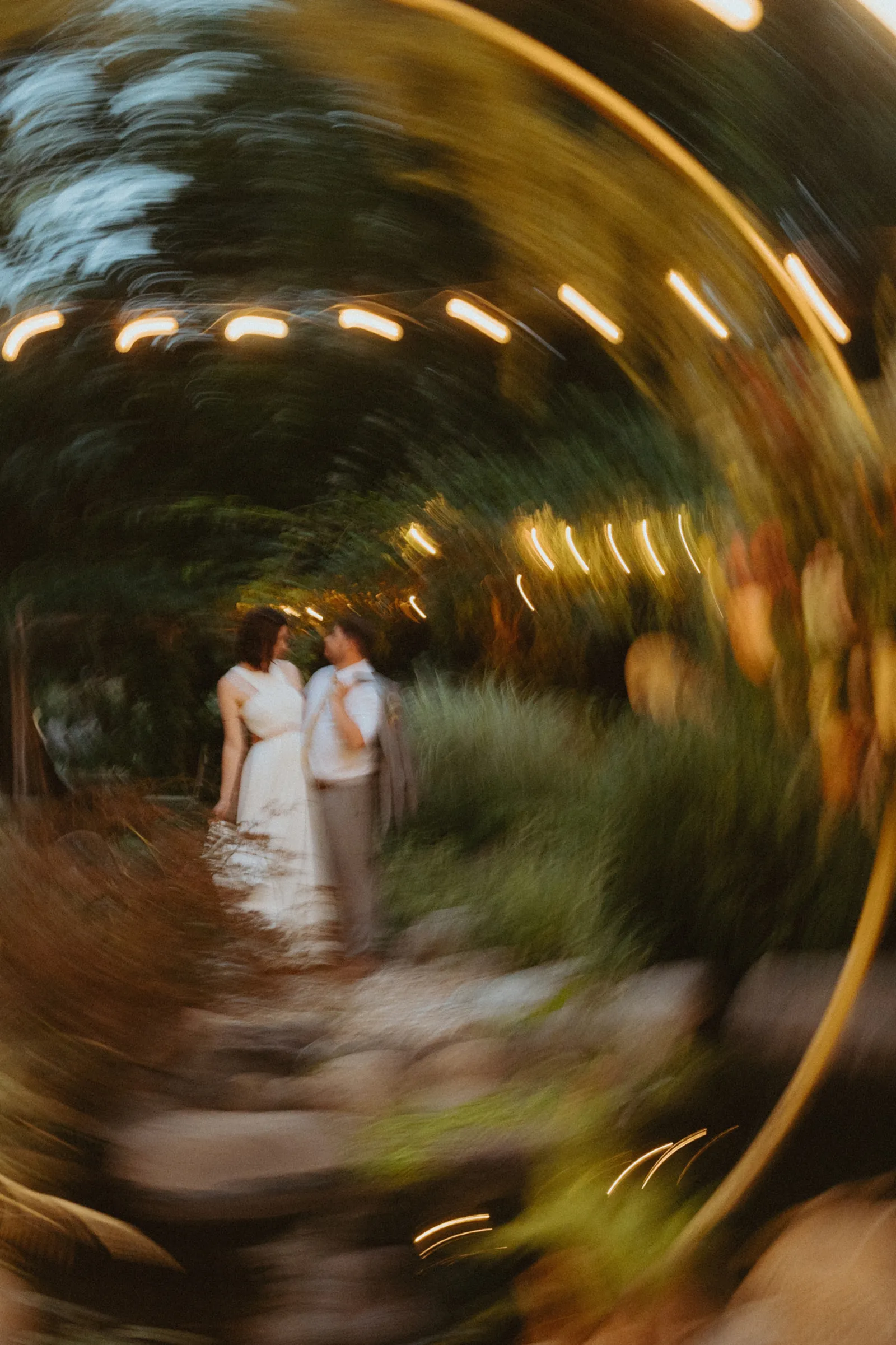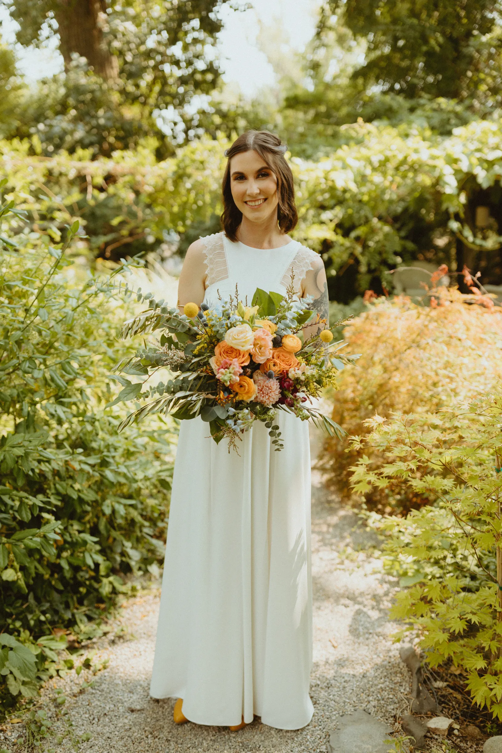 We met at the University of Nevada, Reno, where we both studied music and played the saxophone. After graduation, we moved to Las Vegas, N.V. We love hiking at Red Rock Canyon, so it was the perfect place for Mark to propose in May, 2020. We hiked one of our favorite trails, and on our way back, Mark got down on one knee and asked me to marry him! From the beginning, we knew that we wanted an intimate wedding, and not just because of the COVID-19 pandemic and lock-down at the time. We also knew that we wanted to have our special day in Reno so that our friends from school could attend. We researched ‘elopement’ and came across The Hytch. Jenny used to visit Sierra Water Gardens when it was an outdoor plant store, so when we saw that it was now a max 50-person wedding venue, we knew it was perfect.
