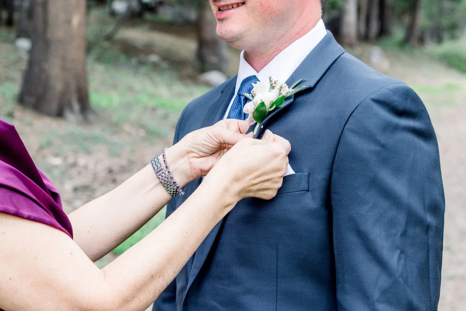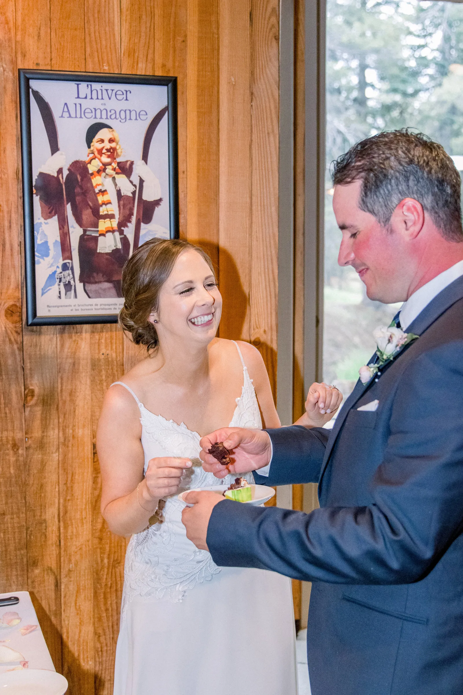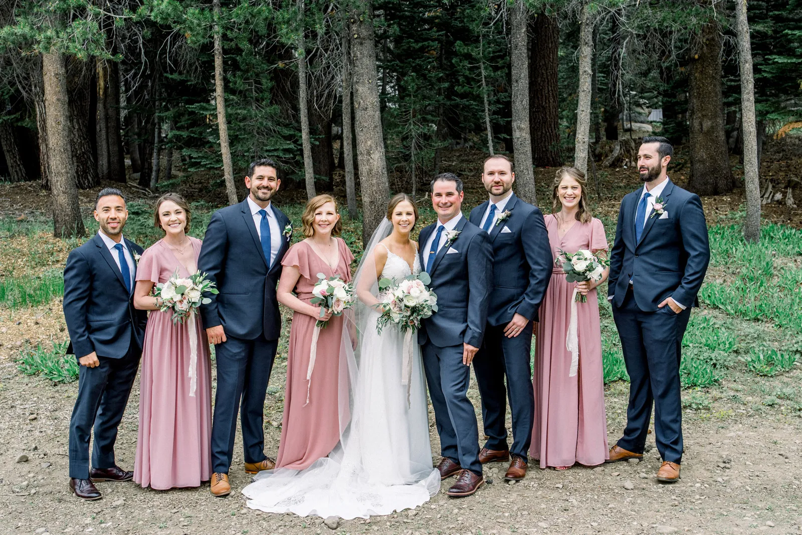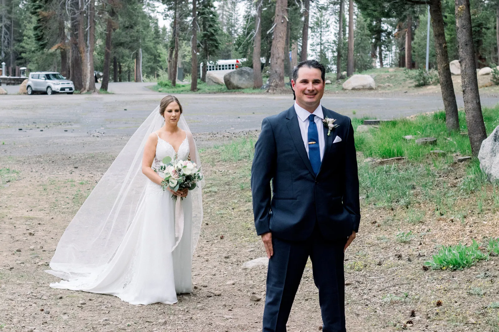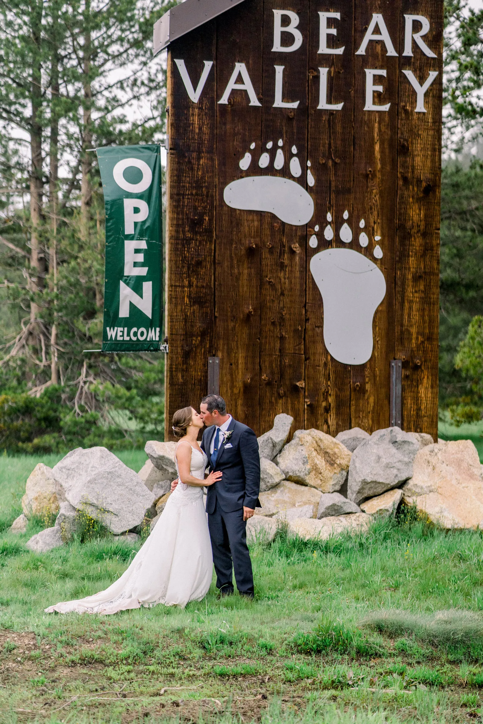 Matthew and I had met at Chico State through his best friend. Nothing came of it and I did not see him for five years. Then we both had decided to make Match.com profiles and see if we could meet someone through the free 30-day subscription. We matched and went on our first day at a brewery in Livermore, CA. Five years later, and he proposed at our favorite hiking spot with our two dogs. He asked me to take a photo of him and the dogs. As I was taking the photo he got down on one knee! We decided to do a small wedding in his grandparents backyard because both his grandparents were not doing well at the time and we wanted them to be present. We decided to do our “big wedding” at Bear Valley Ski Resort. It is an area we go to a lot and we have a family cabin in the area. The ceremony spot is what sold us and knew it was the perfect place!