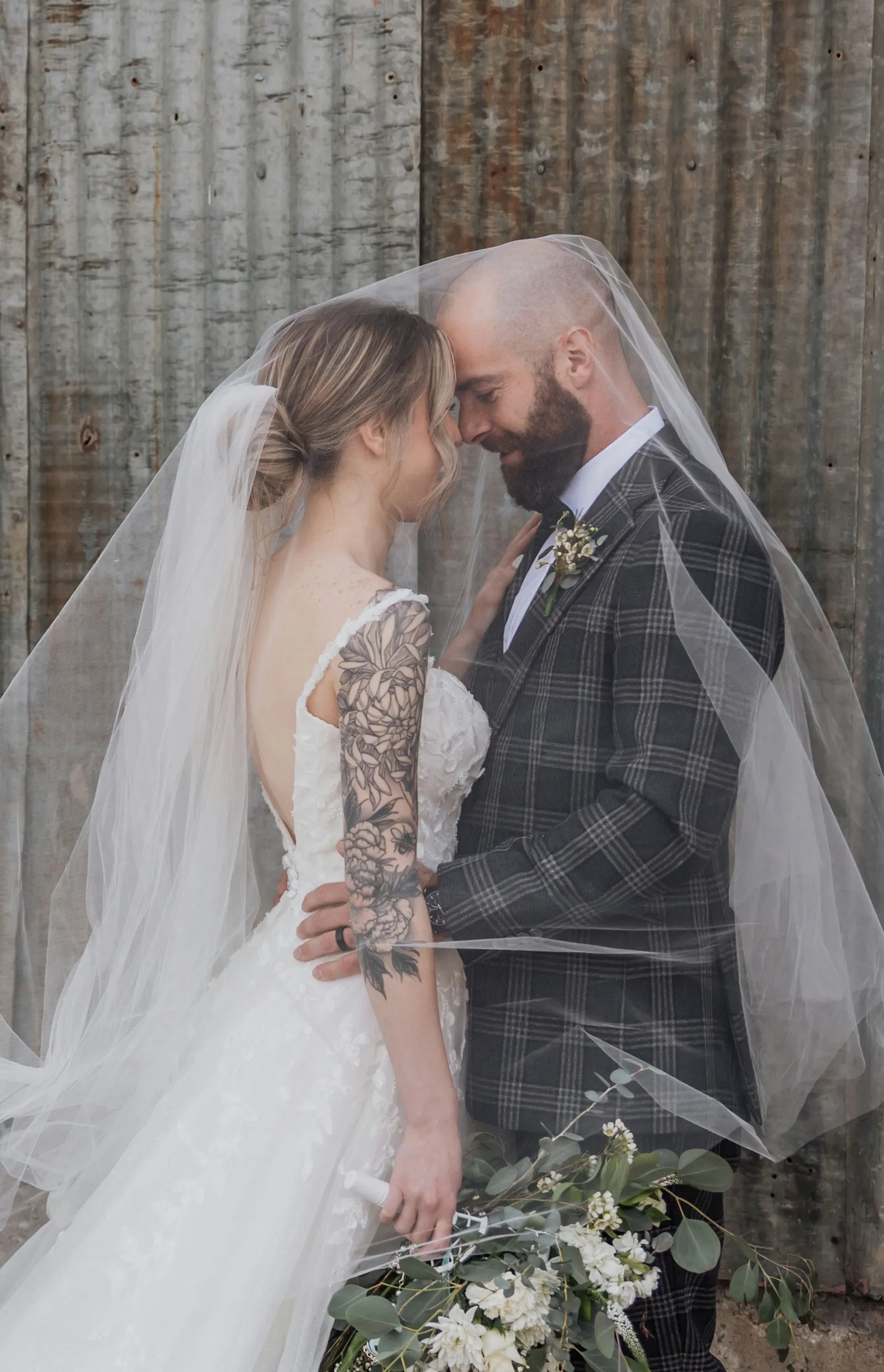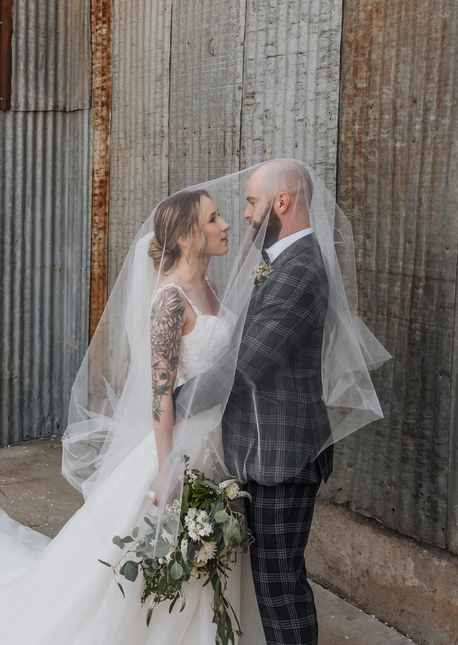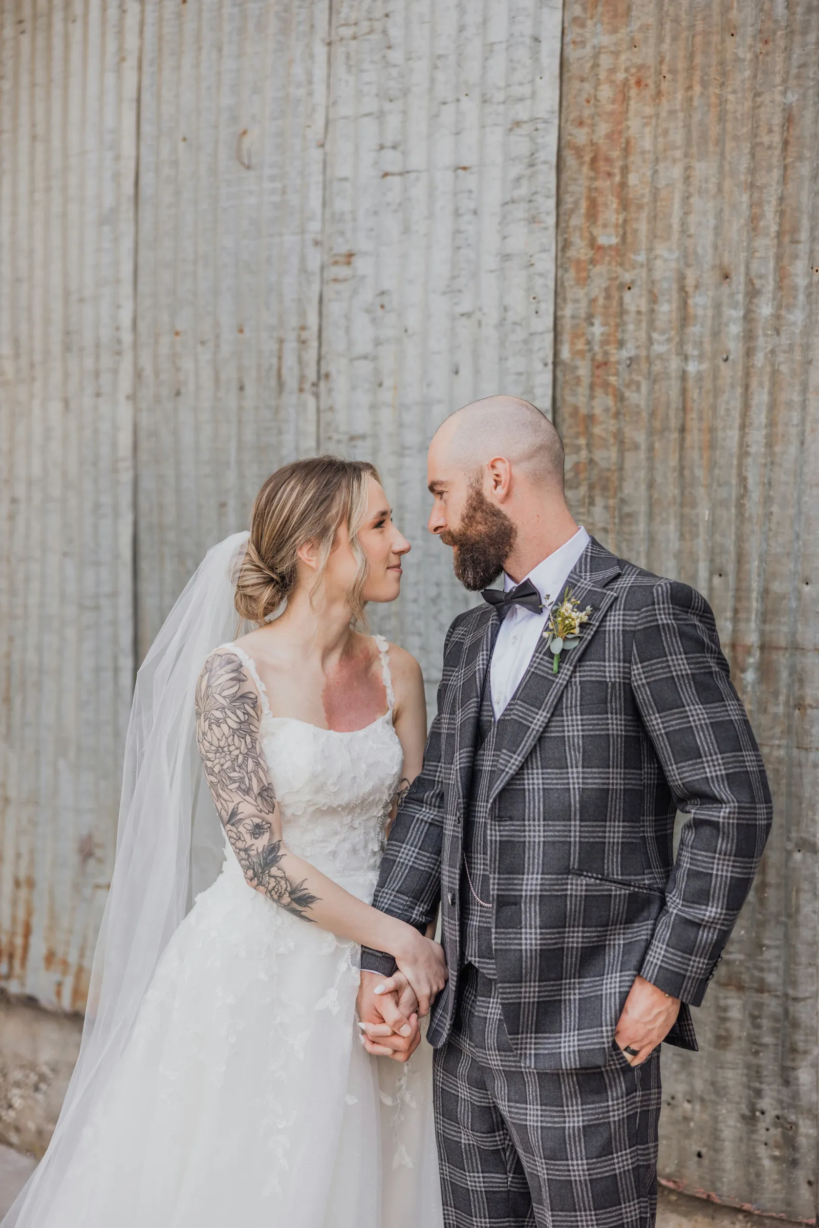Were do I begin? I moved into his garage and that is how we met. We didn’t talk for three months and finally he came home one night drunk yelling in my window “Why don’t you talk to us? Why don’t you like me?” The next morning he needed a ride to his car and to thank me, he left a breakfast burrito on my car. Our first date was watching Moana. A few coffee dates later and I guess the rest was history. The proposal happened in Mexico while we were on vacation. It was straight out of movie and I had no idea. Planning the wedding was overwhelming but fun. It was so fun seeing our community come together and help put on the perfect day.