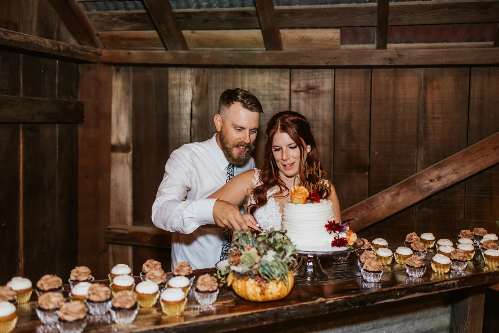 Welcome back to another Real Weddings Wednesday, everyone! Today, we are celebrating Katie and Jacob’s gorgeous Fall-inspired ceremony. Think pumpkins, orange and red tones, with plenty of romantic details to create a stunning wedding for the stunning couple. Make sure to keep scrolling so you can read about Katie and Jacob, while getting to look at more amazing photos from Maddy Godt Photography!