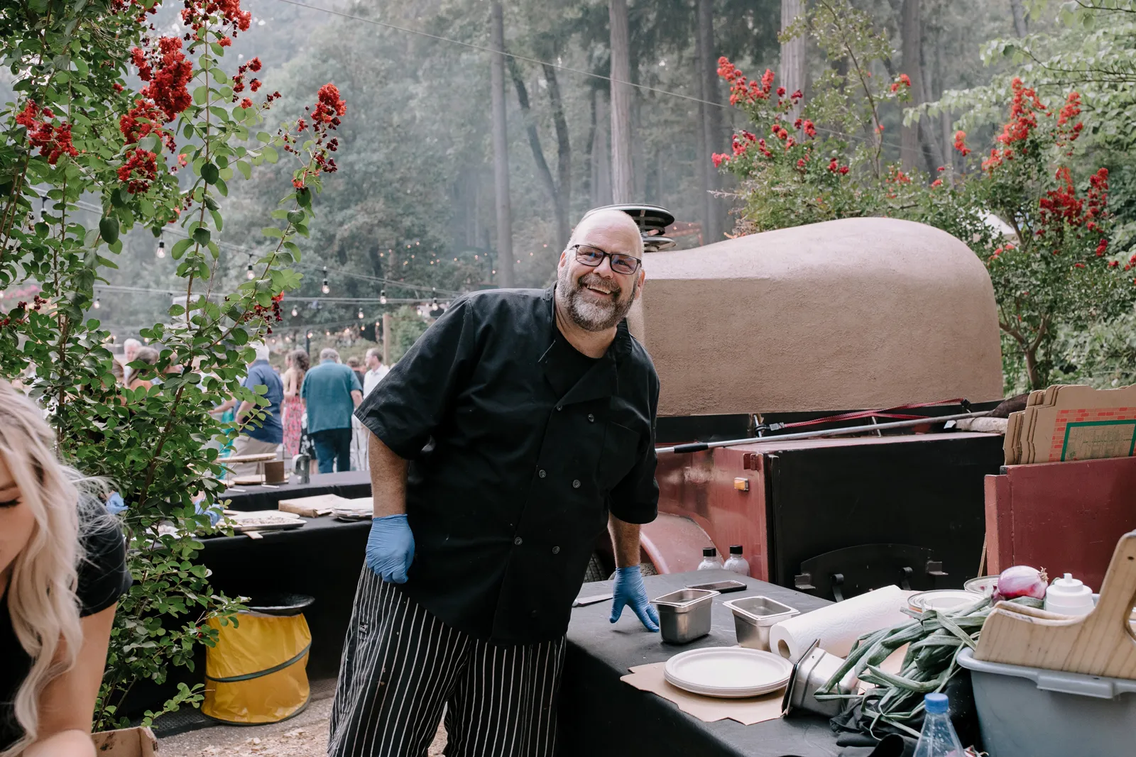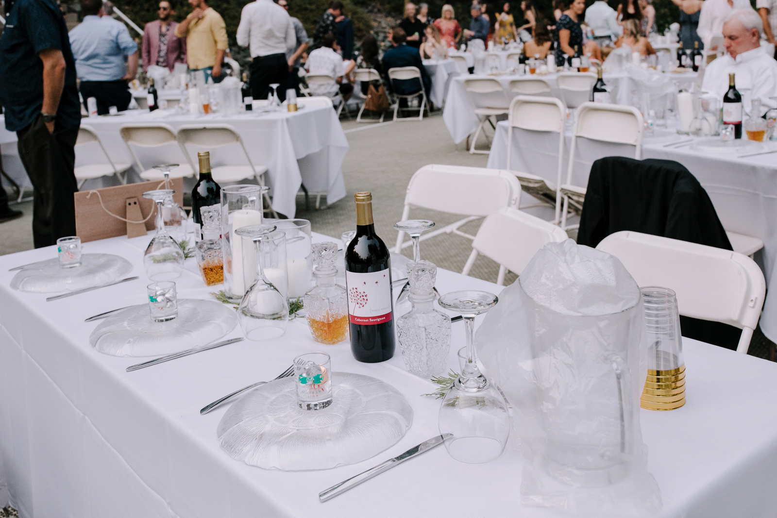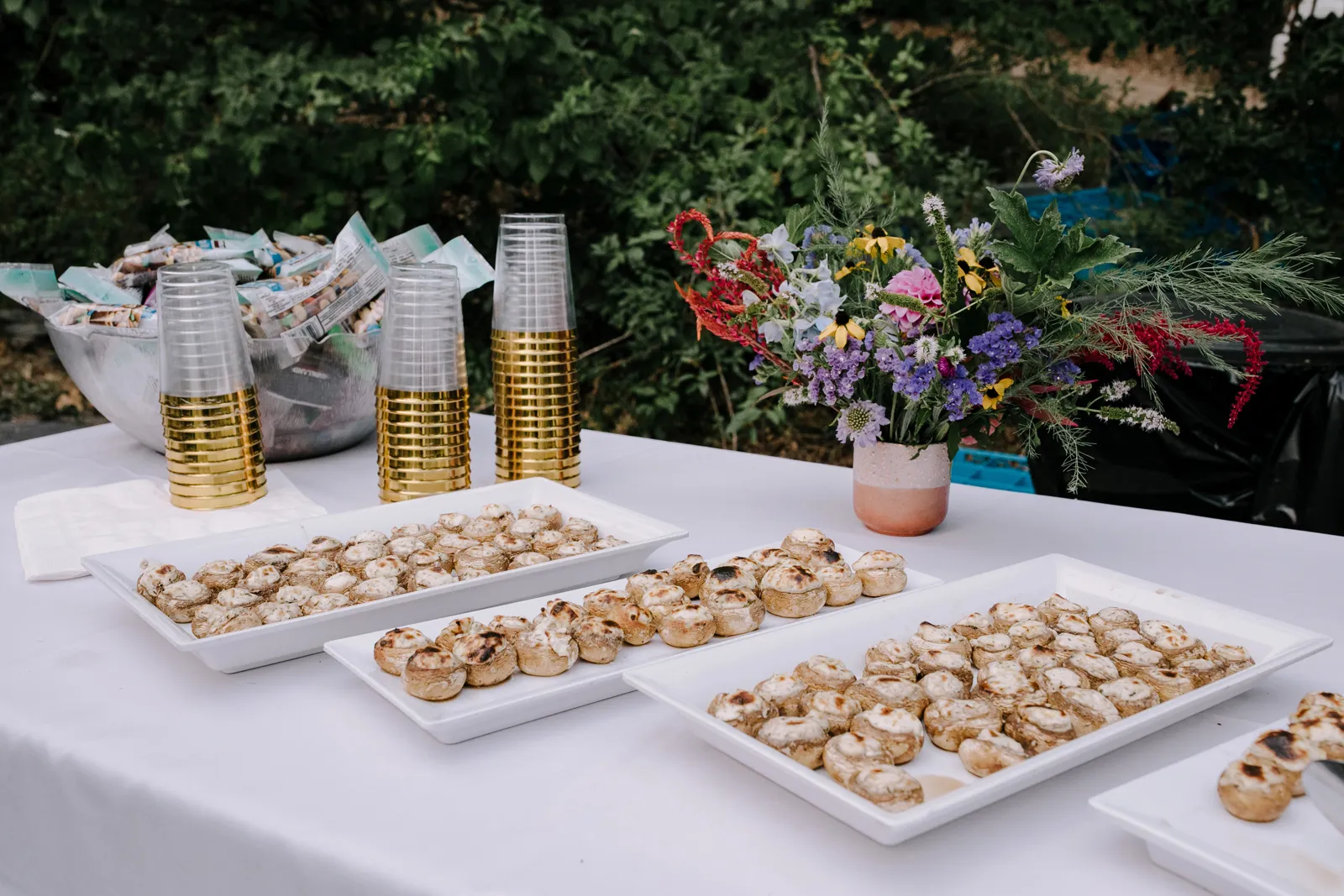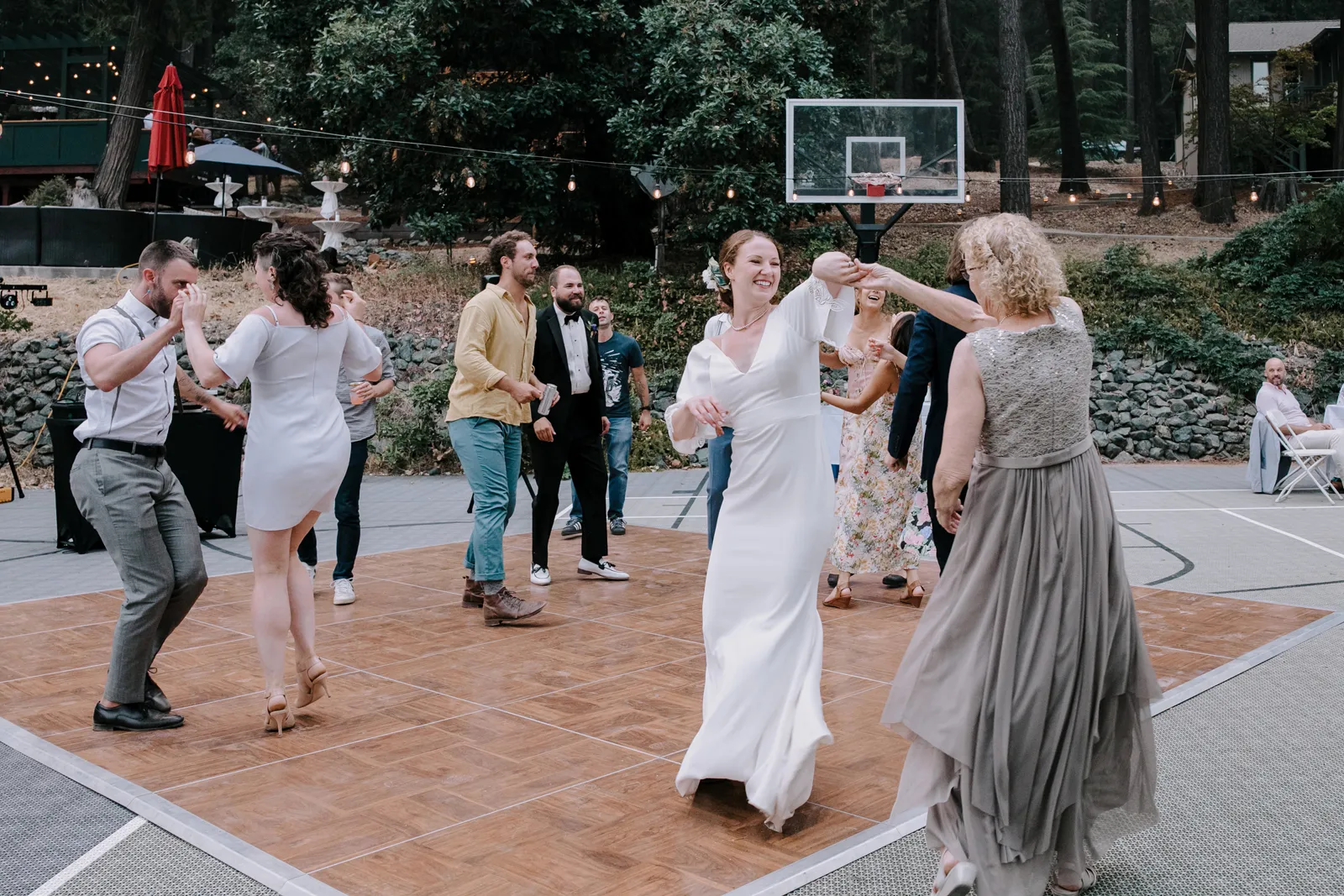 Joe and I are two love birds who find each other very, very funny. We met at The Benchwarmer, a little dive in Ventura, CA. I walked in and after an hour or so of pep talking from a friend, Joe finally walked up and said, “Hi, are you that cute girl I was talking to on Bumble?” I was! [It was] a little hybrid tech-real life love story. Three years later, backpacking in Santa Barbara County, Joe proposed with my Nana’s engagement ring. We were sitting by a crystal clear pool that had not one but three little waterfalls flowing into it. It was a beautiful moment. For the next year we planned the best party either of us could have hoped for. My mom has the organization, the mind for logistics, and so much practice throwing backyard parties; Joe and I had the scratch paper lists of ideas all over our house; Joe’s Mom and sister have the knack for details and a good time that can make a backyard party a champagne worthy event. Our Dads are classic gentlemen and sat back and gave us the space to call back and forth relentlessly about cup rentals, table cloths, and who knows what else — probably more cup and table cloth talk!