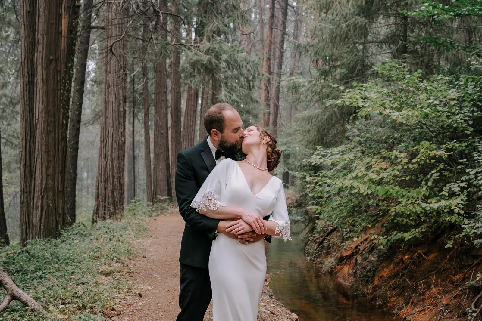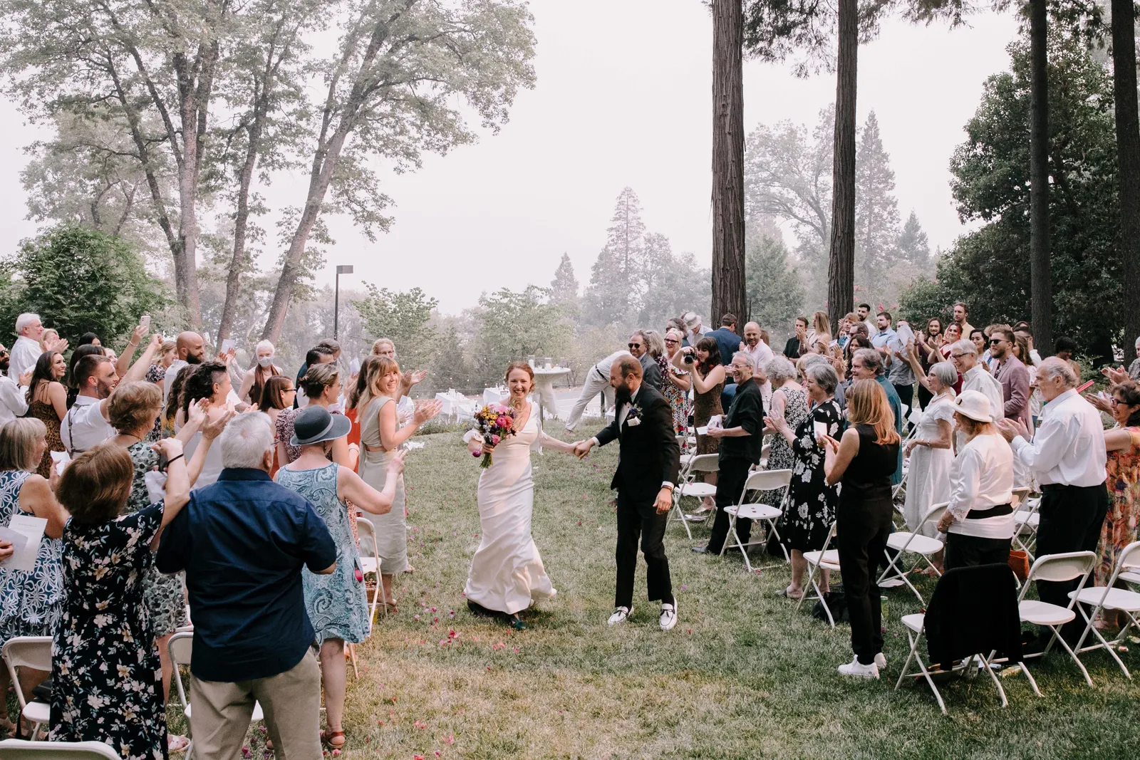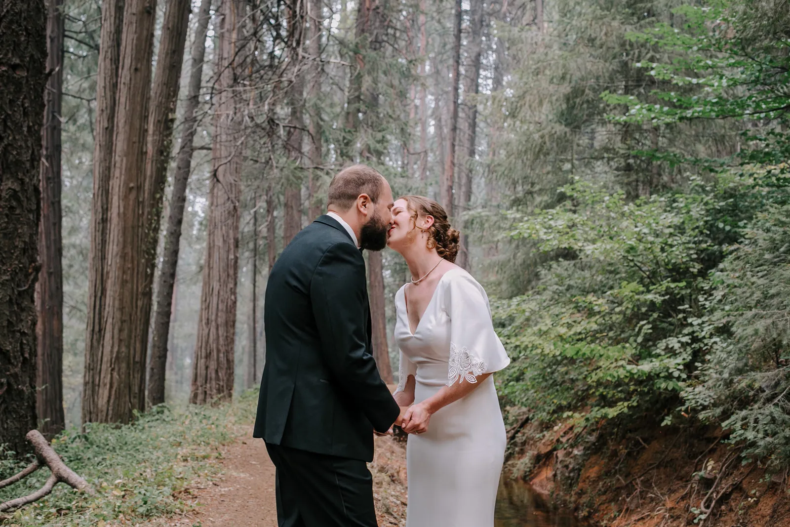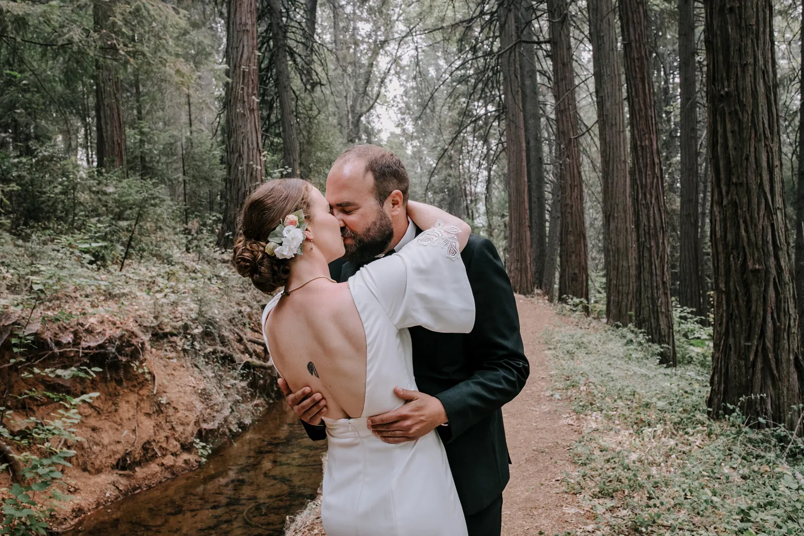 Happy Real Weddings Wednesday, folks! We are celebrating Kelci + Joe’s scenic, straight-from-a-movie backyard ceremony in Nevada City! Expect gorgeous photos that create a senic foggy forest backdrop, along with some fun insights from the couple. Keep scrolling to read more about Kelci and Joe’s love story. Happy Wednesday, and happy reading!