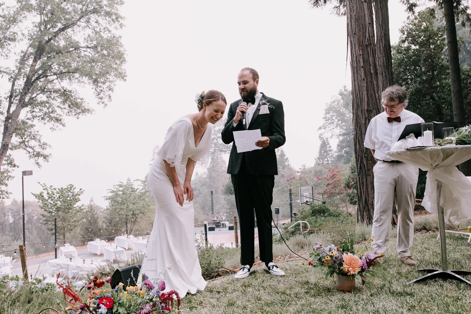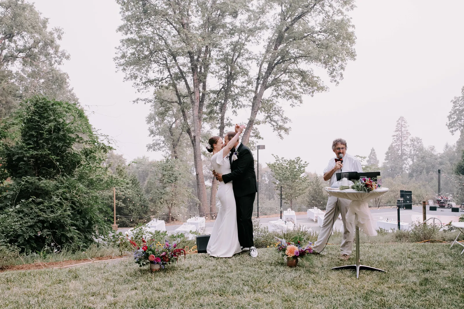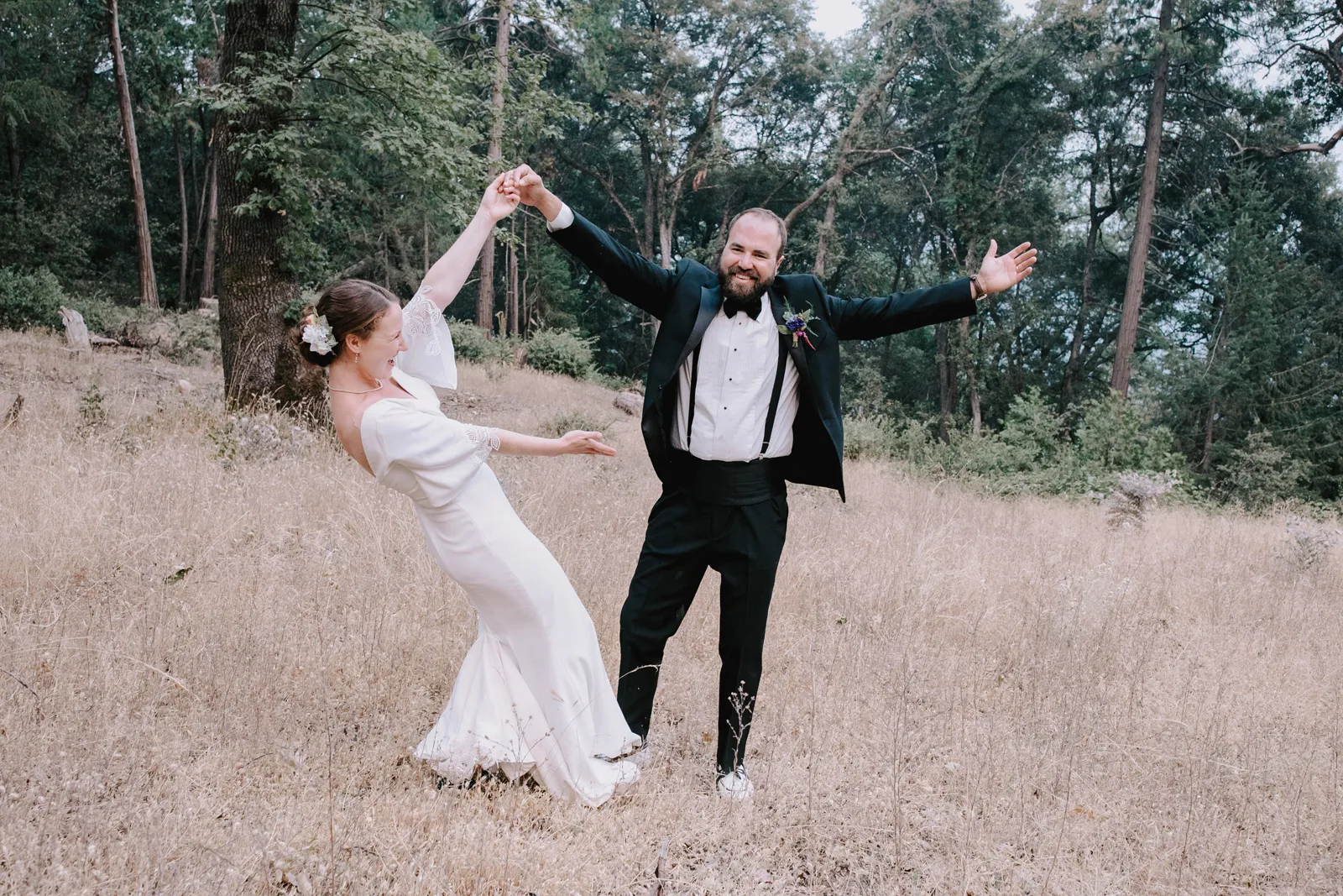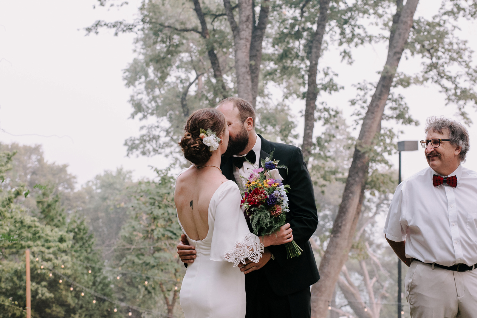 Happy Real Weddings Wednesday, folks! We are celebrating Kelci + Joe’s scenic, straight-from-a-movie backyard ceremony in Nevada City! Expect gorgeous photos that create a senic foggy forest backdrop, along with some fun insights from the couple. Keep scrolling to read more about Kelci and Joe’s love story. Happy Wednesday, and happy reading!