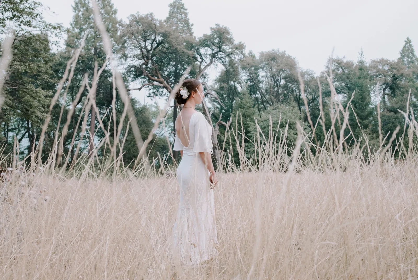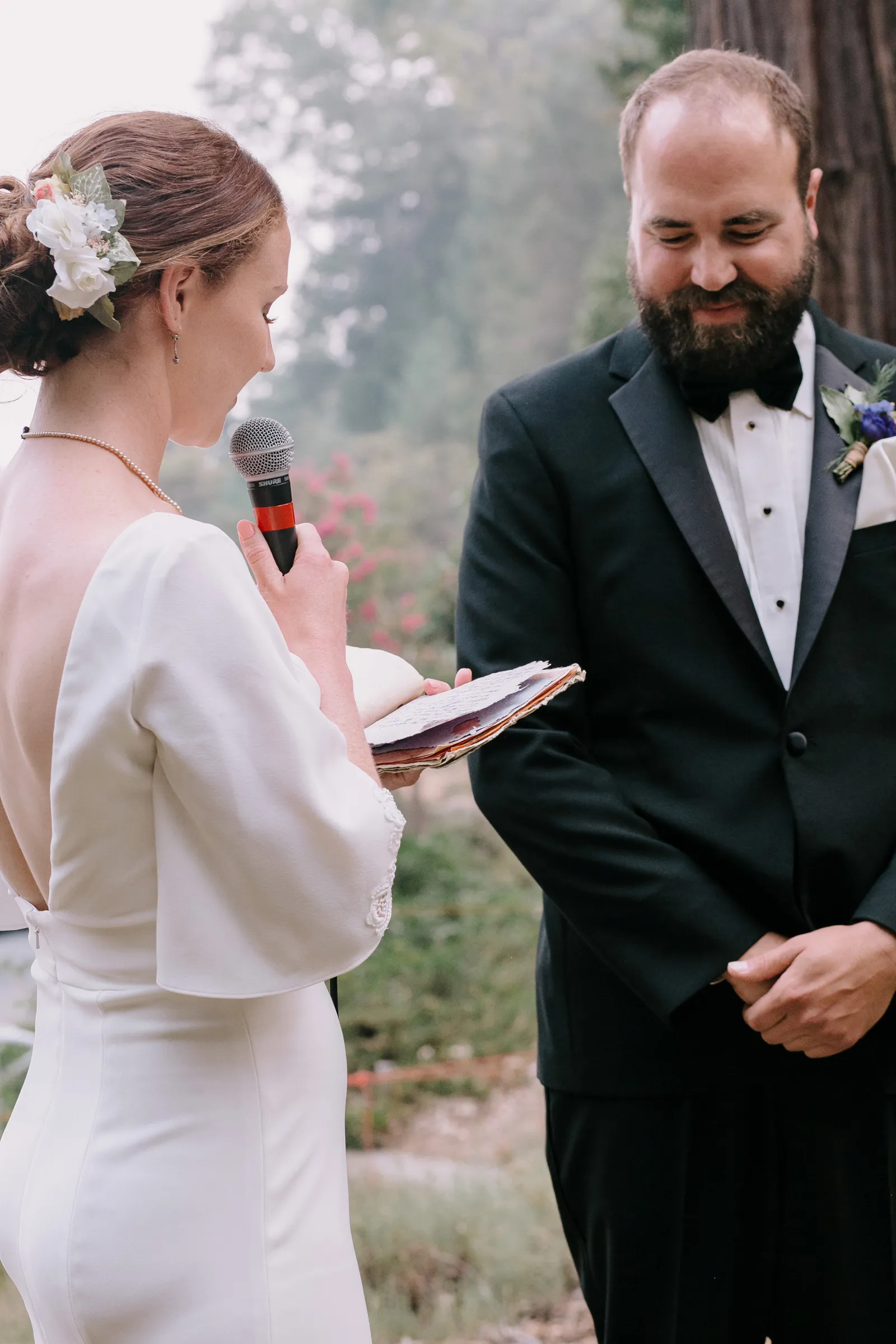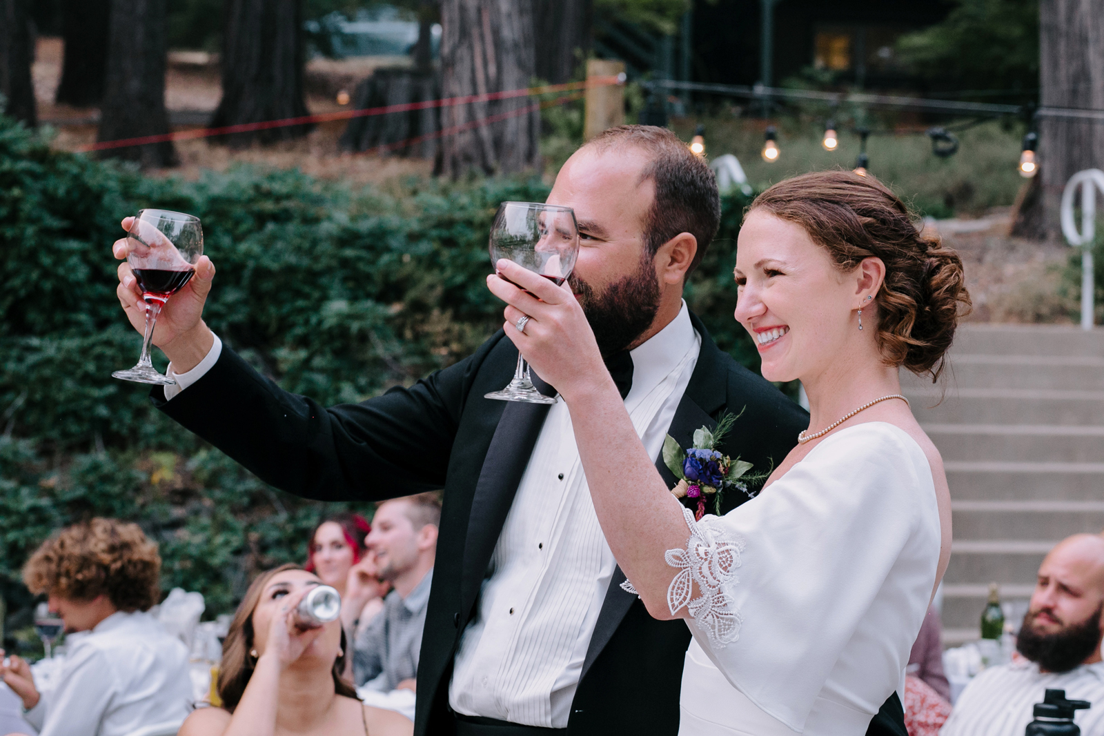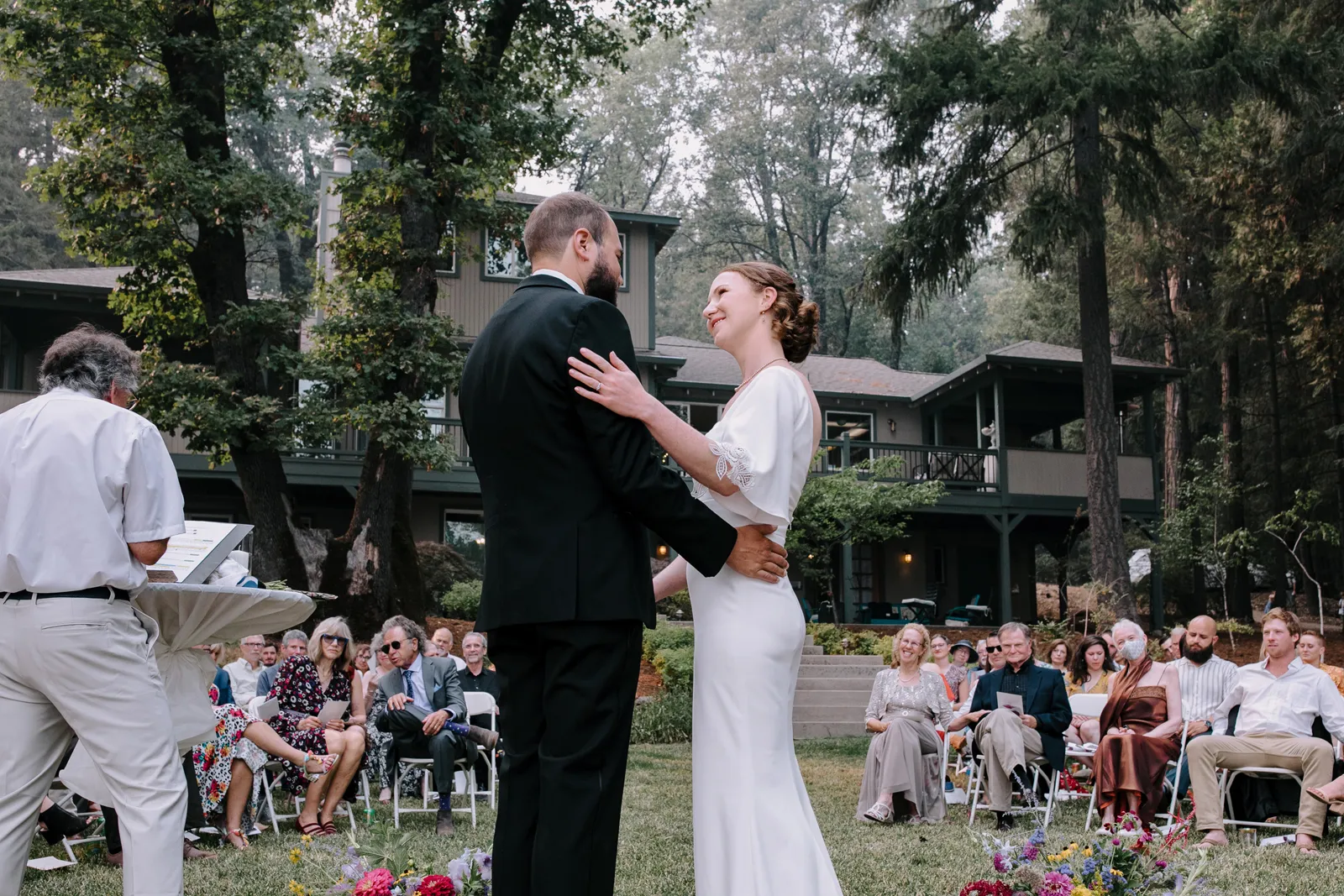Happy Real Weddings Wednesday, folks! We are celebrating Kelci + Joe’s scenic, straight-from-a-movie backyard ceremony in Nevada City! Expect gorgeous photos that create a senic foggy forest backdrop, along with some fun insights from the couple. Keep scrolling to read more about Kelci and Joe’s love story. Happy Wednesday, and happy reading!