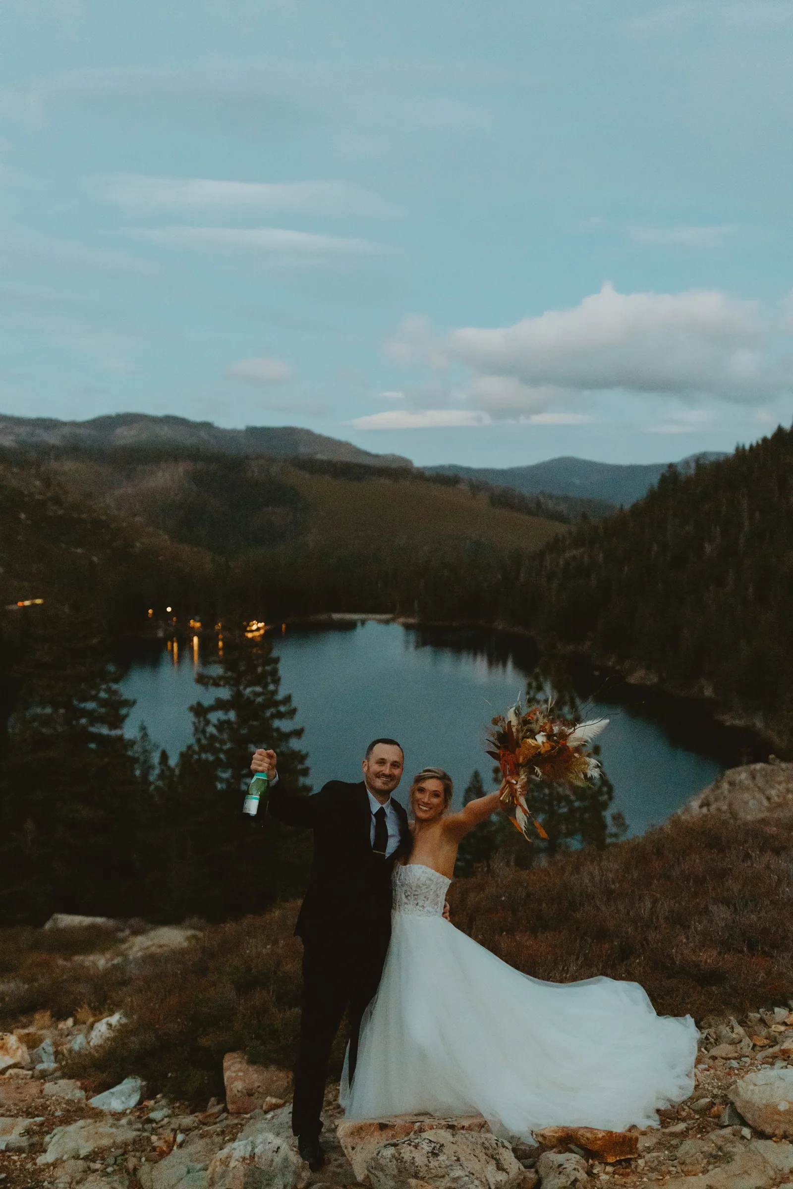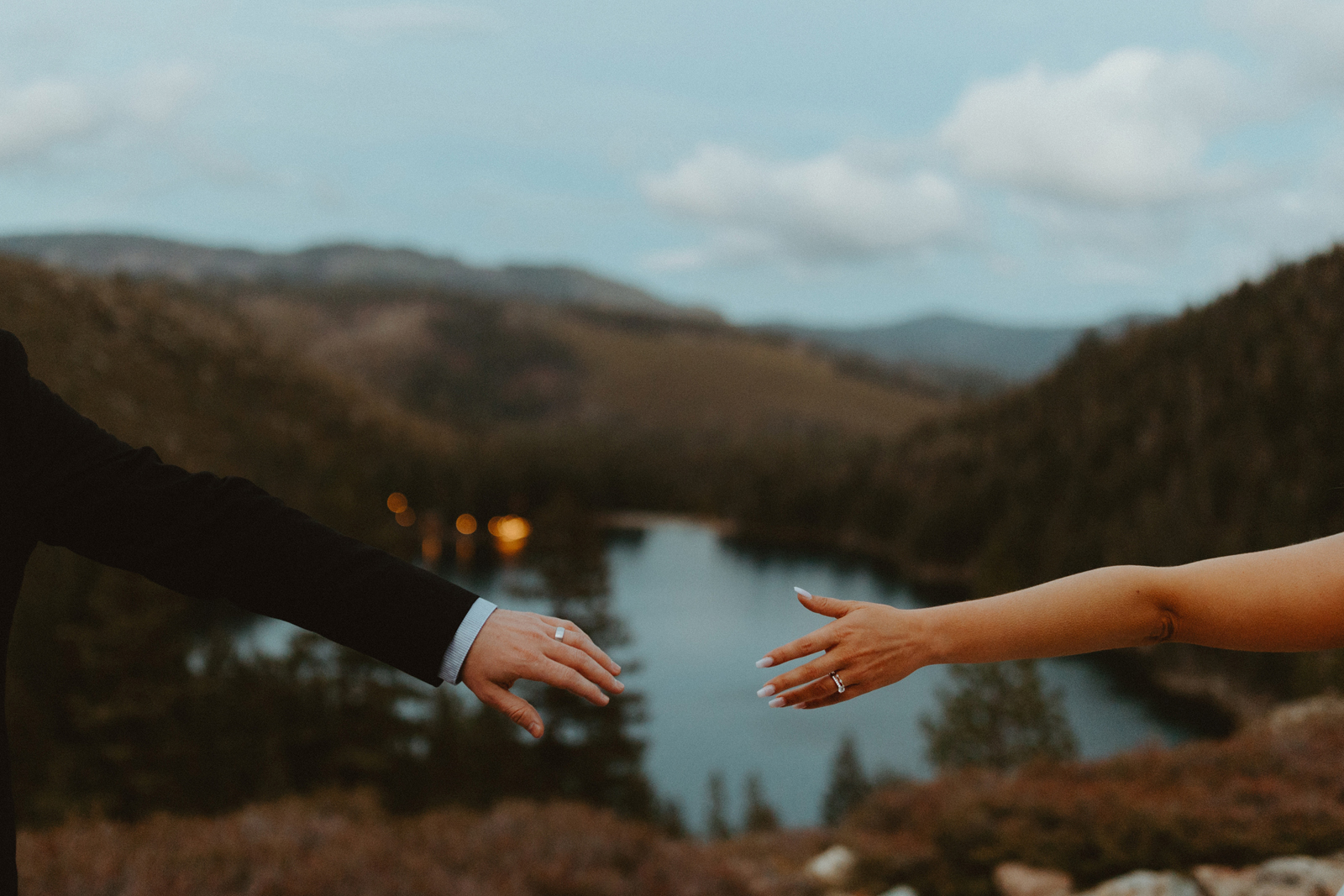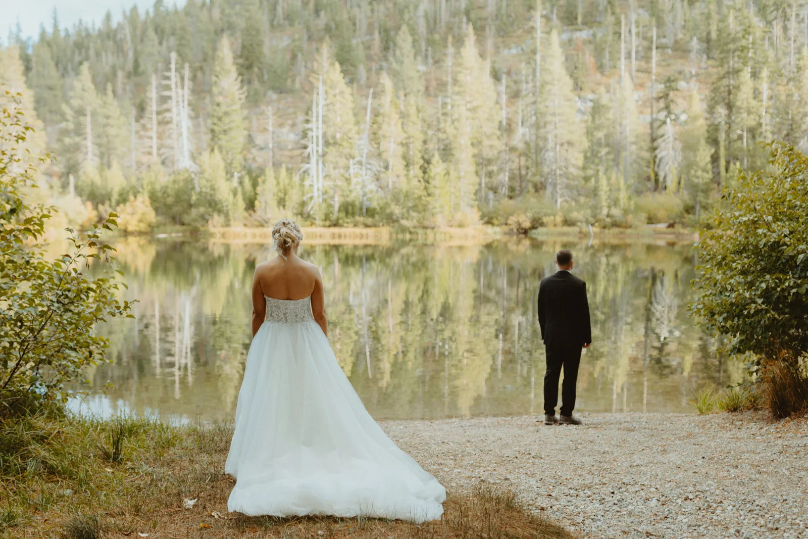 We originally planned our wedding for December 5, 2020 in Ohio. Due to changing COVID policies, we were forced to cancel our big day just three weeks before. We planned four other weddings in between, [but] none of our wedding plans ever felt right, and we finally decided to elope in August 2021. We kept our plans secret from all our family and friends so we could really focus on doing what we wanted without risking any hurt feelings. We had a sunrise elopement planned at Emerald Bay, only to find out three days beforehand that the forest was still closed due to the wildfires. Emma truly saved the day with her knowledge of an even more beautiful location. It was truly perfect.