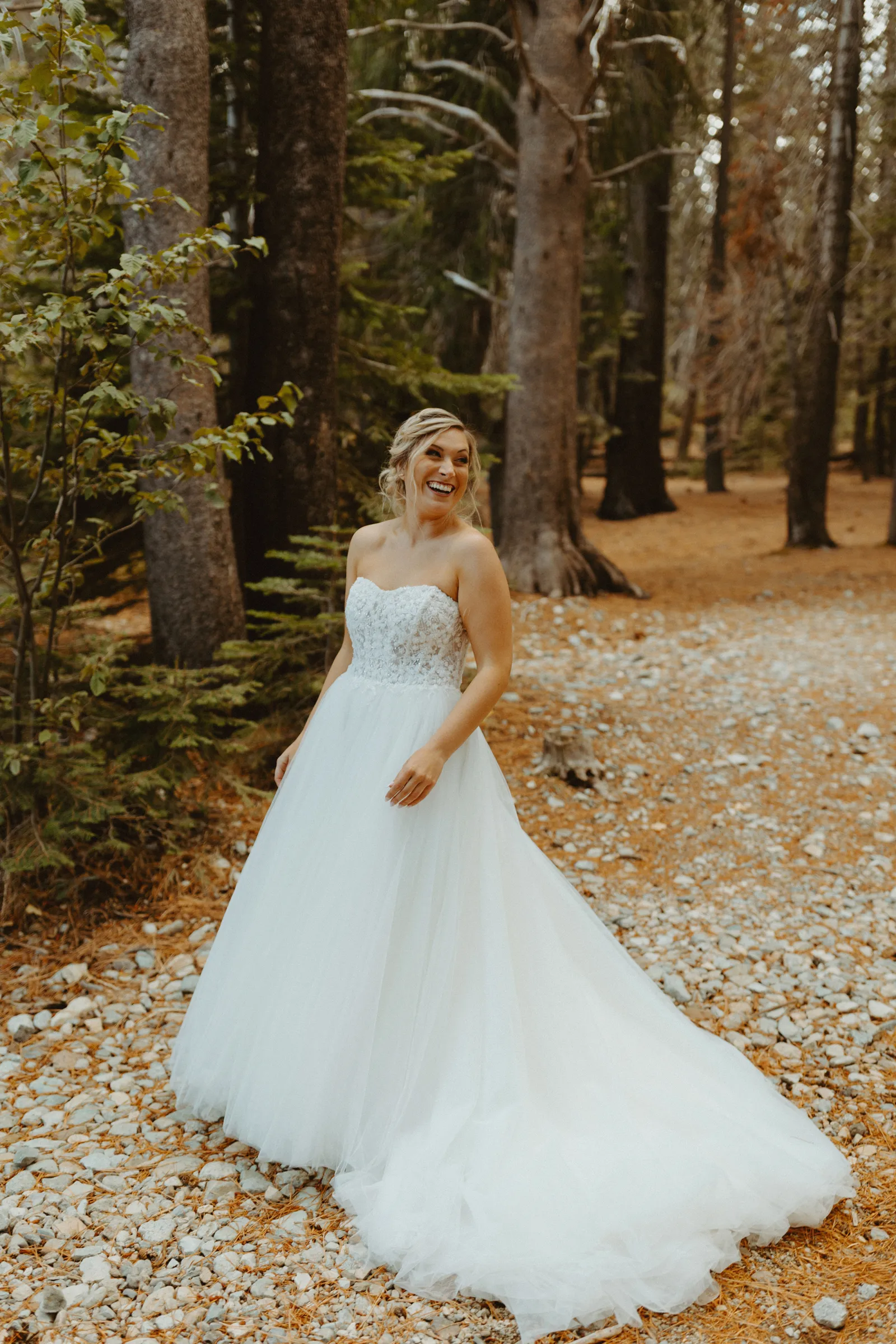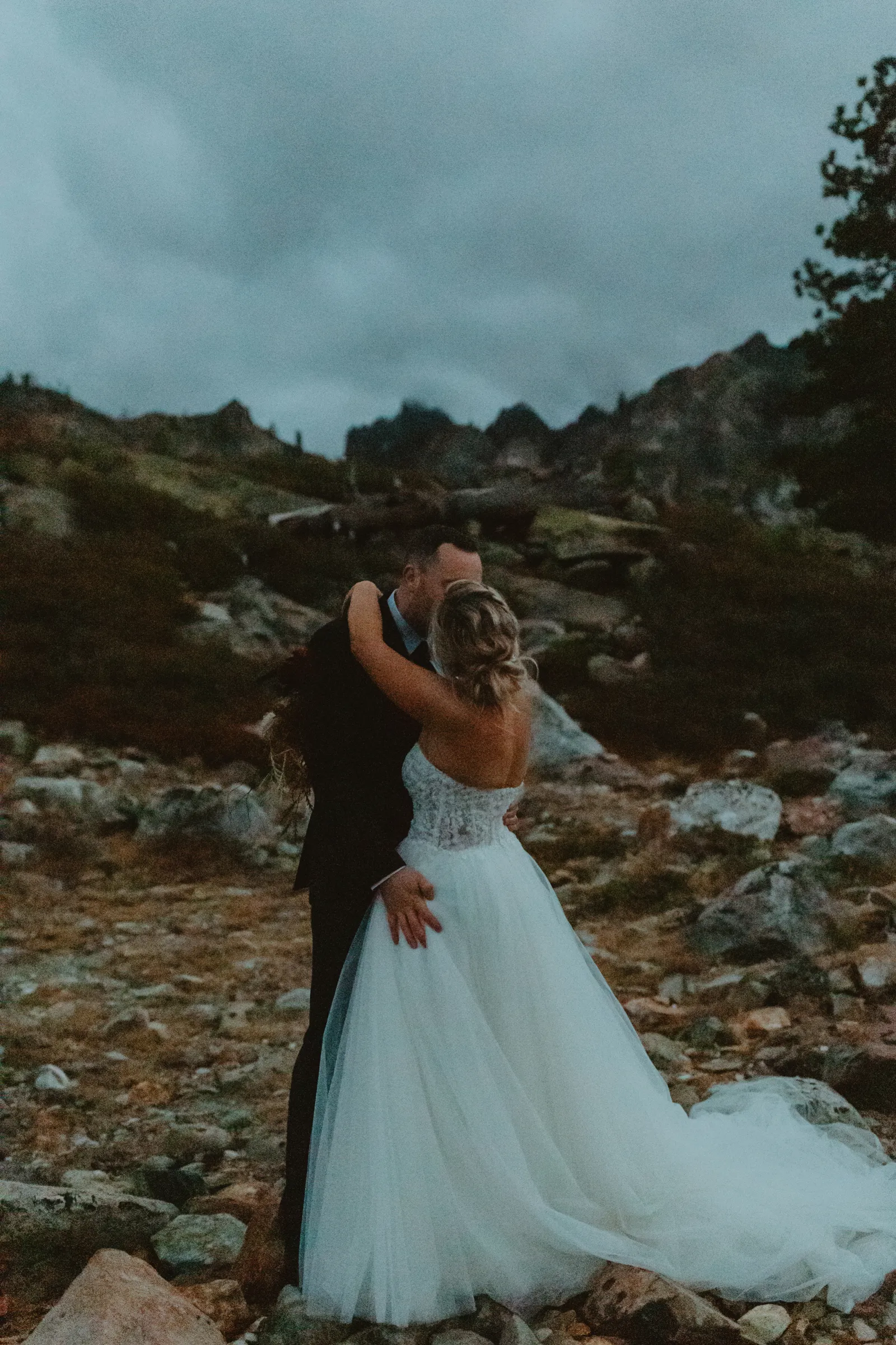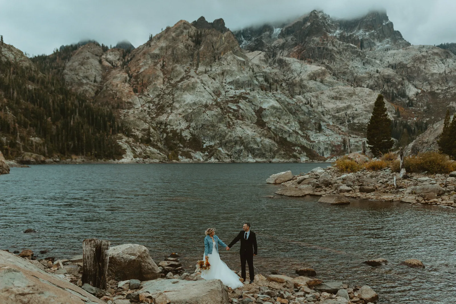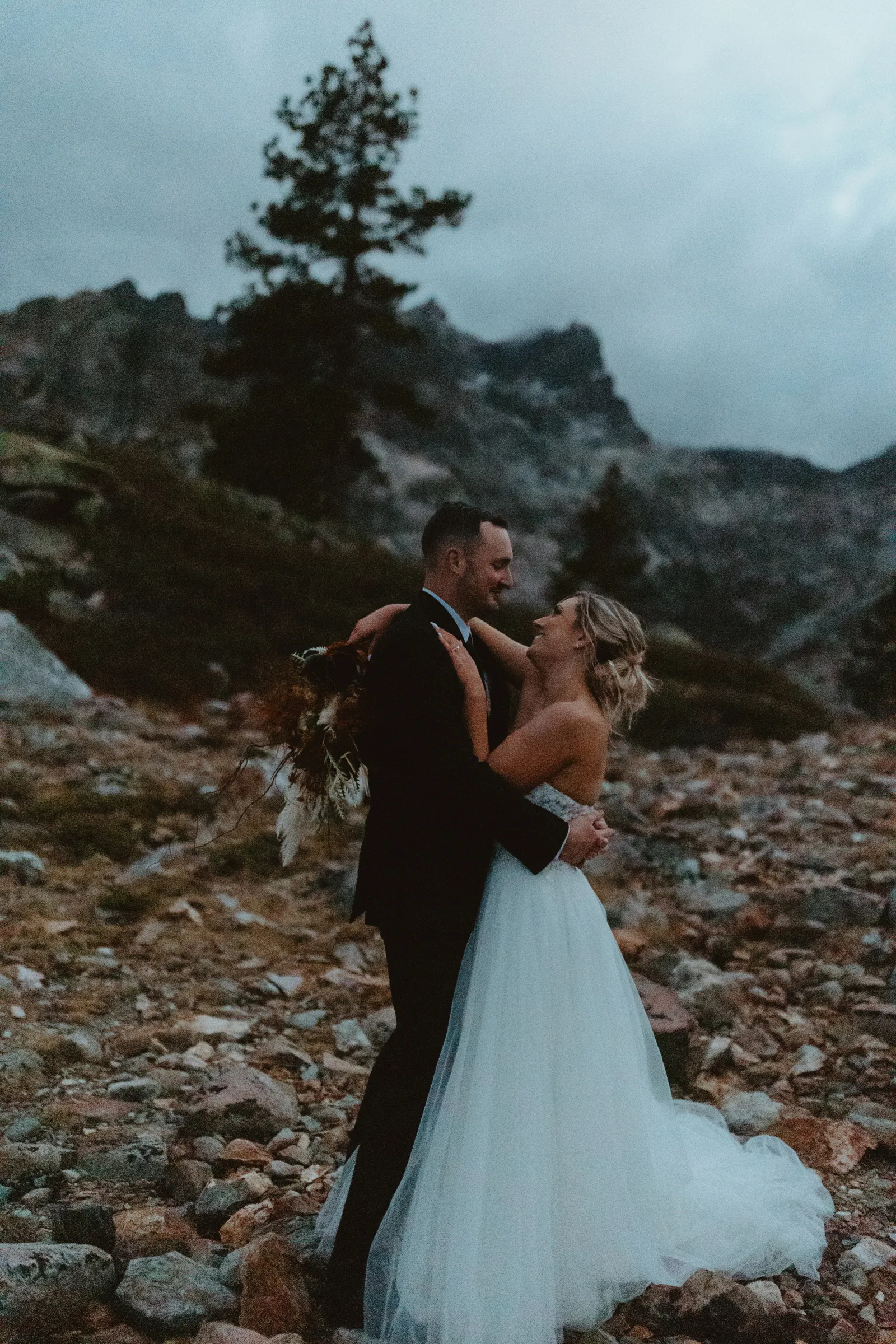 We originally planned our wedding for December 5, 2020 in Ohio. Due to changing COVID policies, we were forced to cancel our big day just three weeks before. We planned four other weddings in between, [but] none of our wedding plans ever felt right, and we finally decided to elope in August 2021. We kept our plans secret from all our family and friends so we could really focus on doing what we wanted without risking any hurt feelings. We had a sunrise elopement planned at Emerald Bay, only to find out three days beforehand that the forest was still closed due to the wildfires. Emma truly saved the day with her knowledge of an even more beautiful location. It was truly perfect.