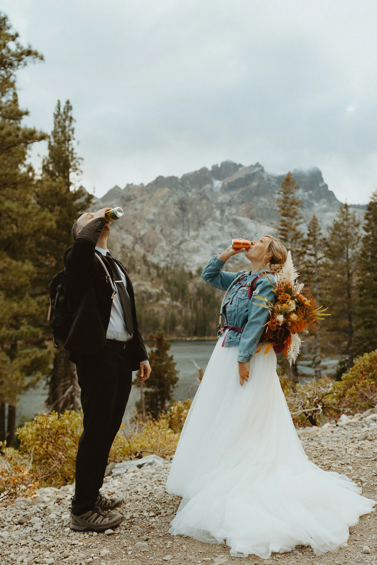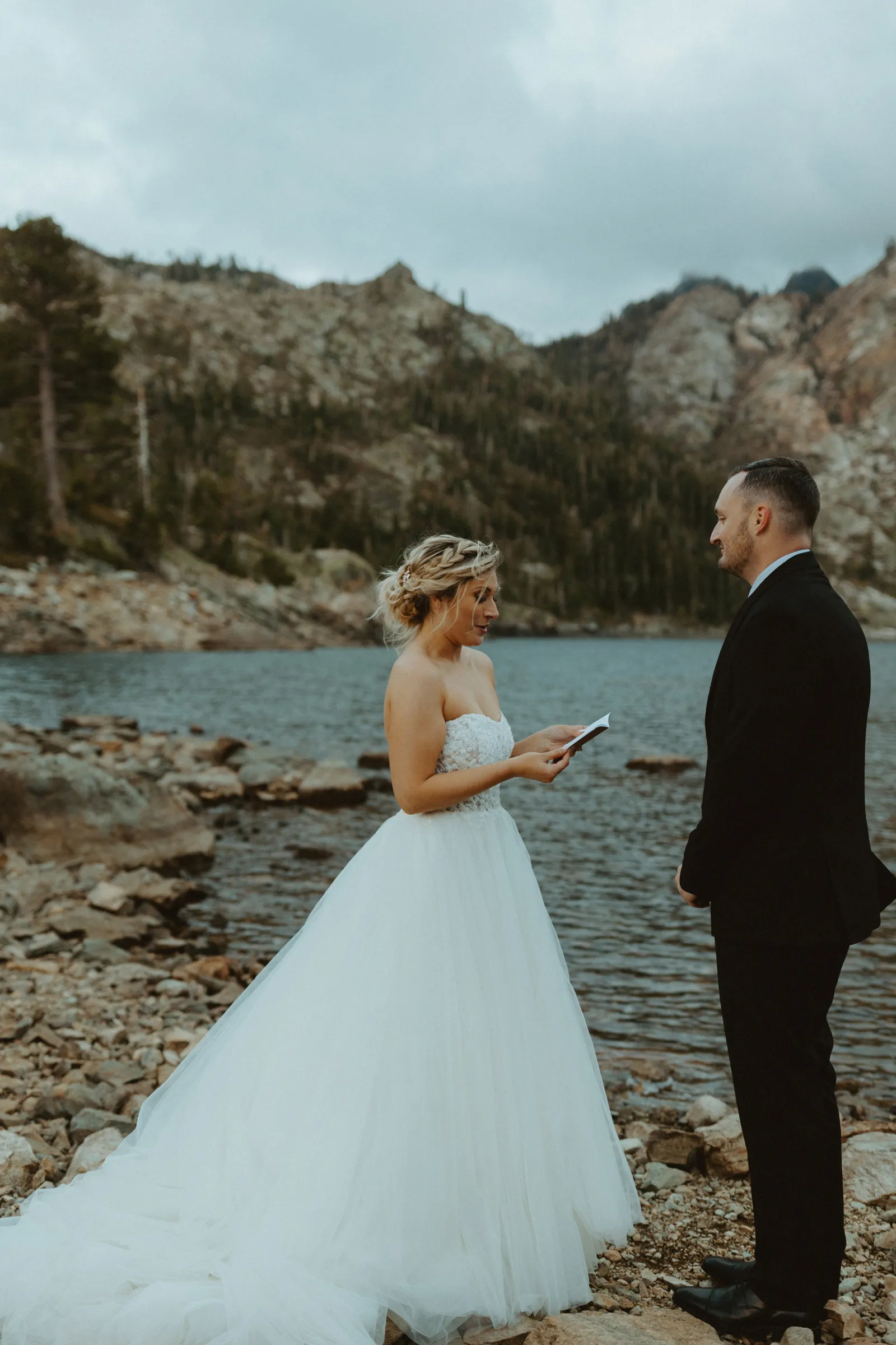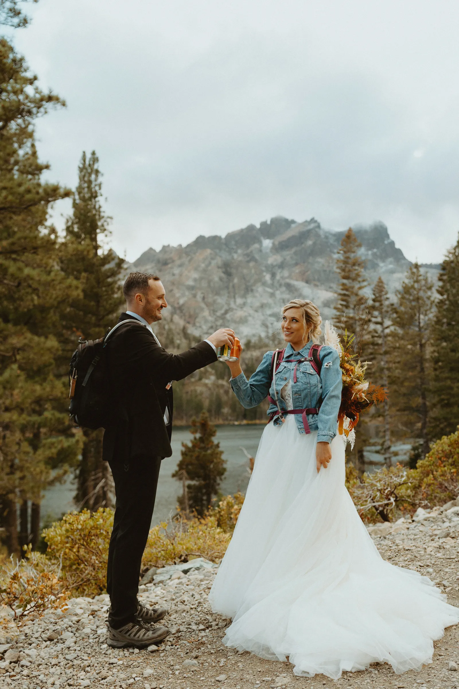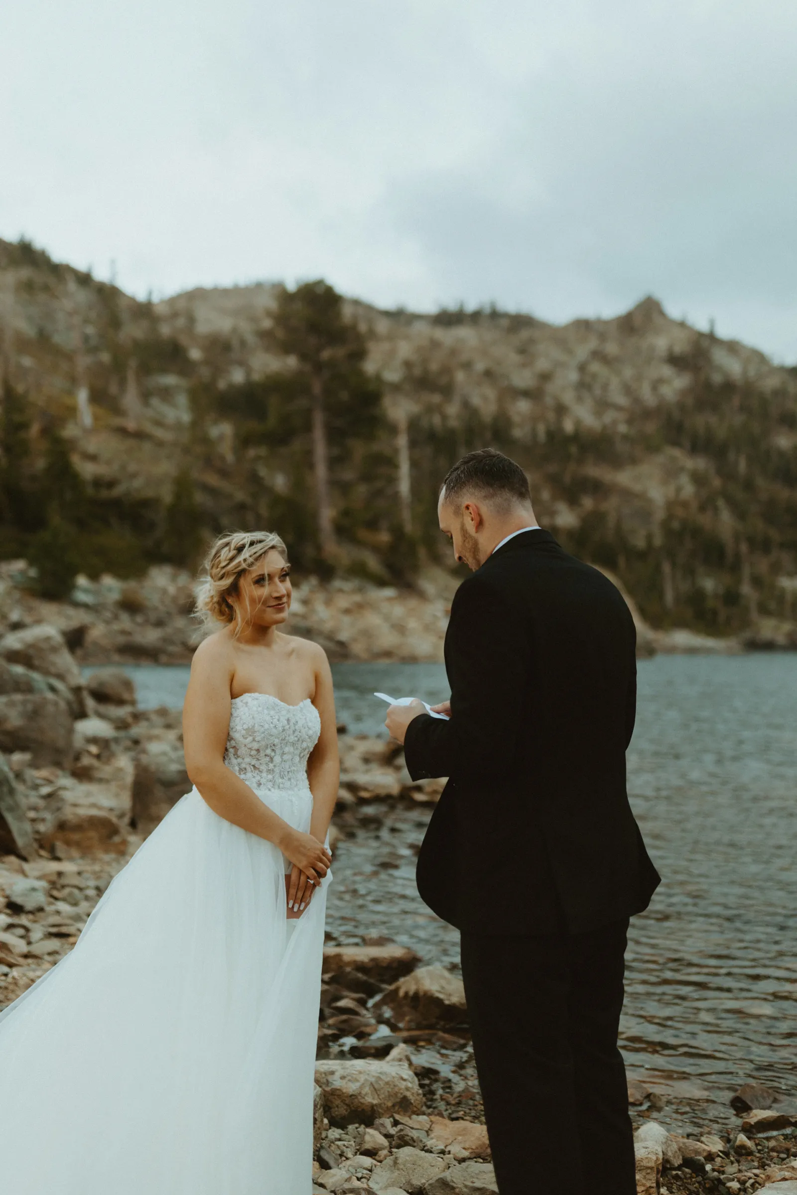 The most amazing part of our day was spending [it] together. We woke up, drank coffee on the couch by the fireplace in our living room, [and] went out to breakfast at our favorite restaurant, Squeeze In. After breakfast, we took a few minutes to relax and hangout for the day (I finished up my vows). I got my hair and makeup done in our spare bedroom. Once we were ready to go, we drove 1.5 hours together up to Sardine Lake. We actually had the opportunity to soak each other in and enjoy our day fully together without the chaos of traditional wedding activities.