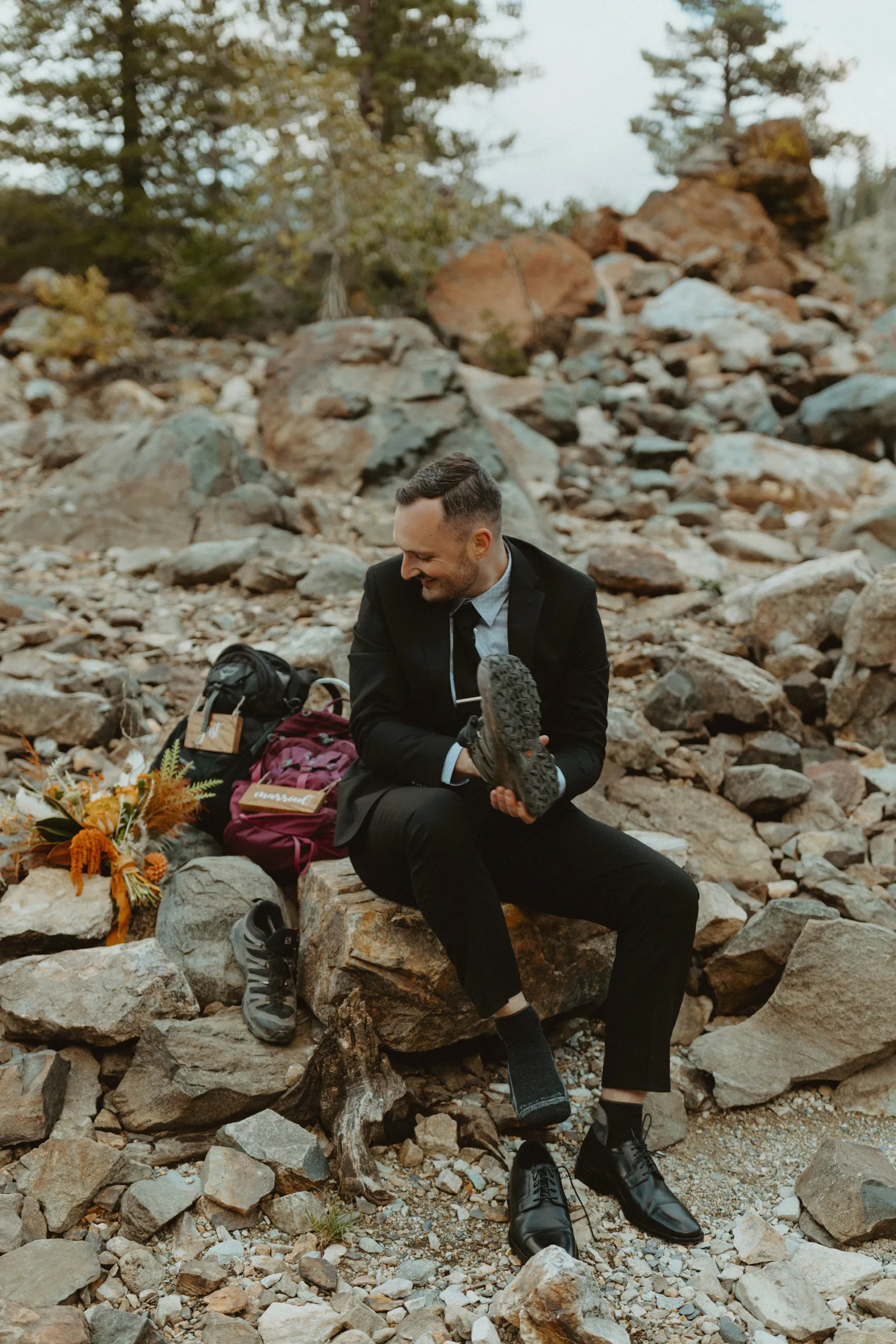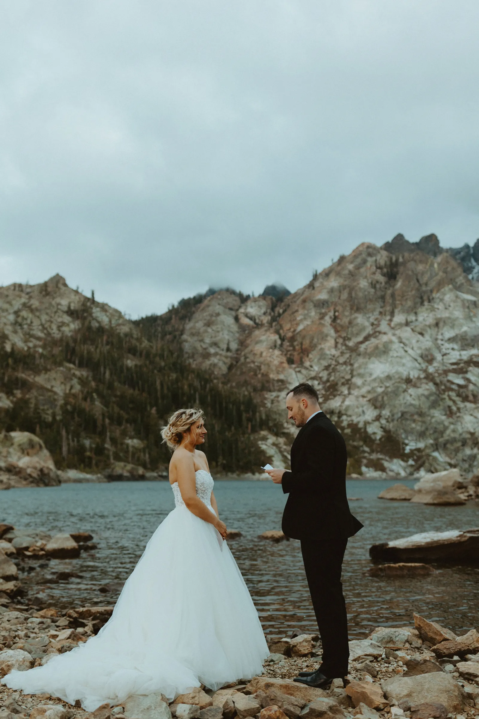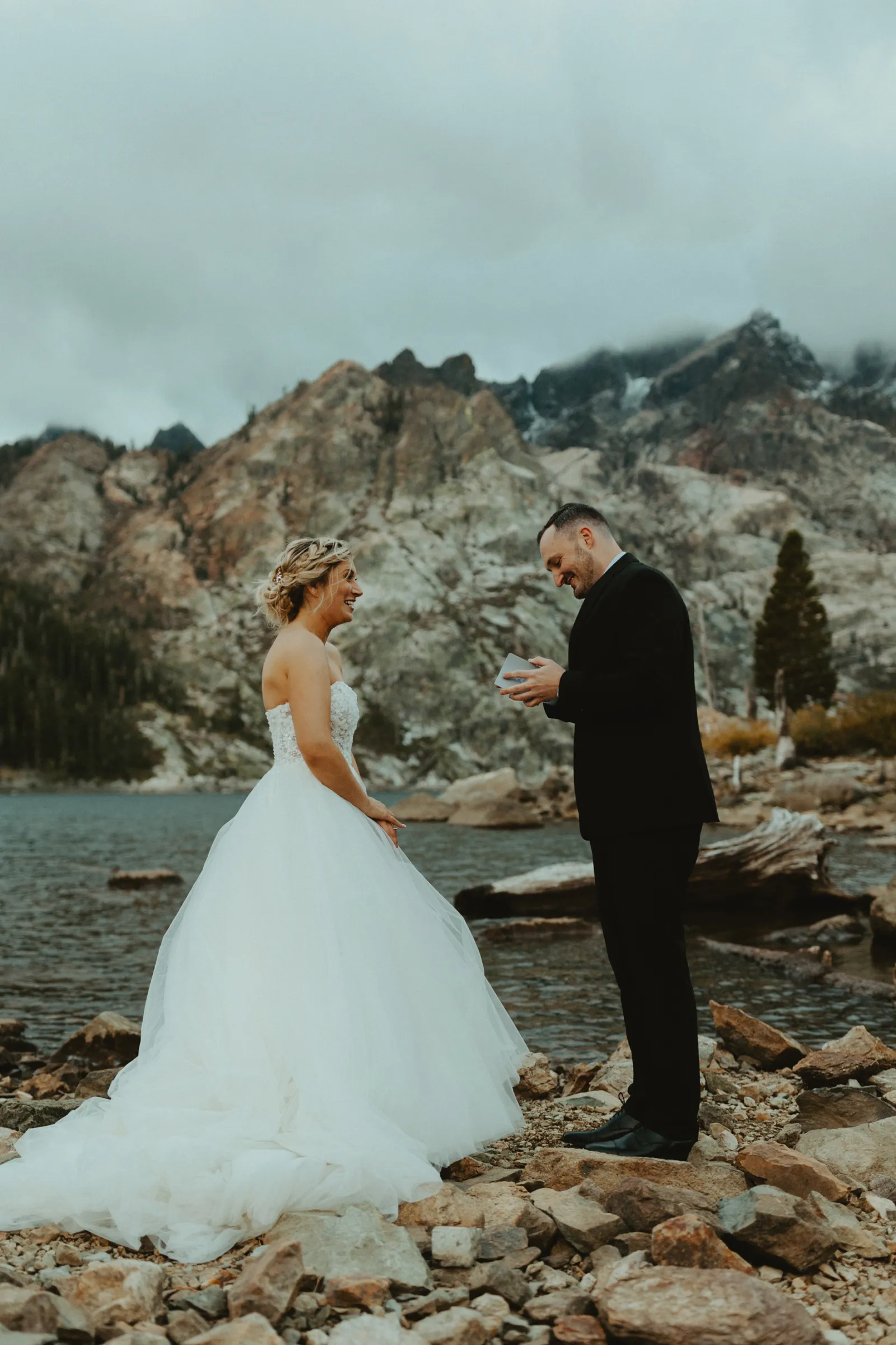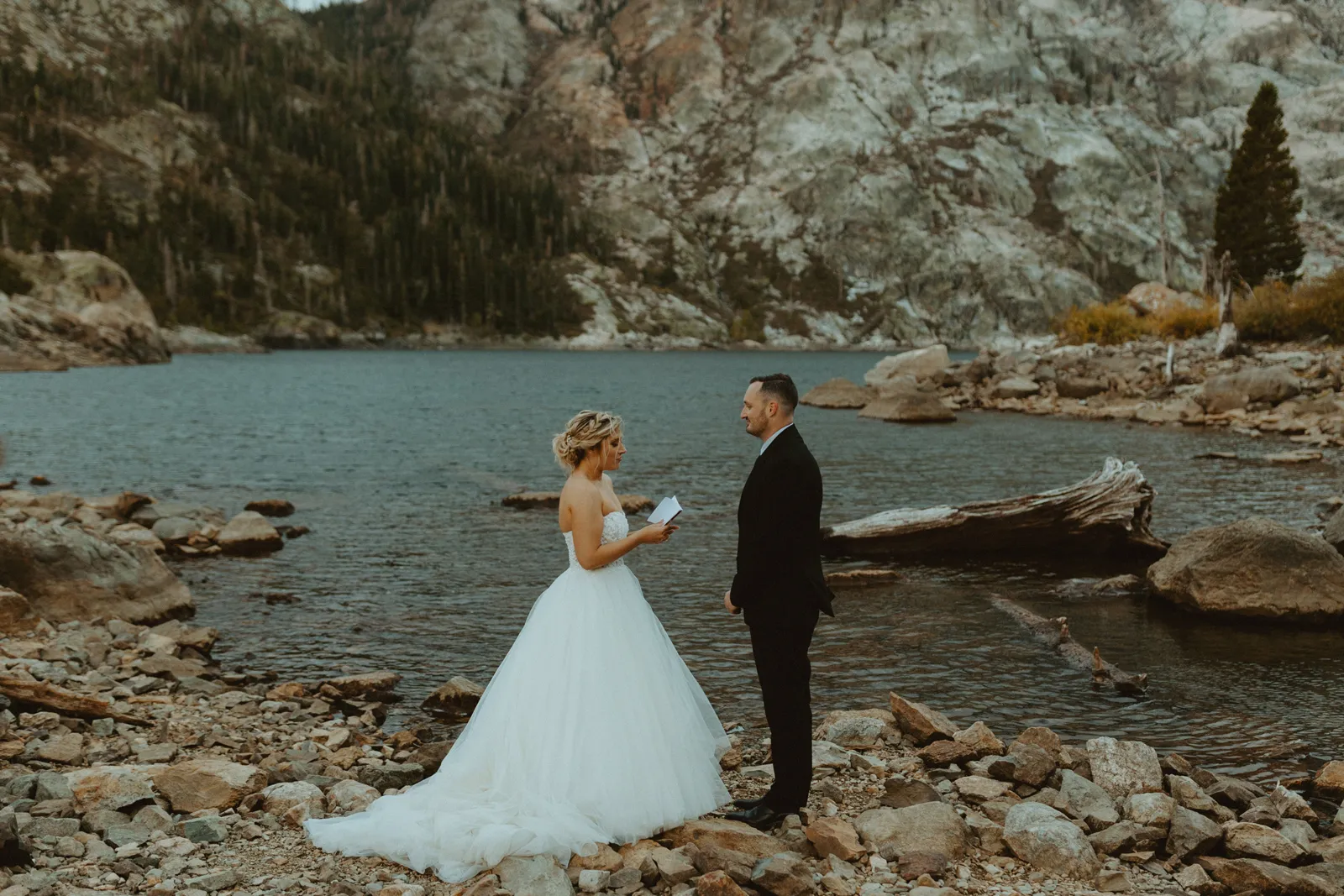 The most amazing part of our day was spending [it] together. We woke up, drank coffee on the couch by the fireplace in our living room, [and] went out to breakfast at our favorite restaurant, Squeeze In. After breakfast, we took a few minutes to relax and hangout for the day (I finished up my vows). I got my hair and makeup done in our spare bedroom. Once we were ready to go, we drove 1.5 hours together up to Sardine Lake. We actually had the opportunity to soak each other in and enjoy our day fully together without the chaos of traditional wedding activities.