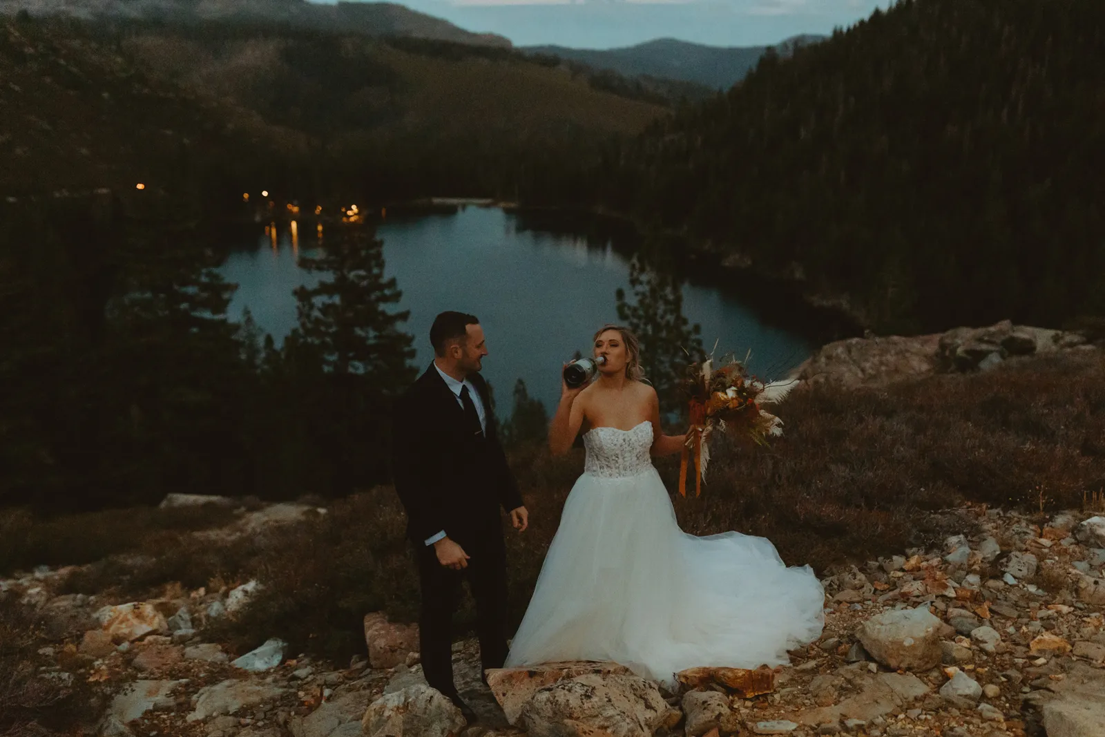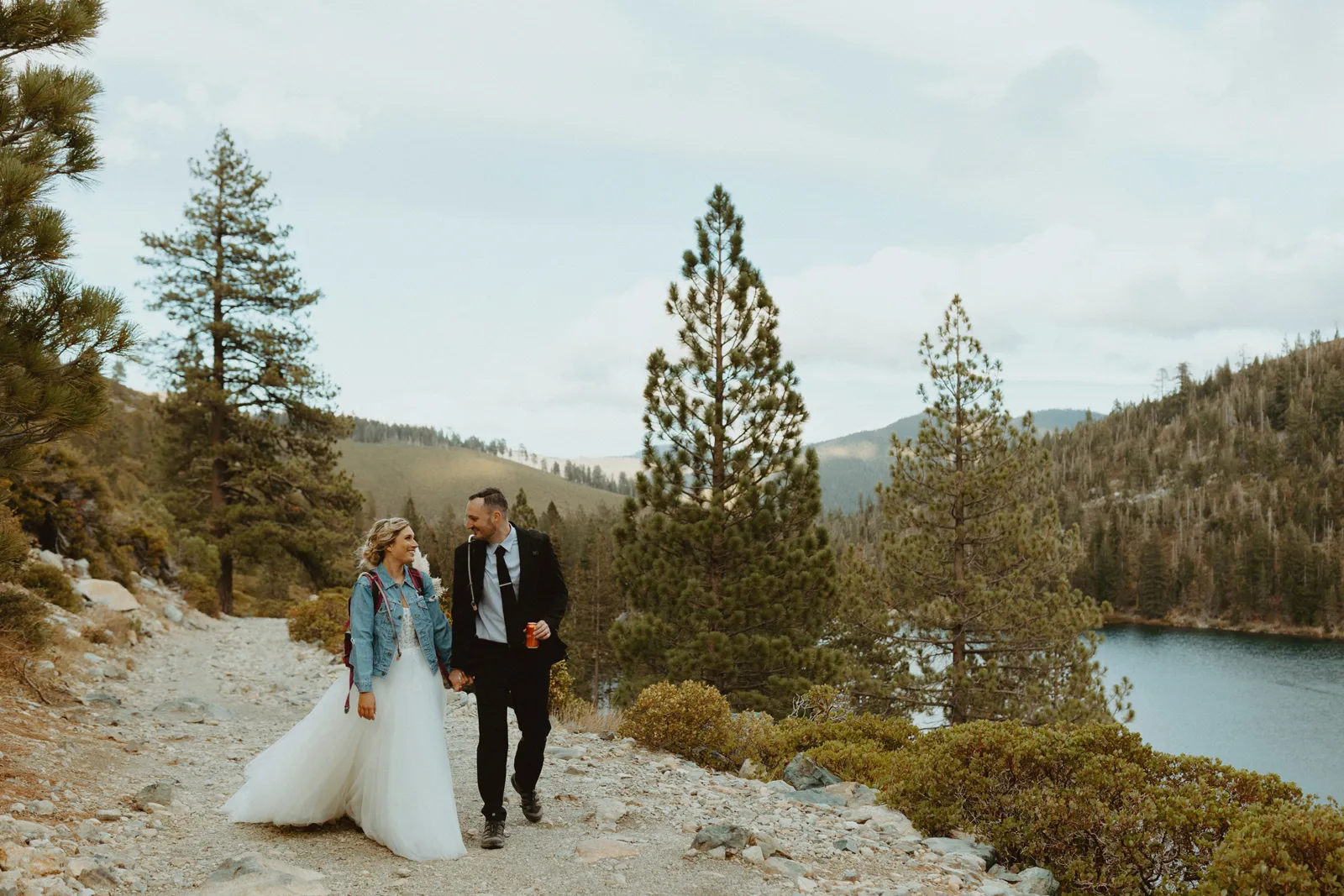 Good morning, everyone and happy Real Weddings Wednesday! Today, we’re celebrating Kia and Matt’s hike-to-the-top elopement in Lake Tahoe, captured by the talented Emma Paul Photography. If your version of romance includes dancing beneath the stars, having your first look next to an ethereal lake, or sipping champagne at the top of a mountain overlooking said lake, then you’re in luck. Happy Wednesday, and happy reading!