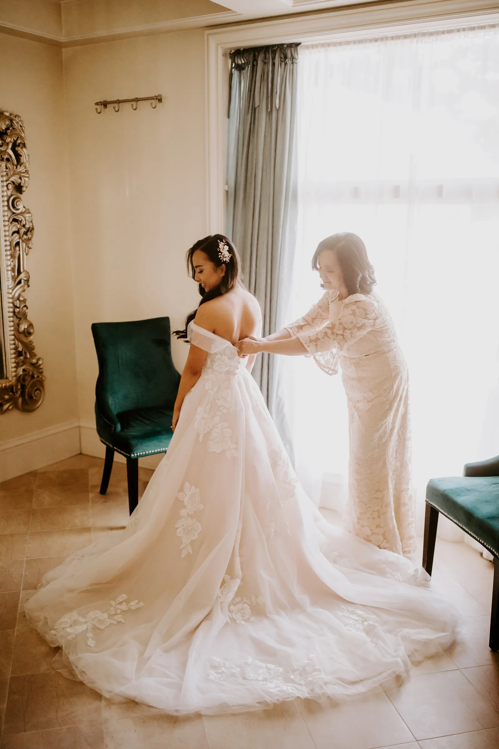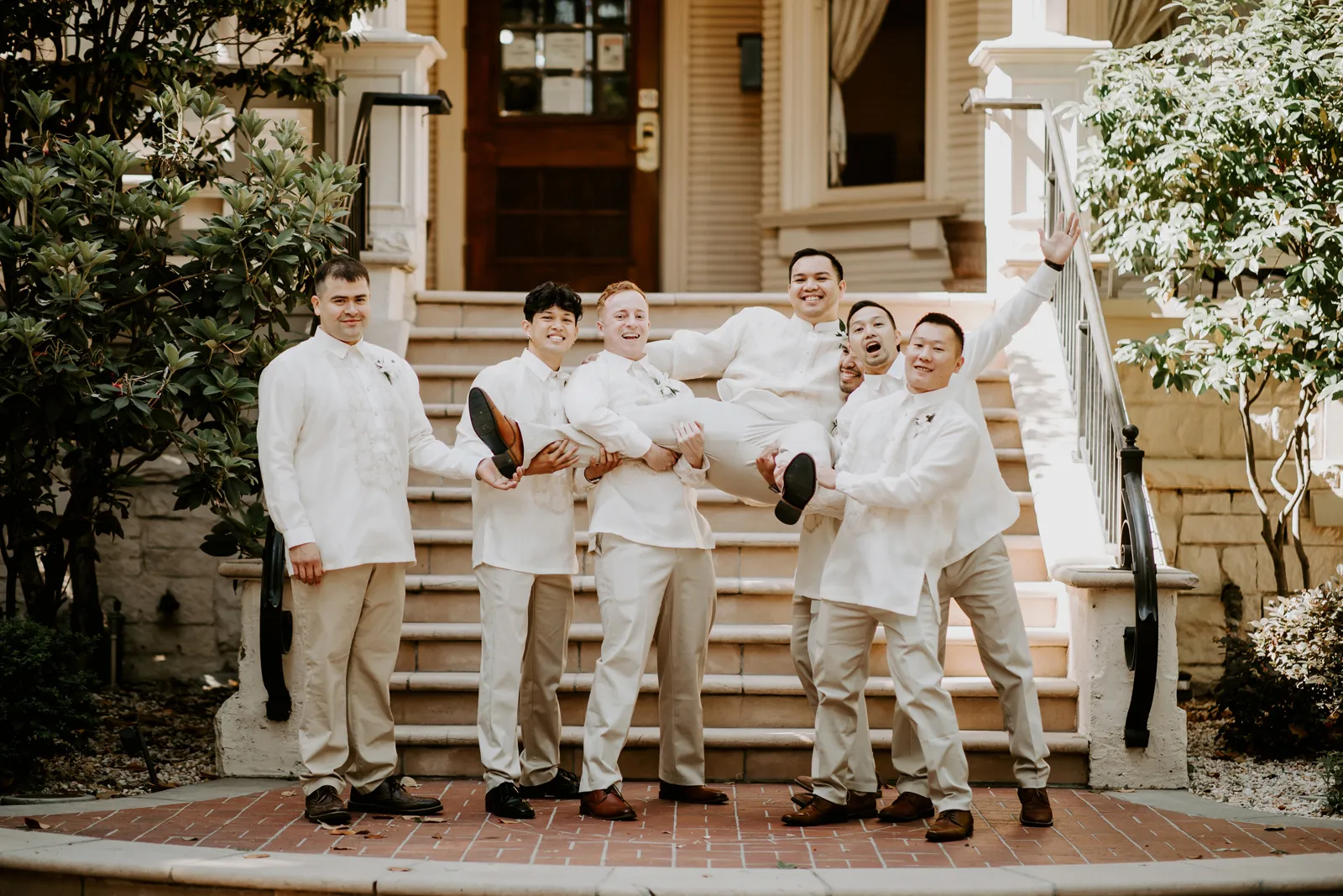 It was fun to see elements of ourselves and our family in some parts of the wedding. We had a photo frame of our parents’ and grandparents’ wedding photos by the reception entrance. Lawrence picked me up during our first dance and it made me (and all our guests) laugh..and we had a boba caterer – delicious and a crowd-pleaser for sure! People kept telling us that weddings fly by, and we felt that! We booked a morning wedding so we had the entire day to spend time with as many of our family and friends as possible. After the wedding, we went out to the clubs in downtown Sacramento and closed the night off in the biggest Karaoke room available!