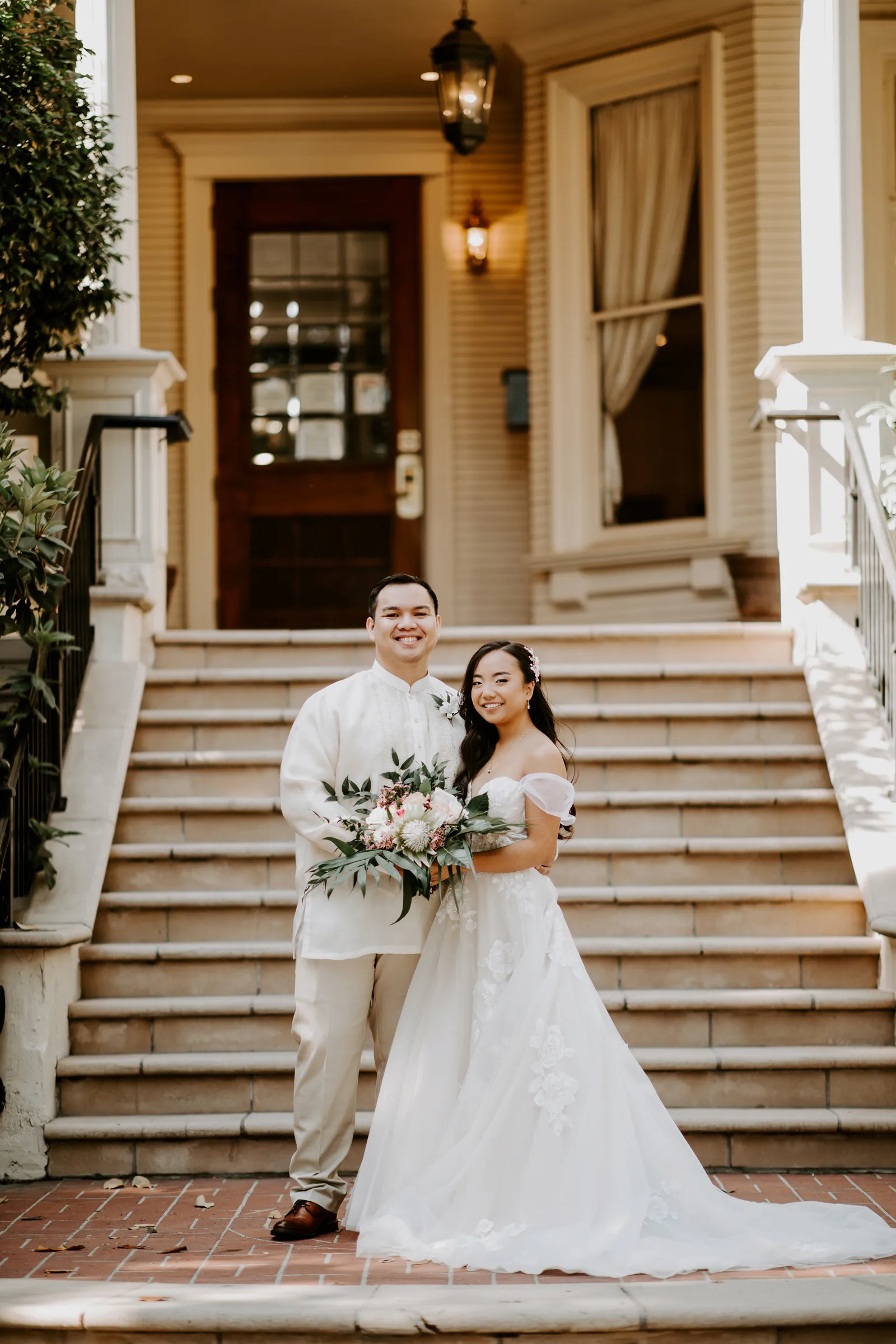 Lawrence: While I was still in the army, I spent a lot of time designing an engagement ring that suited Laarni’s taste in jewelry and something she would say yes too. Aafter treating her for her birthday weekend, and the time was right, I asked her to marry me. [During wedding planning], there was a lot of driving and video chatting while wedding planning because we were still long-distance. We experienced a lot of major life changes during that time, but it was a unifying, new adventure for us to make those big decisions together. Every time we were in Sacramento, we always visited our venue to appreciate how beautiful it is, take a walk around the neighborhood and envision the wedding!