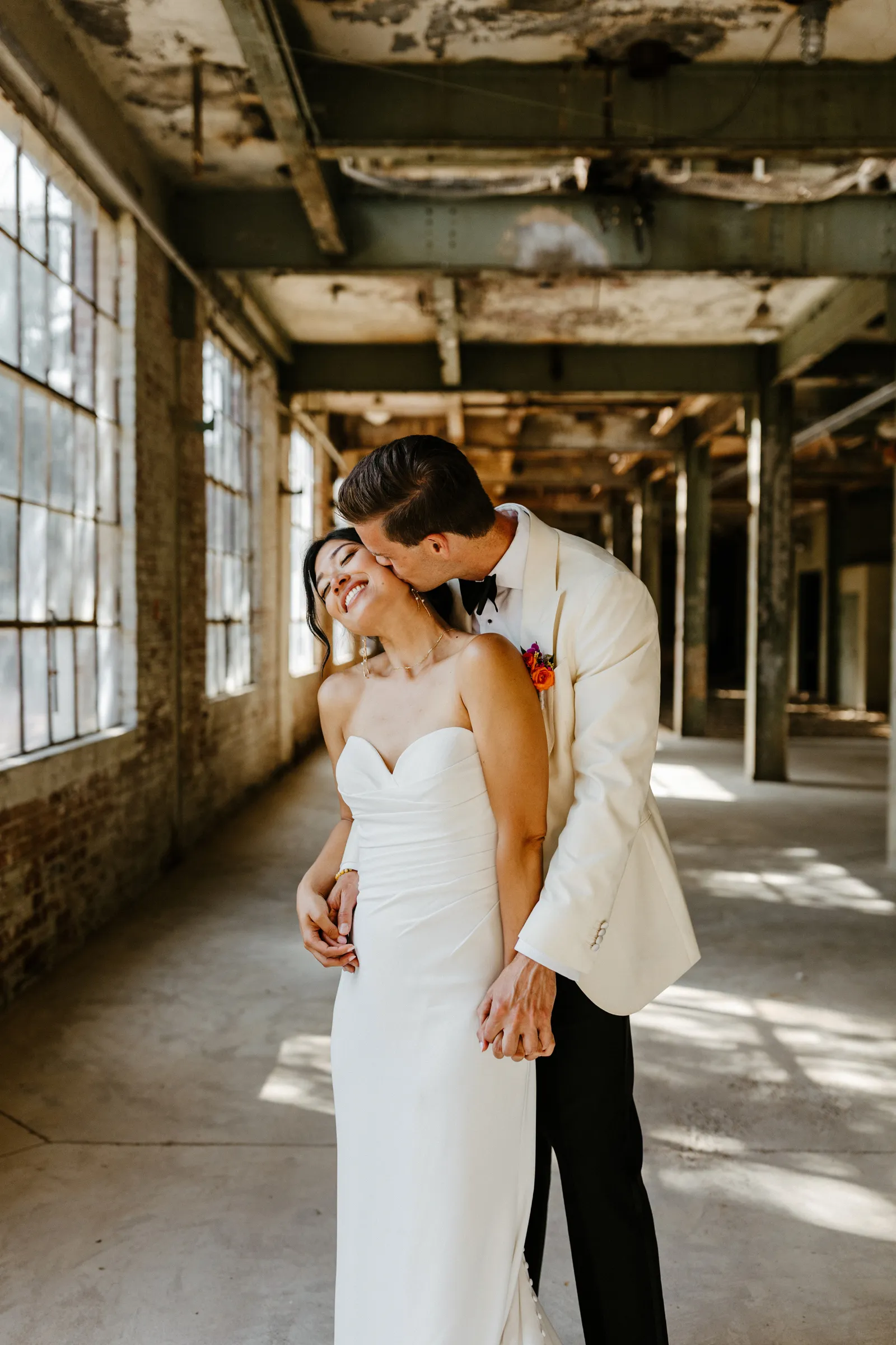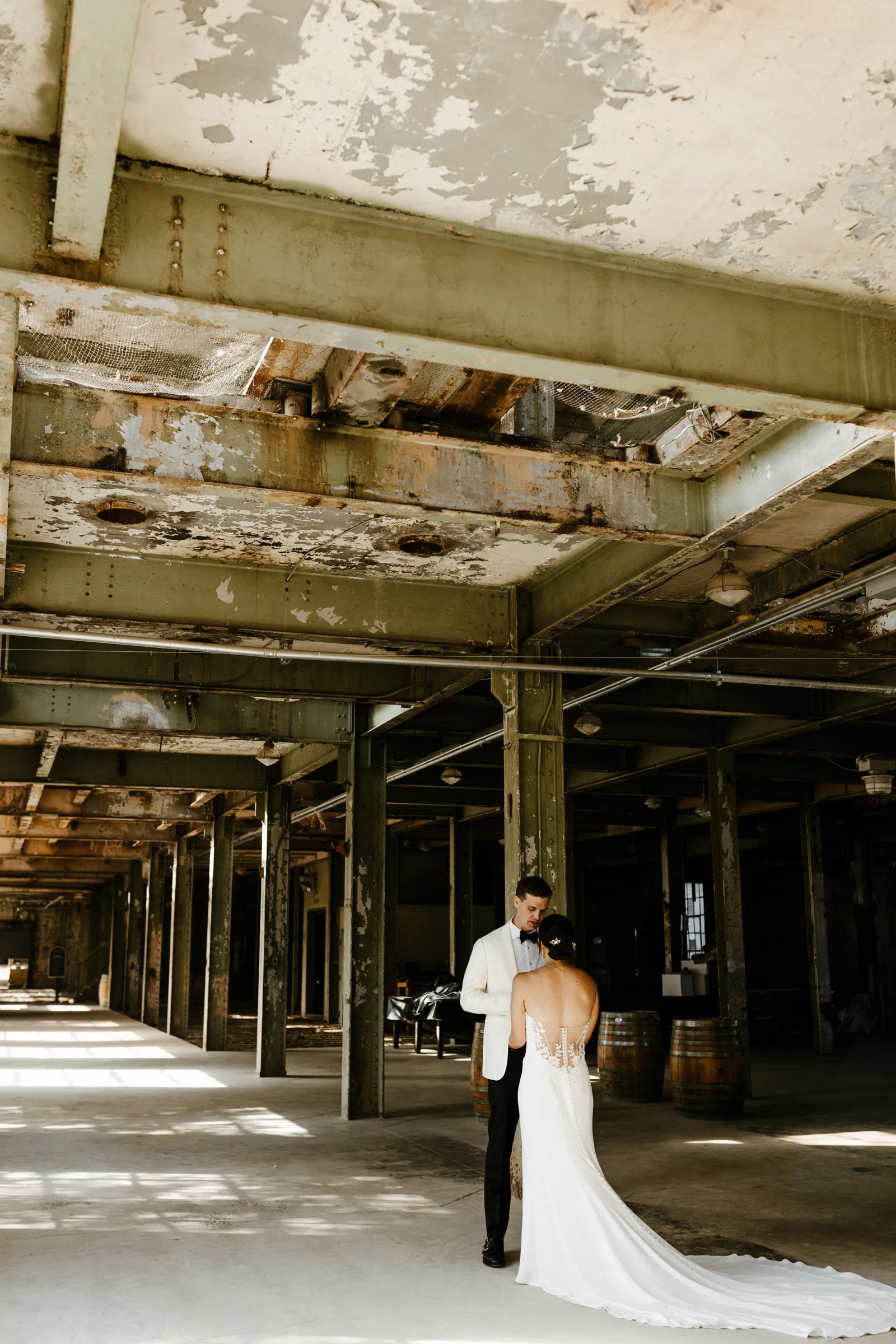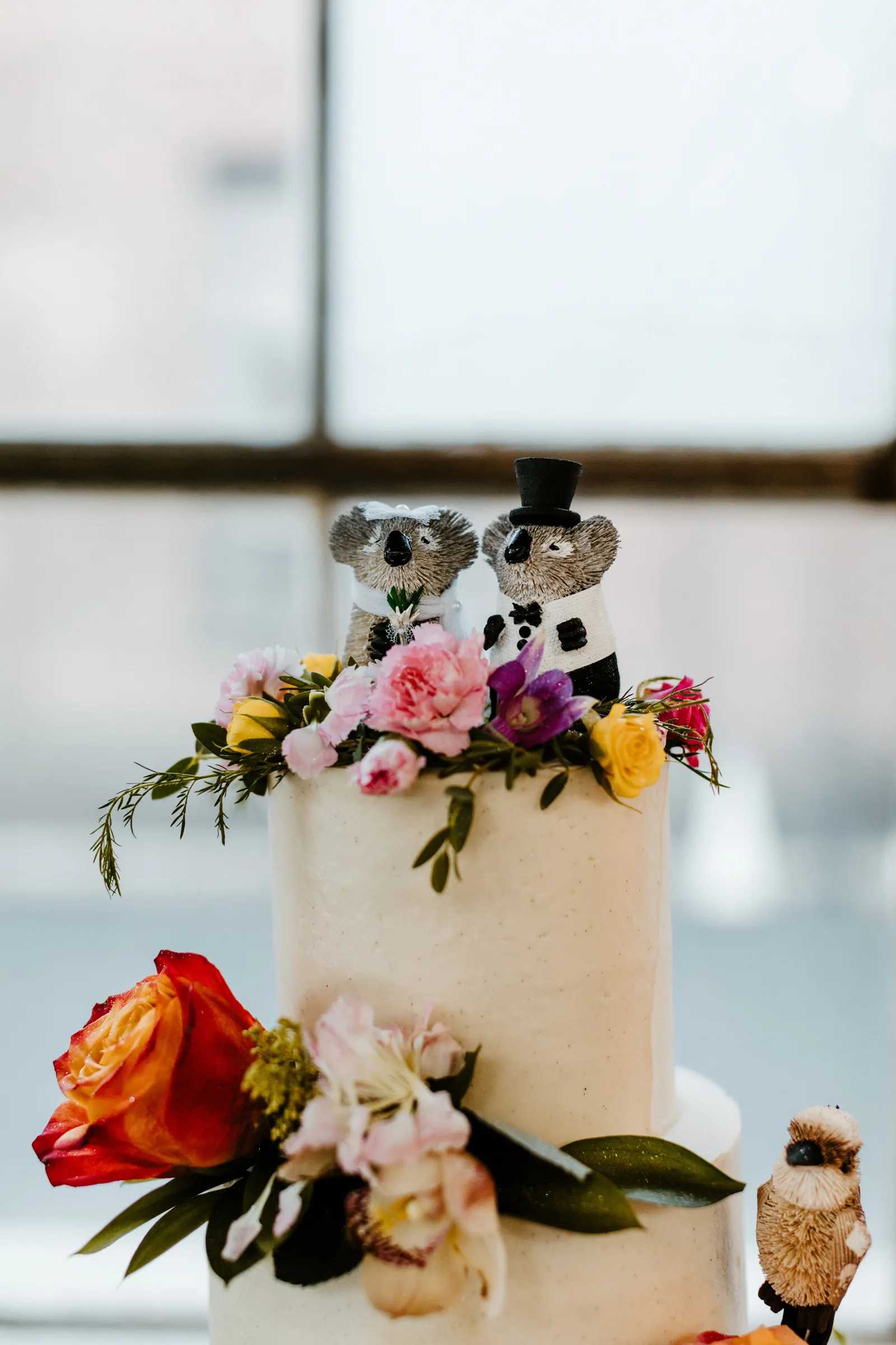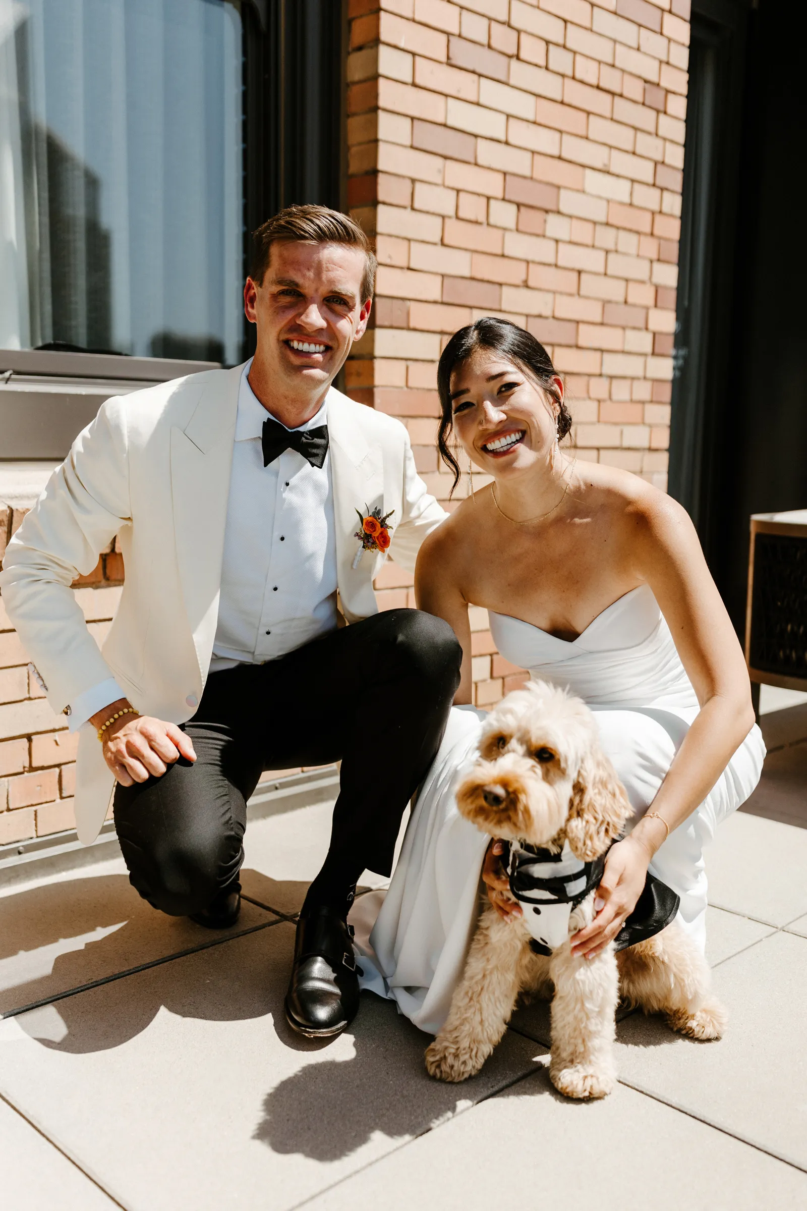 Their REAL wedding (hence, Real Weddings Wednesday), is what we’re here to celebrate today – set at Old Sugar Mill and complete with lots of (puppy) love! We’re talking chic and industrial photos with a furry guest appearance, amazing hair and makeup artistry from our dear partner, All Dolled Up, amazing planning from Magnolia Avenue Events, a koala-inspired cake from Baker & A Black Cat, and stunning florals (thanks Strelitzia Flower Co.!) that are sure to inspire. Keep scrolling to read about the lovely couple and to get in on more of photos from Kayla Esparza Photography!