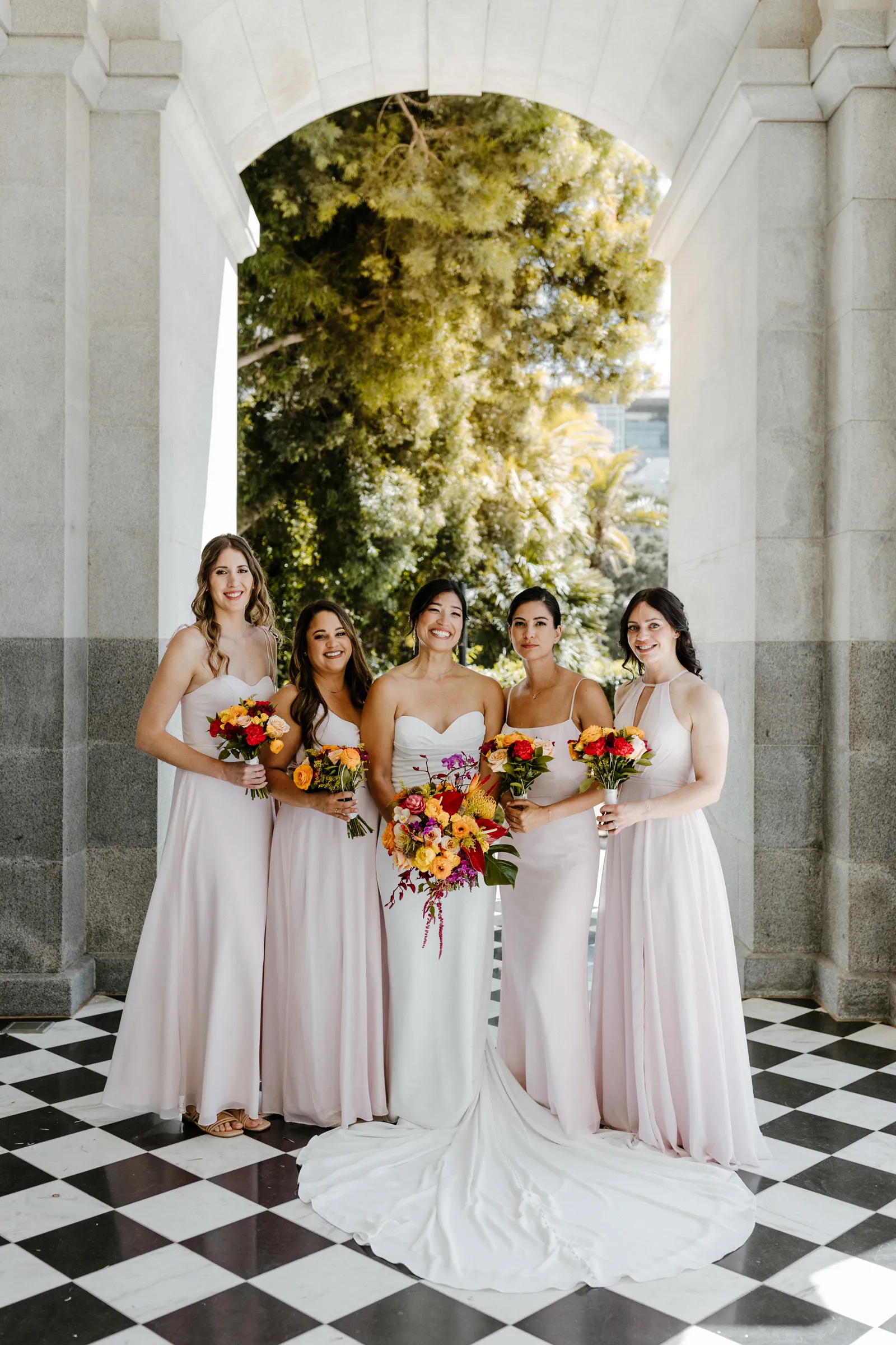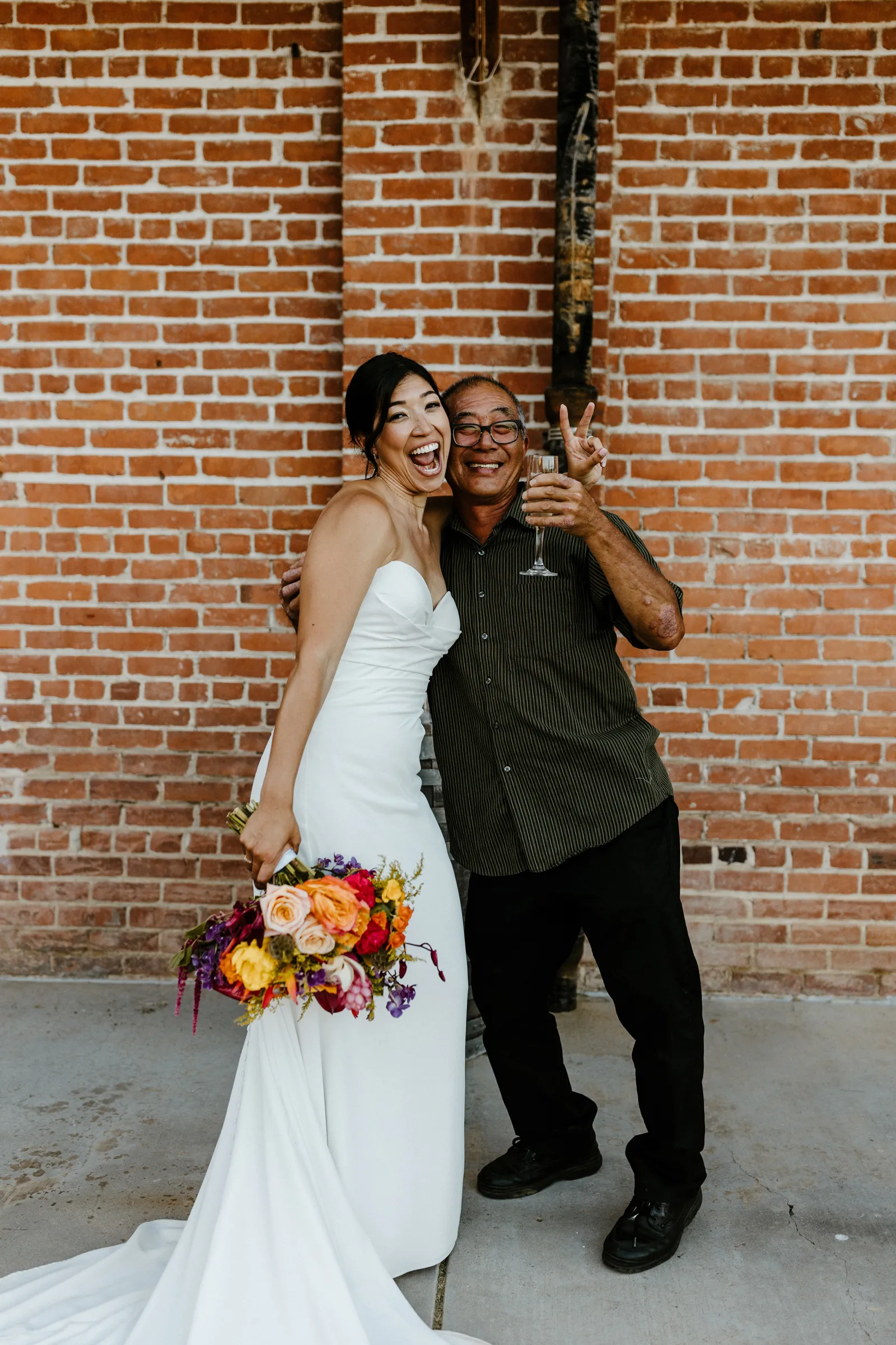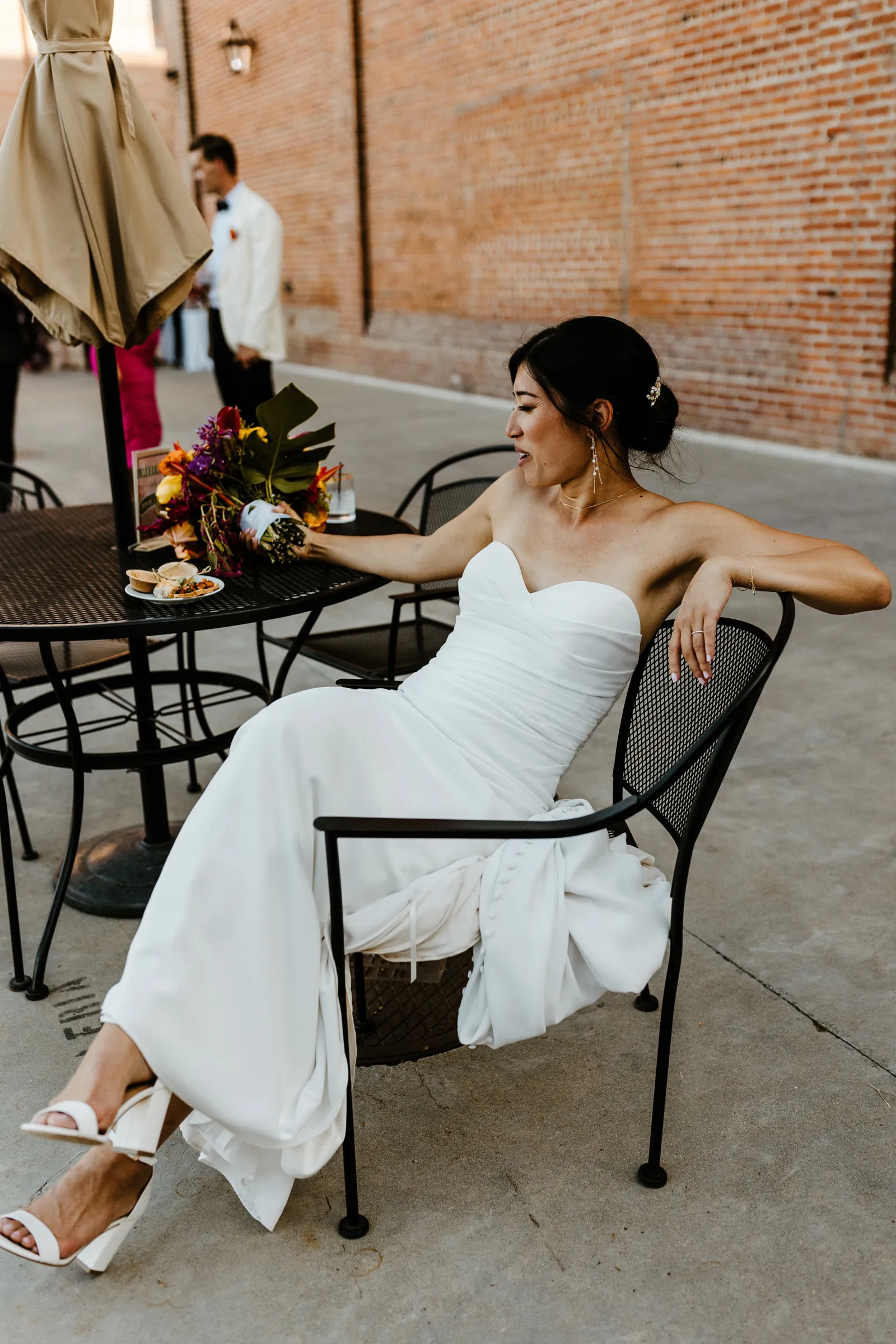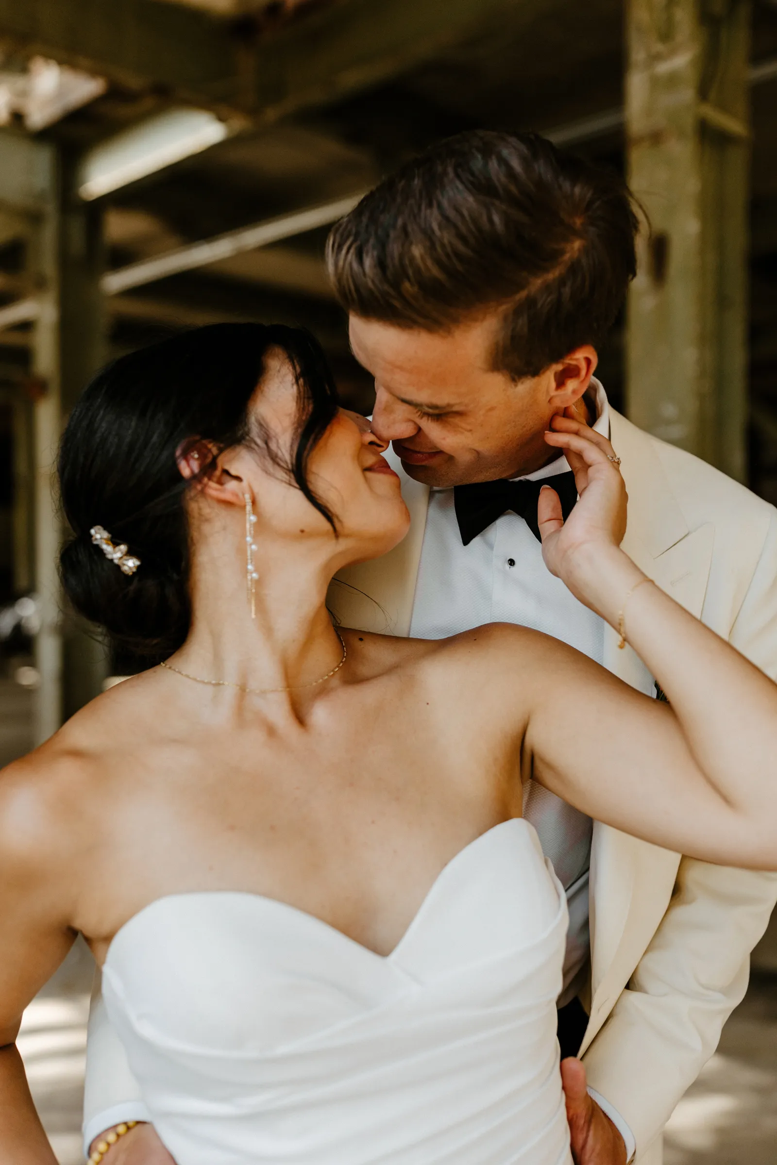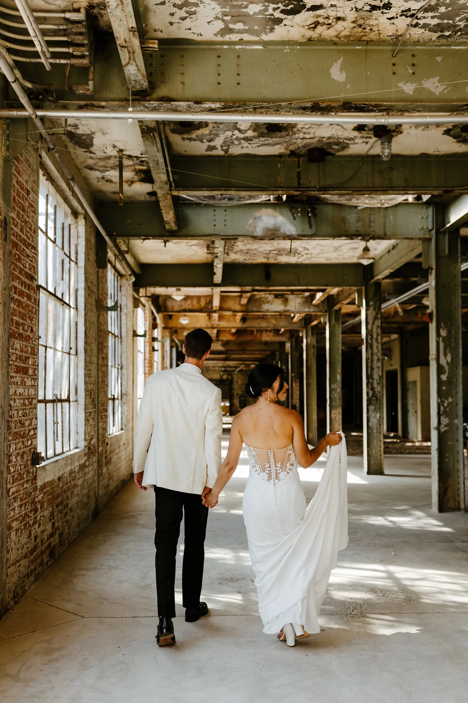 Their REAL wedding (hence, Real Weddings Wednesday), is what we’re here to celebrate today – set at Old Sugar Mill and complete with lots of (puppy) love! We’re talking chic and industrial photos with a furry guest appearance, amazing hair and makeup artistry from our dear partner, All Dolled Up, amazing planning from Magnolia Avenue Events, a koala-inspired cake from Baker & A Black Cat, and stunning florals (thanks Strelitzia Flower Co.!) that are sure to inspire. Keep scrolling to read about the lovely couple and to get in on more of photos from Kayla Esparza Photography!